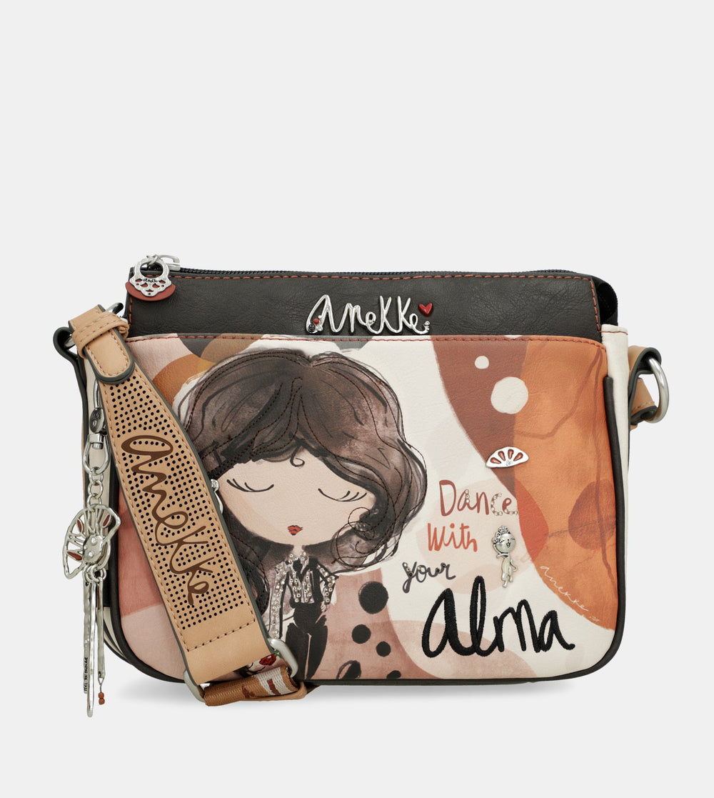 Praktická crossbody kabelka s motívom kolekcie Anekke Alma. Vo vnútri je praktické vrecko na zips na drobnosti, vrecko na mobil. Taktiež na vonkajšej zadnej strane je vrecko na zips. Kbaelku zdobí aj prívesok Anekke.Kabelka je balené v taške Anekke.