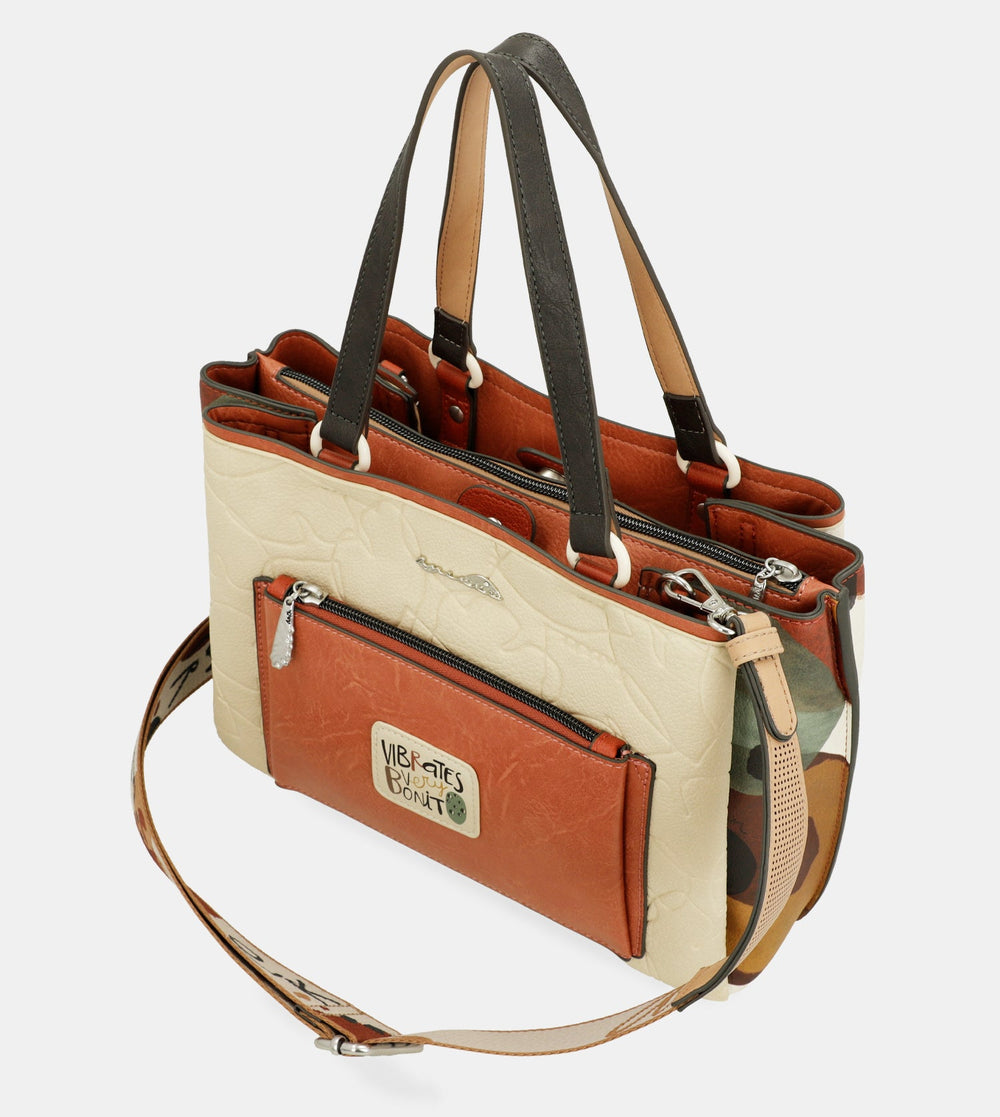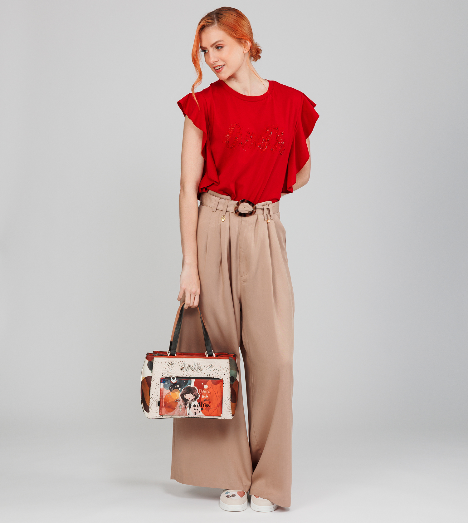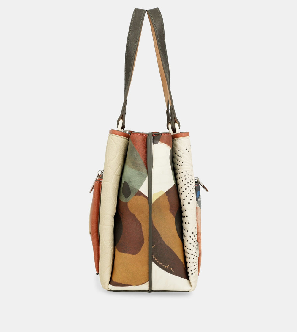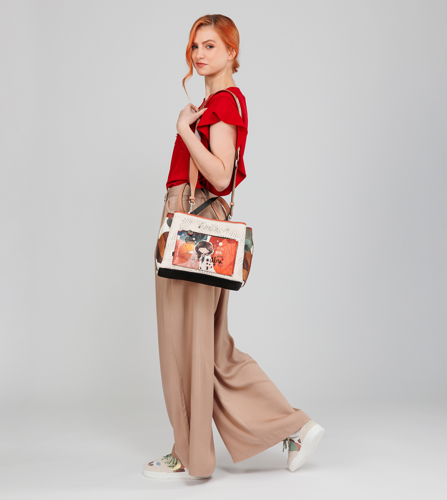 Praktická kabelka do ruky s motívom kolekcie Anekke Alma. Na zadnej vonkajšej strane je vrecko na zips. Vo vnútri je otvorené vrecko na mobil a kľúče, taktiež vrecko na zips na doklady. Kabelka má zapínanie na zips. Súčasťou balenia je aj popruh ktorý je nastaviteľný podľa potreby. Kabelka je balená v taške Anekke.