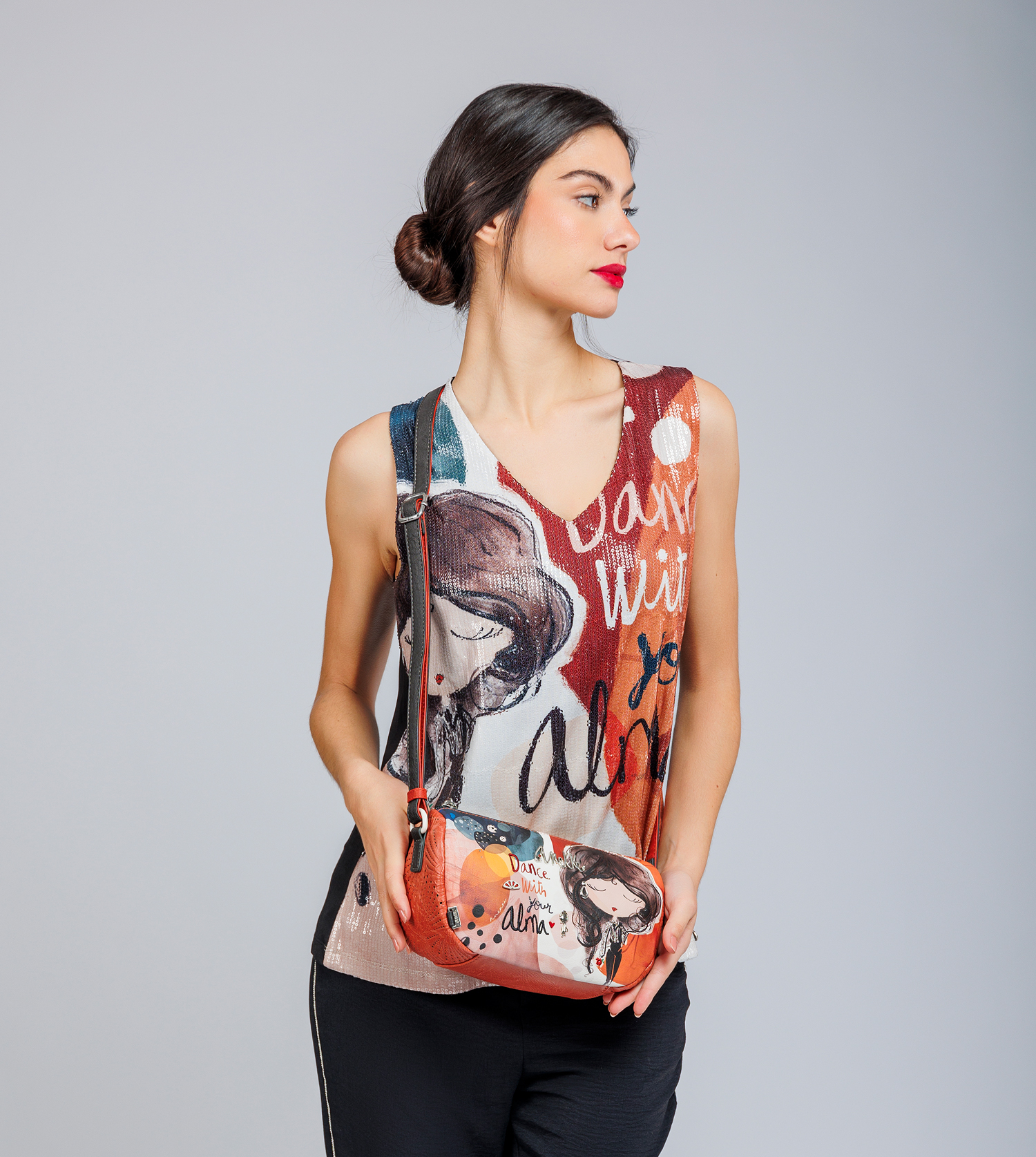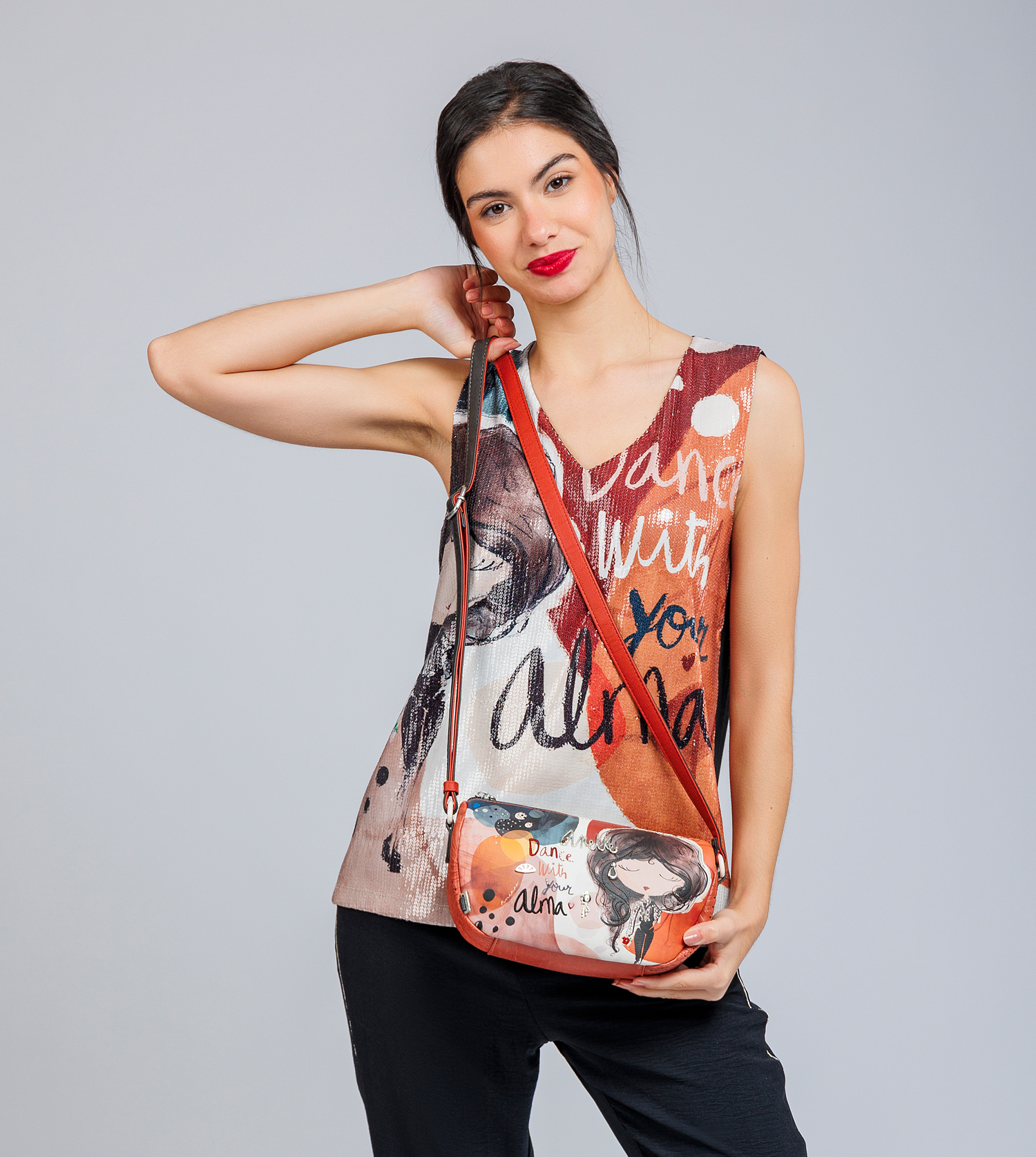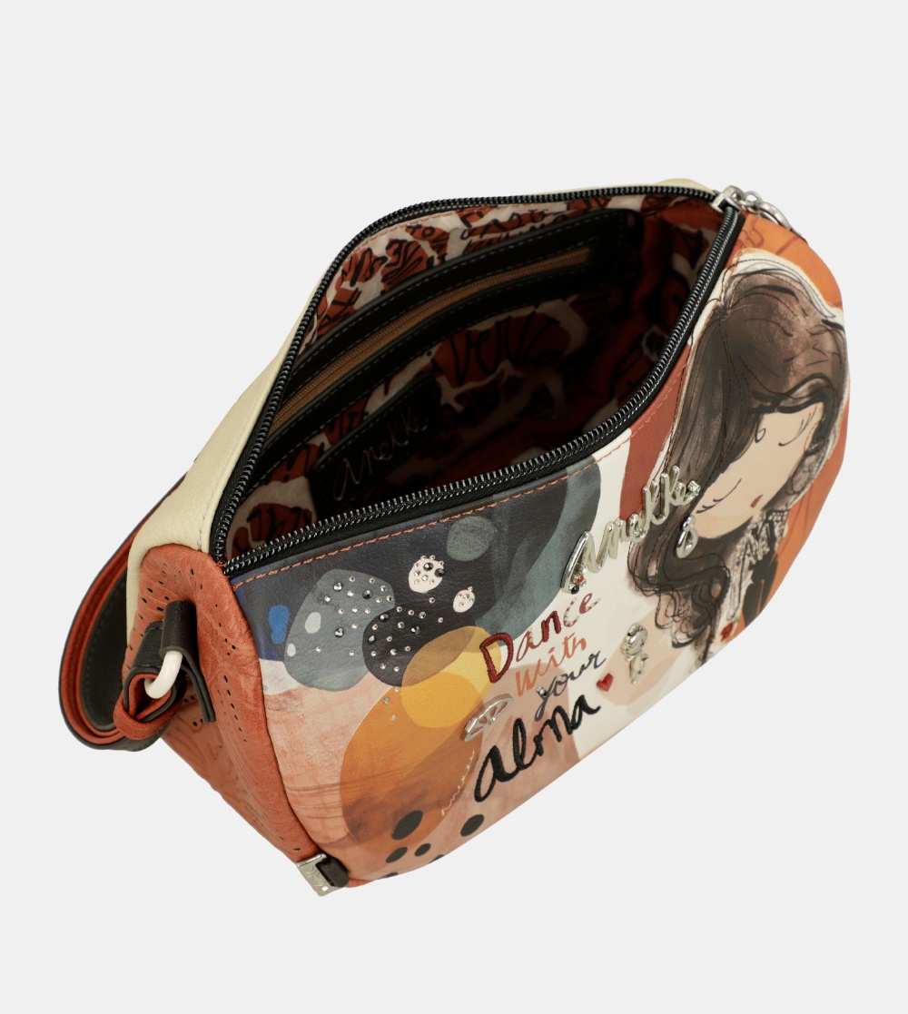 Praktická crossbody kabelka s motívom kolekcie Anekke Alma do ktorej uložíte všetko potrebné. Vo vnútri je praktické vrecko na zips na drobnosti, vrecko na mobil. Taktiež na vonkajšej zadnej strane je vrecko na zips. Kabelka je balené v taške Anekke.