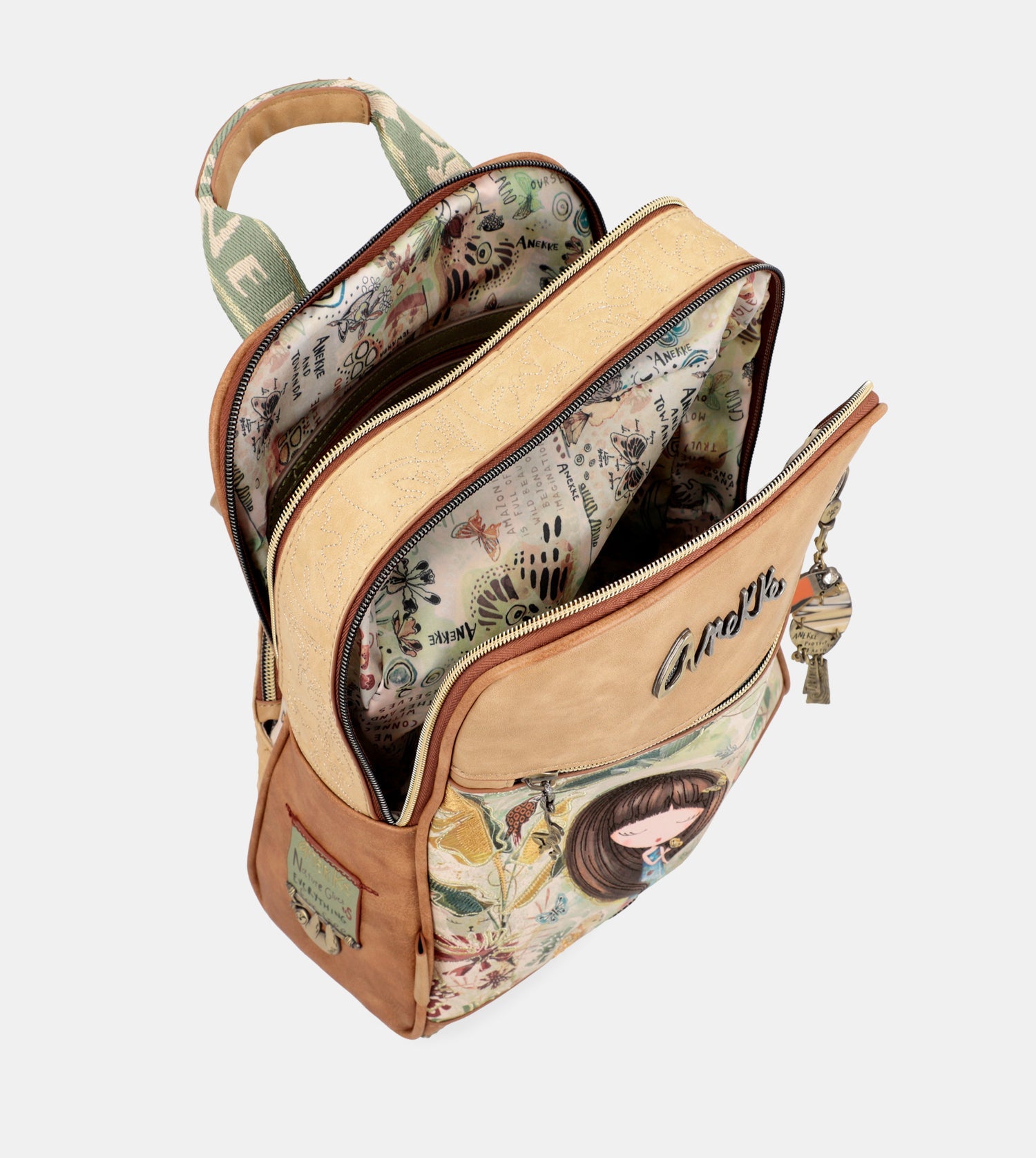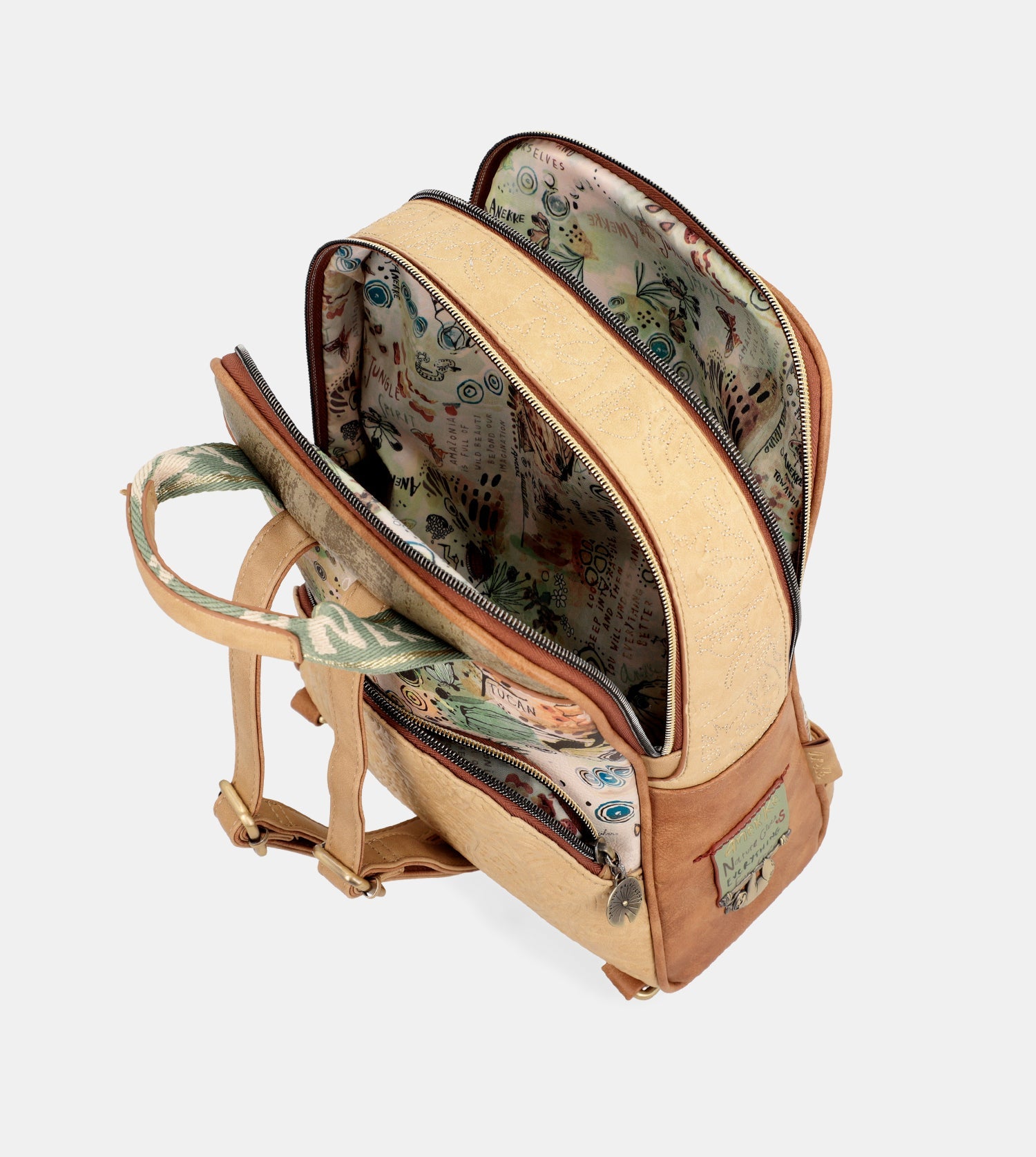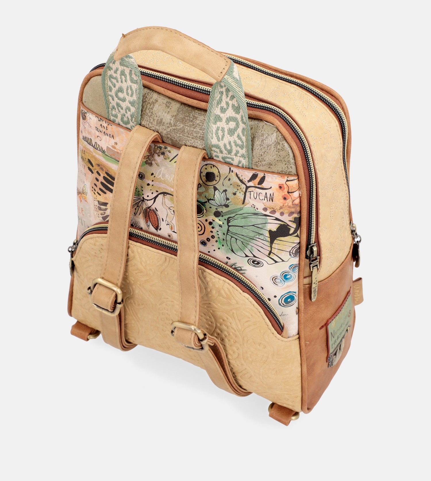 Praktický batoh s motívom kolekcie Amazonia. Batoh zdobí prívesok Anekke. Na vonkajšej zadnej strane je vrecko na zips. Vo vnútri batohu je otvorené vrecko na mobil a kľúče, taktiež vrecko so zipsom na doklady.Batoh je členený na dve časti, všetky sú uzatvárané na zips.Popruhy batohu sú nastaviteľné podľa potreby. Batoh je balený v taške Anekke.