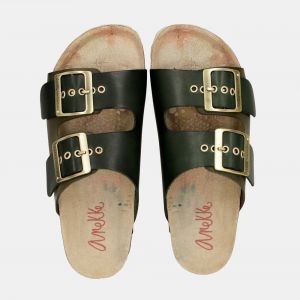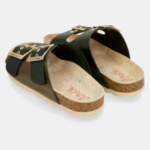 Pohodlné dámske letné šľapky s motívom kolekcie Amazonia španielskej značky Anekke. Šľapky majú spony v zlatej farbe, spony si viete prispôsobiť podľa potreby. Šľapky majú pohodlný korkový základ. Balené v krabici Anekke.