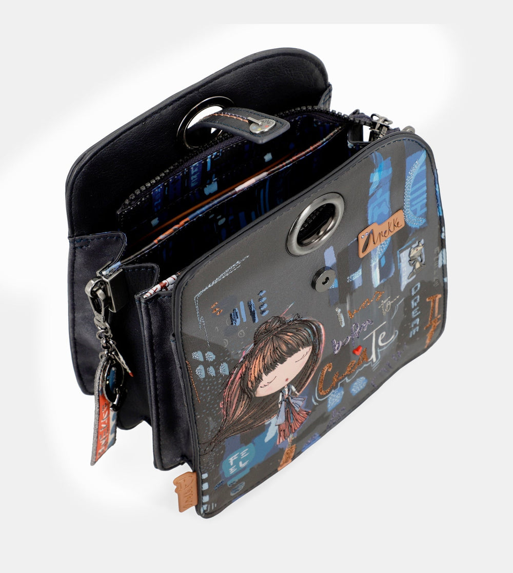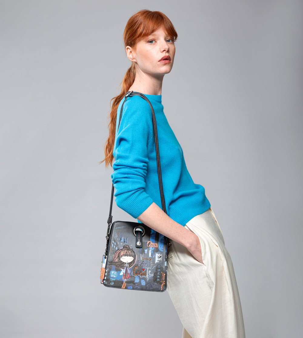 Jedinečný crossbody kabelka s motívom kolekcie Contemporary. Vo vnútri je praktické vrecko na zips na drobnosti, vrecko na mobil. Kabelka sa uzatvára na zip a vo vnútri je rozdelená na tri časti. Popruh je nastaviteľný podľa potreby. Kabelka je balené v taške Anekke.