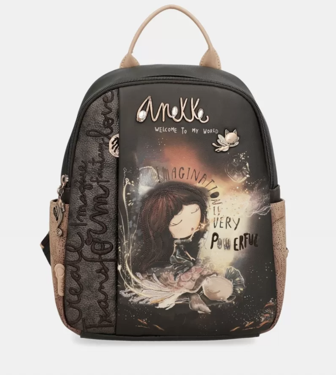 Praktický batoh s motívom kolekcie Anekke Dreamverse. Batoh zdobí prívesok Anekke. Na vonkajšej zadnej strane je vrecko na zips, na prednej strane je menšie vrecko na drobnosti. Vo vnútri batohu je otvorené vrecko na mobil a kľúče, taktiež vrecko so zipsom na doklady.Popruhy batohu sú nastaviteľné podľa potreby. Batoh je balený v taške Anekke.
