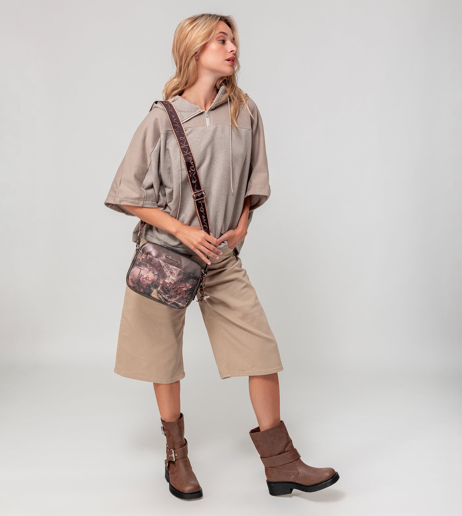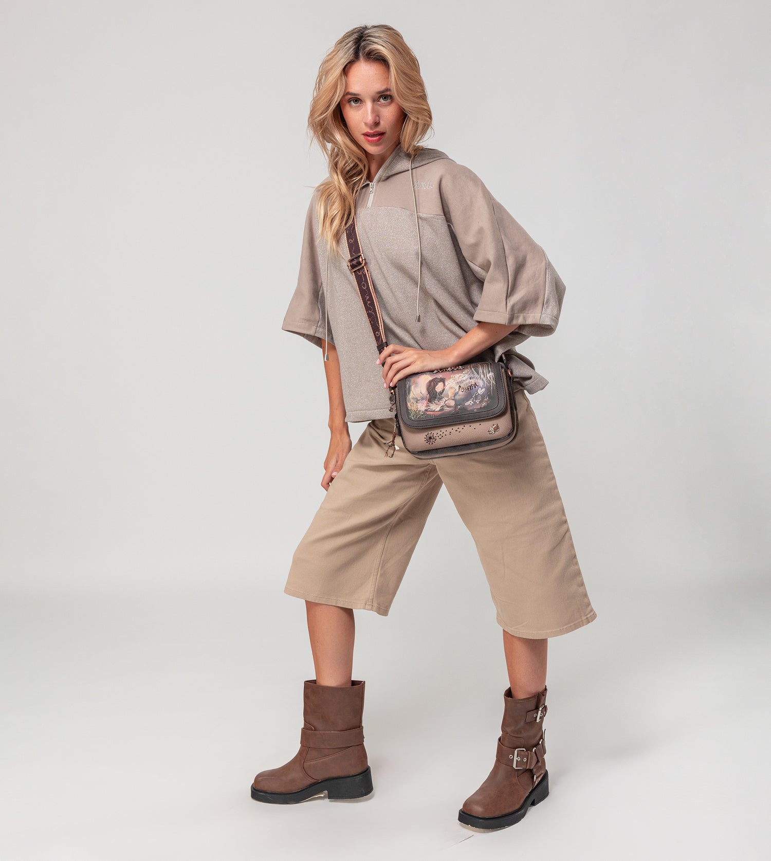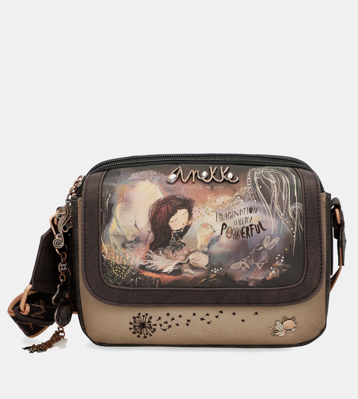 Praktická crossbody kabelka ideálna na výlety s motívom kolekcie Peace & Love do ktorej uložíte všetko potrebné. Vo vnútri je praktické vrecko na zips na drobnosti, vrecko na mobil. Kabelka je členená na tri časti, dve sa uzatvárajú na zips a jedna na cvok.Taktiež na vonkajšej zadnej strane je vrecko na zips.Kabelka je balené v taške Anekke.