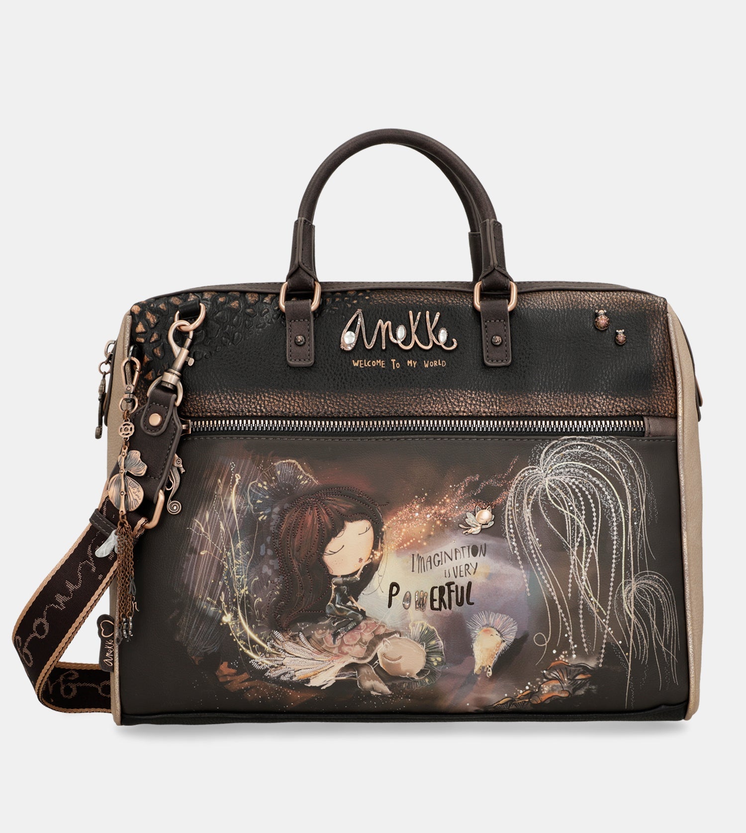 Praktická taška na notebook s motívom kolekcie Anekke Dreamverse. Tašku zdobí prívesok Anekke. Taška je vo vnútri členená, takže Vaše dokumenty budú na pevnom mieste a v bezpečí. Vo vnútri nájdete otvorené vrecko na mobil a iné drobnosti. Taktiež jedno vrecko so zipsom na doklady a pod. Súčasťou balenia je aj popruh na plece, ktorý je nastaviteľný podľa potreby. Ľahké upevnenie na rúčku kufra pri cestovaní. Balené v taške Anekke.