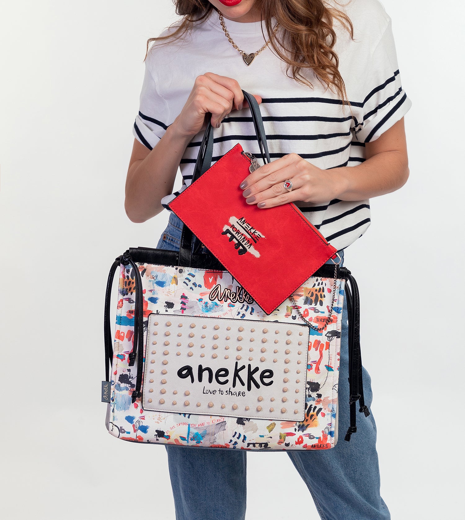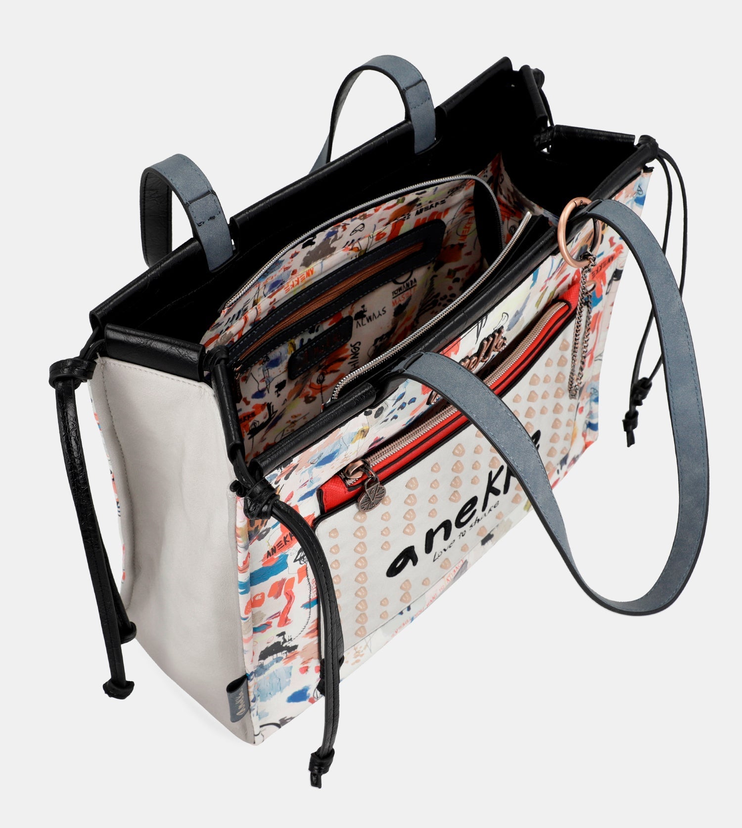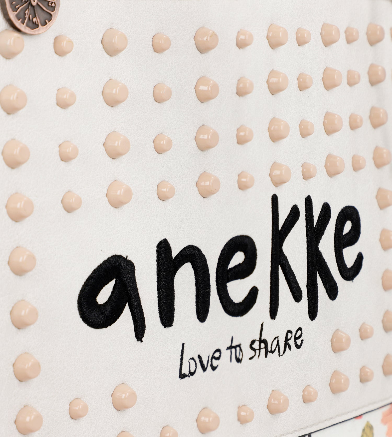 Praktická kabelka na plece s motívom Fancy ktorú zdobí prívesok Anekke. Na zadnej vonkajšej strane je vrecko na zips. Vo vnútri je otvorené vrecko na mobil a kľúče, taktiež vrecko na zips na doklady. Kabelka má zapínanie na zips. Kabelka je balená v taške Anekke.