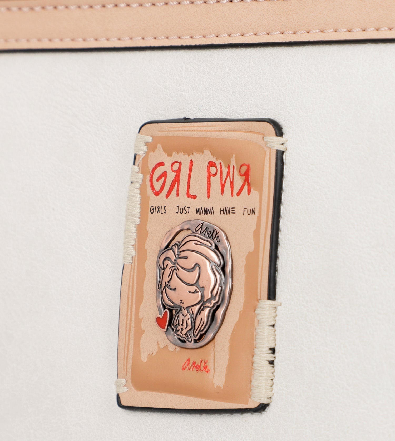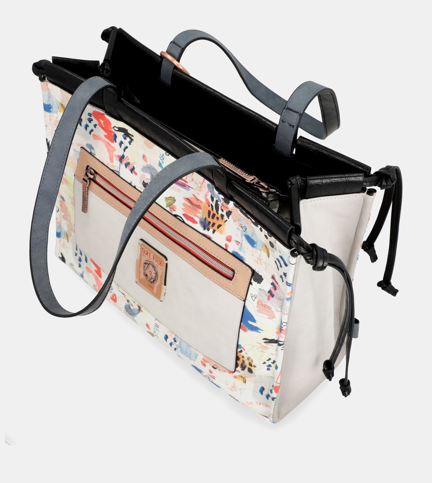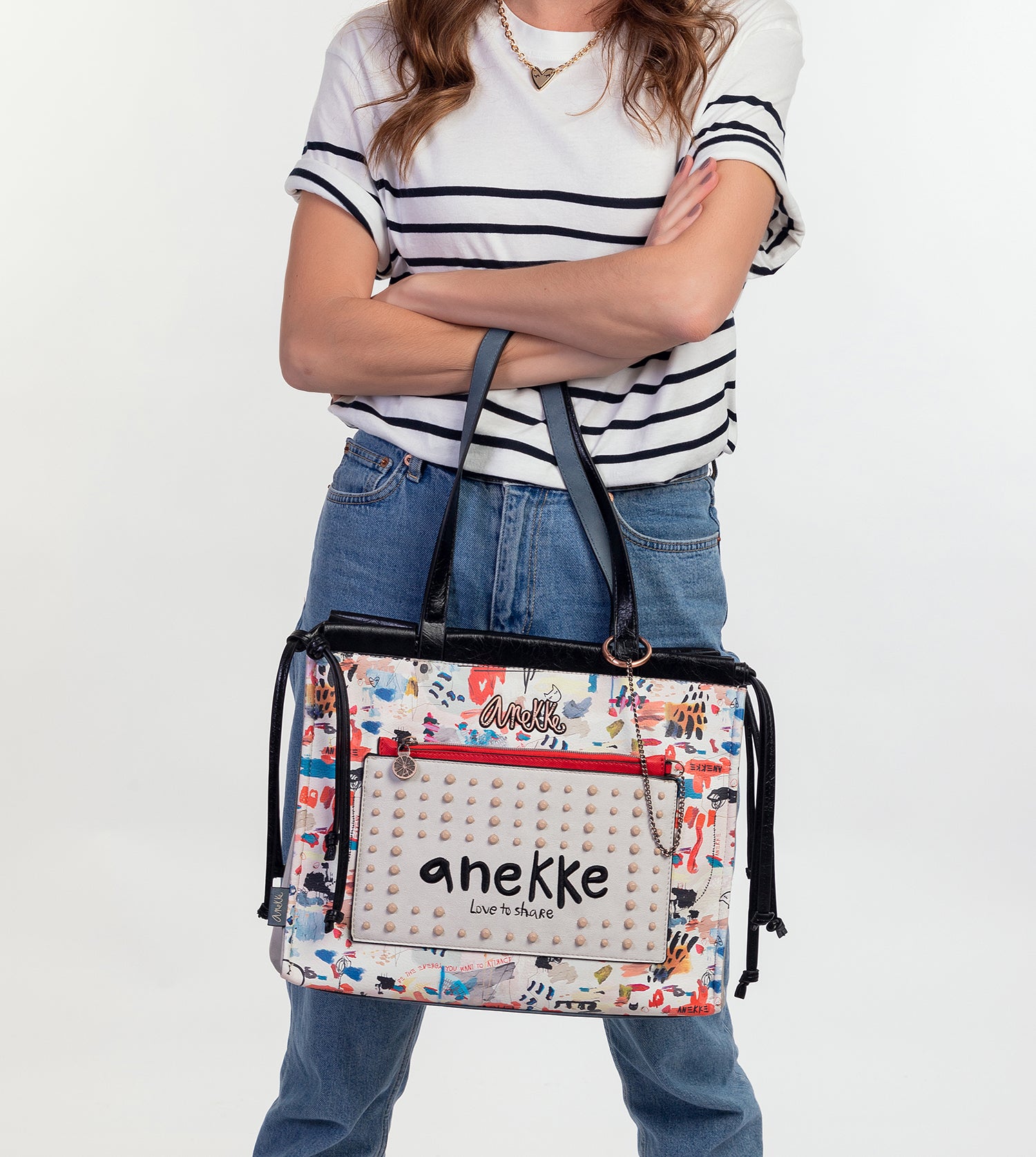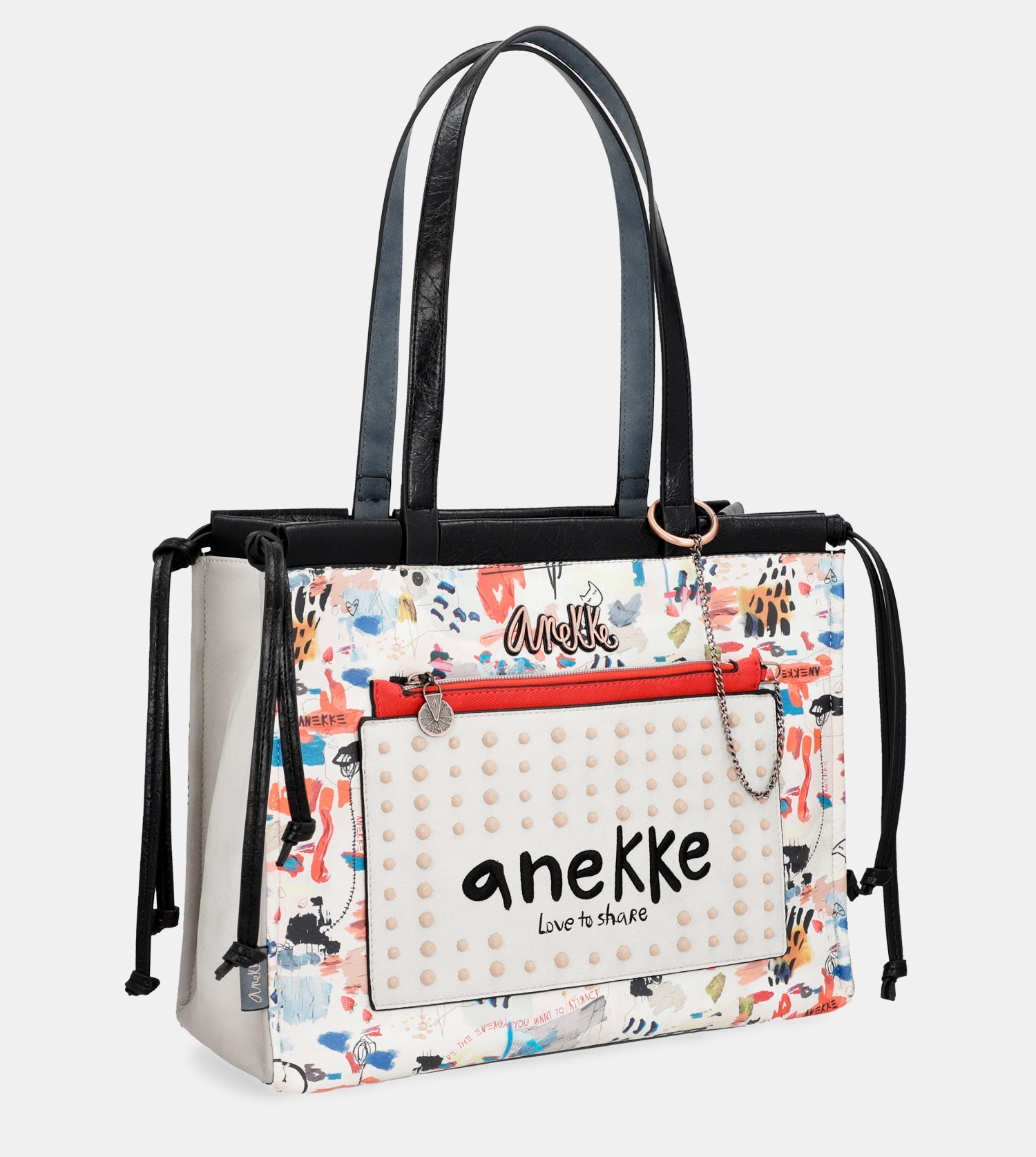 Praktická kabelka na plece s motívom Fancy ktorú zdobí prívesok Anekke. Na zadnej vonkajšej strane je vrecko na zips. Vo vnútri je otvorené vrecko na mobil a kľúče, taktiež vrecko na zips na doklady. Kabelka má zapínanie na zips. Kabelka je balená v taške Anekke.