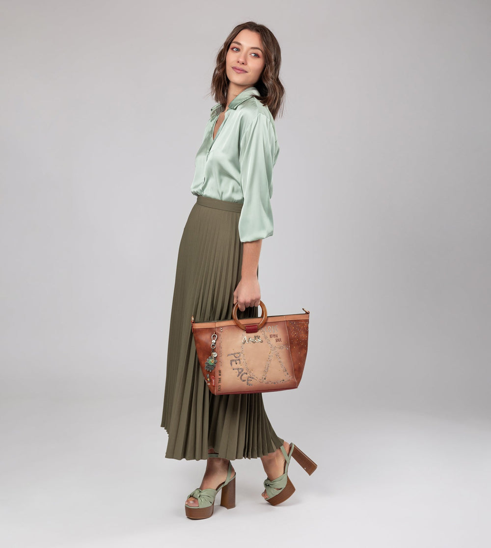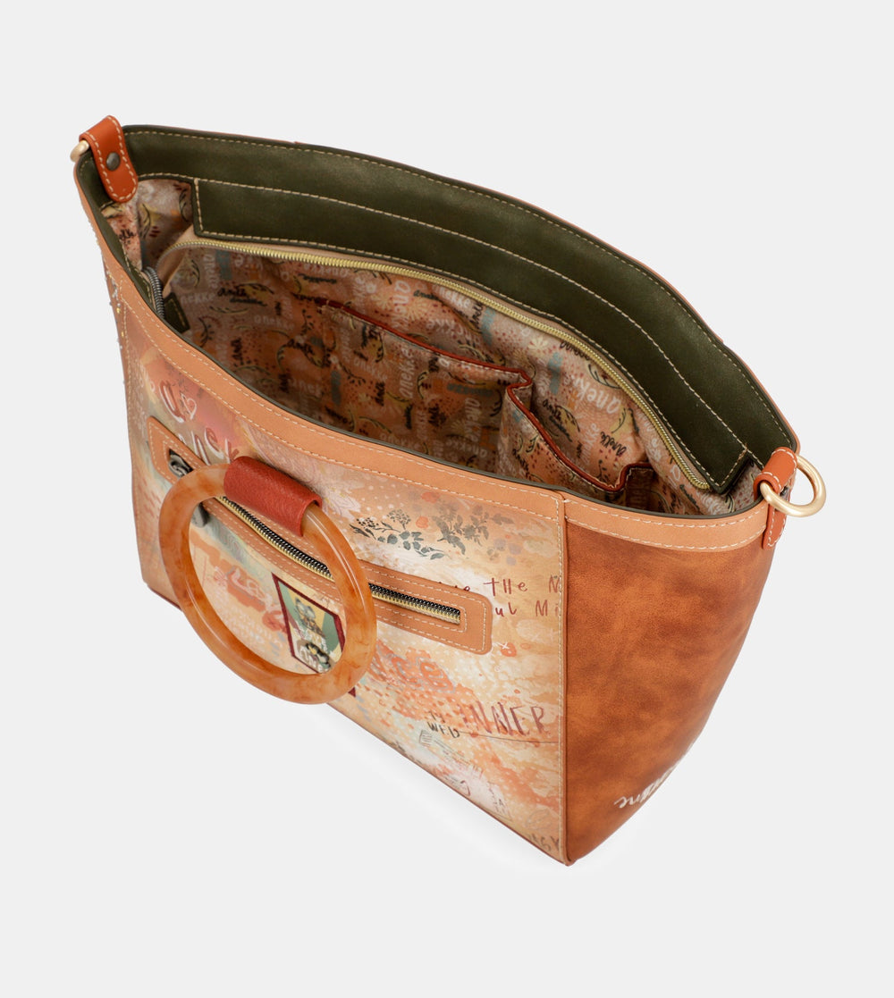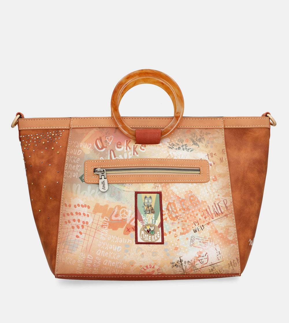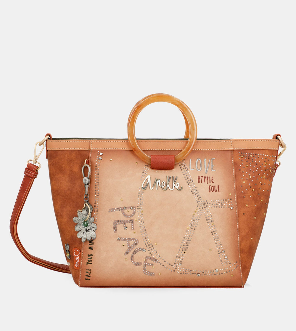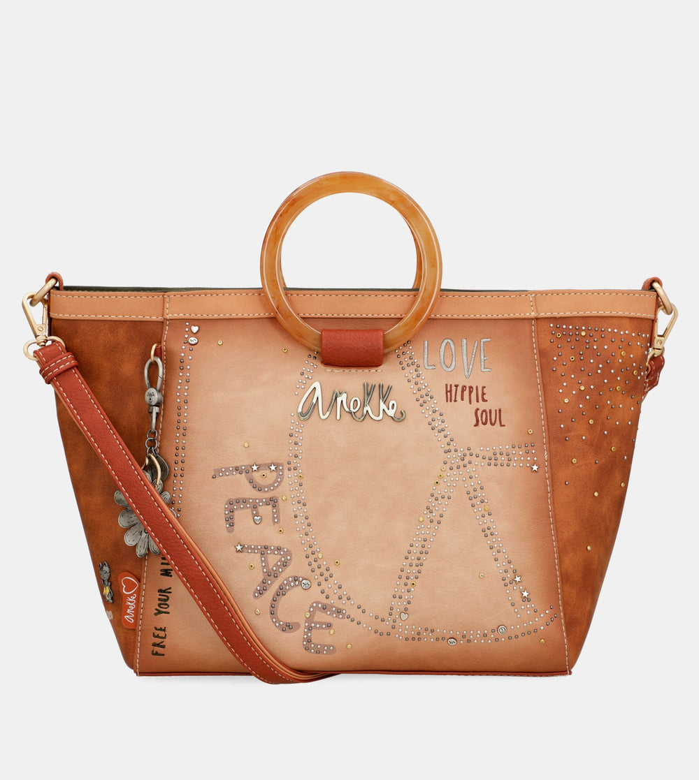 Praktická kabelka do ruky s motívom kolekcie Peace & Love - Flowers.Na zadnej vonkajšej strane je vrecko na zips. Vo vnútri je otvorené vrecko na mobil a kľúče, taktiež vrecko na zips na doklady. Kabelka má zapínanie na zips a súčastou balenia je aj popruh nastaviteľný podľa potreby. Kabelka je balená v taške Anekke.