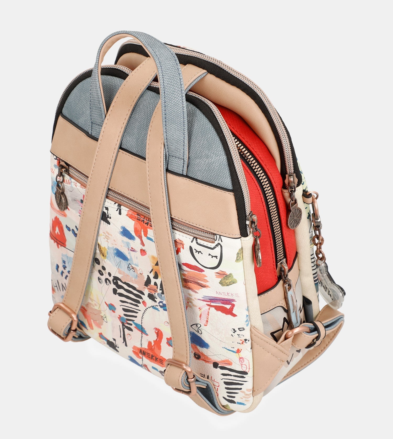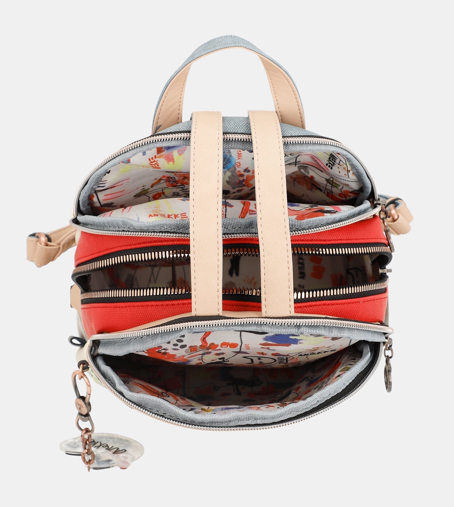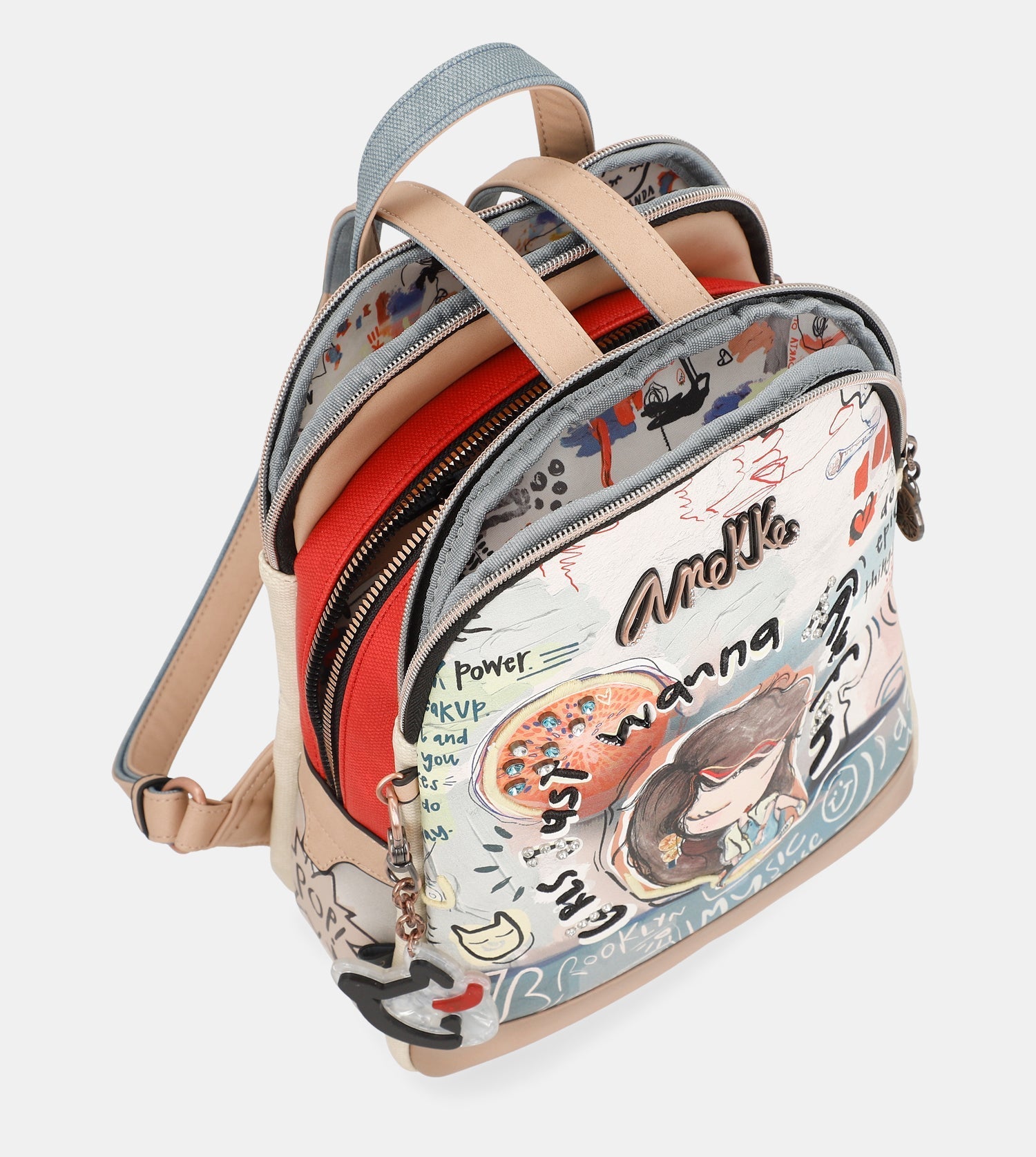 Praktický batoh s motívom Fun & Music. Batoh zdobí prívesok Anekke. Na vonkajšej zadnej strane je vrecko na zips. Batoh je členený na tri časti ktoré majú uzatváranie na zips. Vo vnútri kabelky je otvorené vrecko na mobil a kľúče, taktiež vrecko so zipsom na doklady.Popruhy batohu sú nastaviteľné podľa potreby. Batoh je balený v taške Anekke.