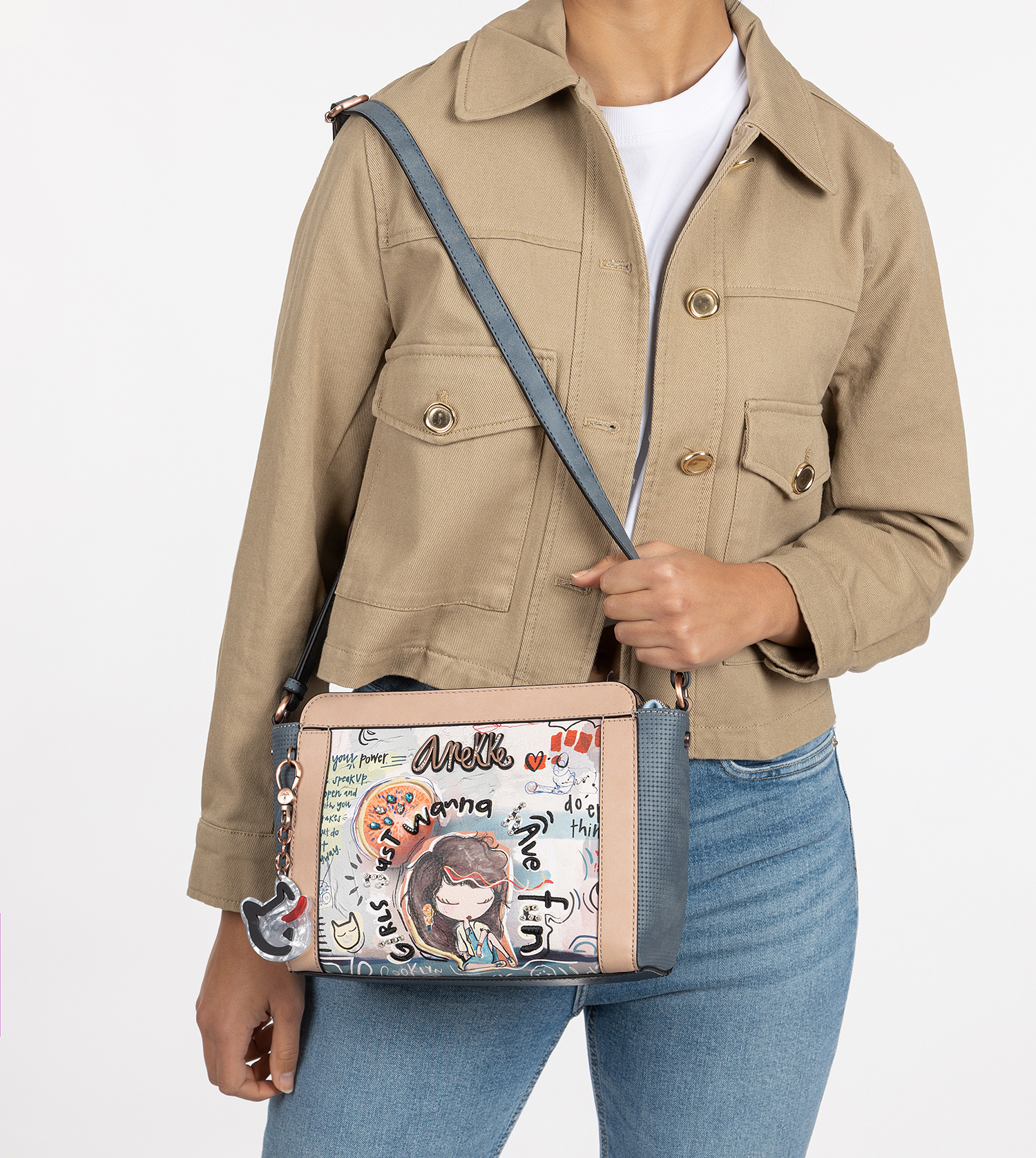 Praktická crossbody kabelka s motívom kolekcie Fun & Music. Vo vnútri je praktické vrecko na zips na drobnosti, vrecko na mobil. Taktiež na vonkajšej zadnej strane je vrecko na zips. Kabelka je balené v taške Anekke.