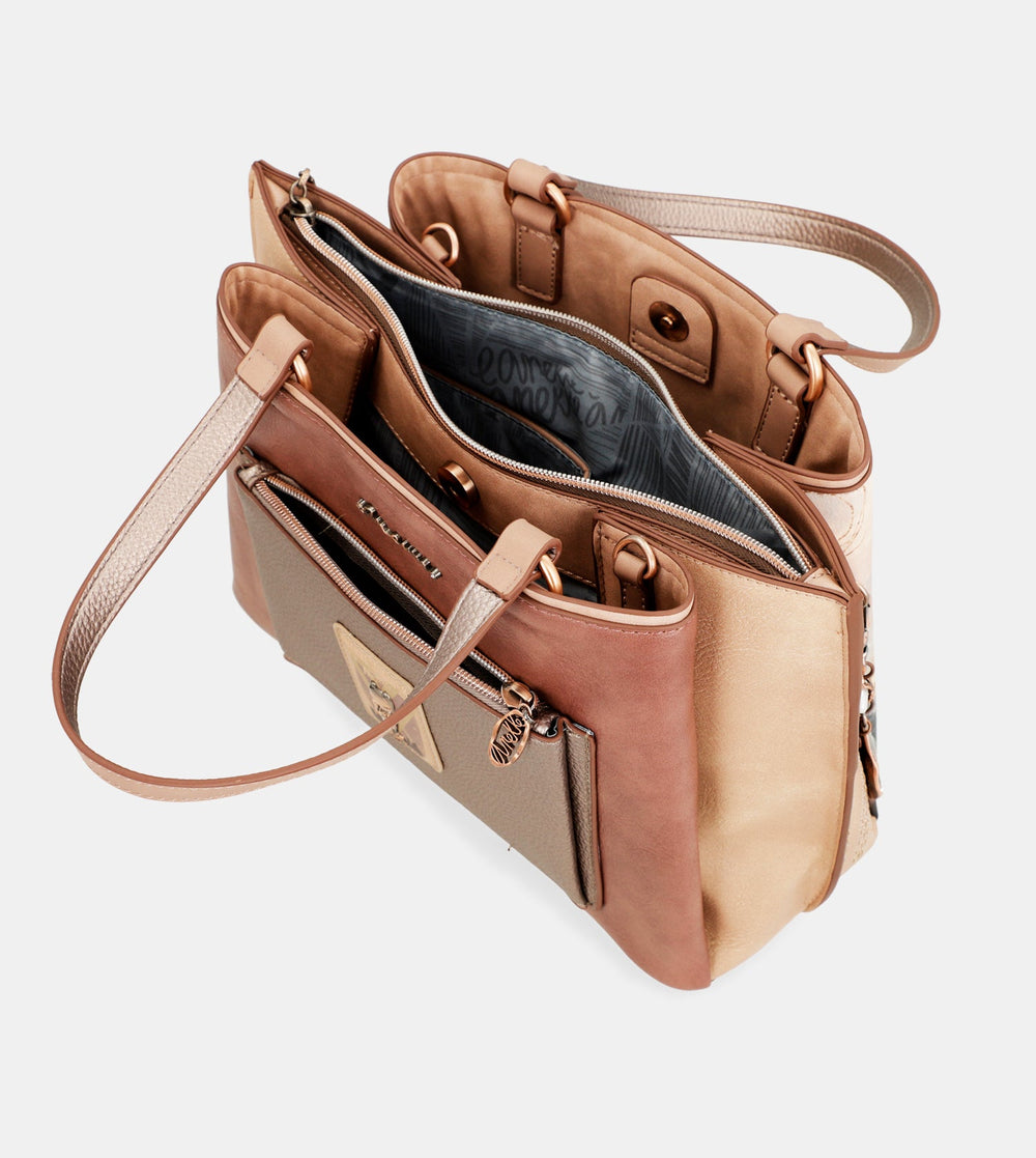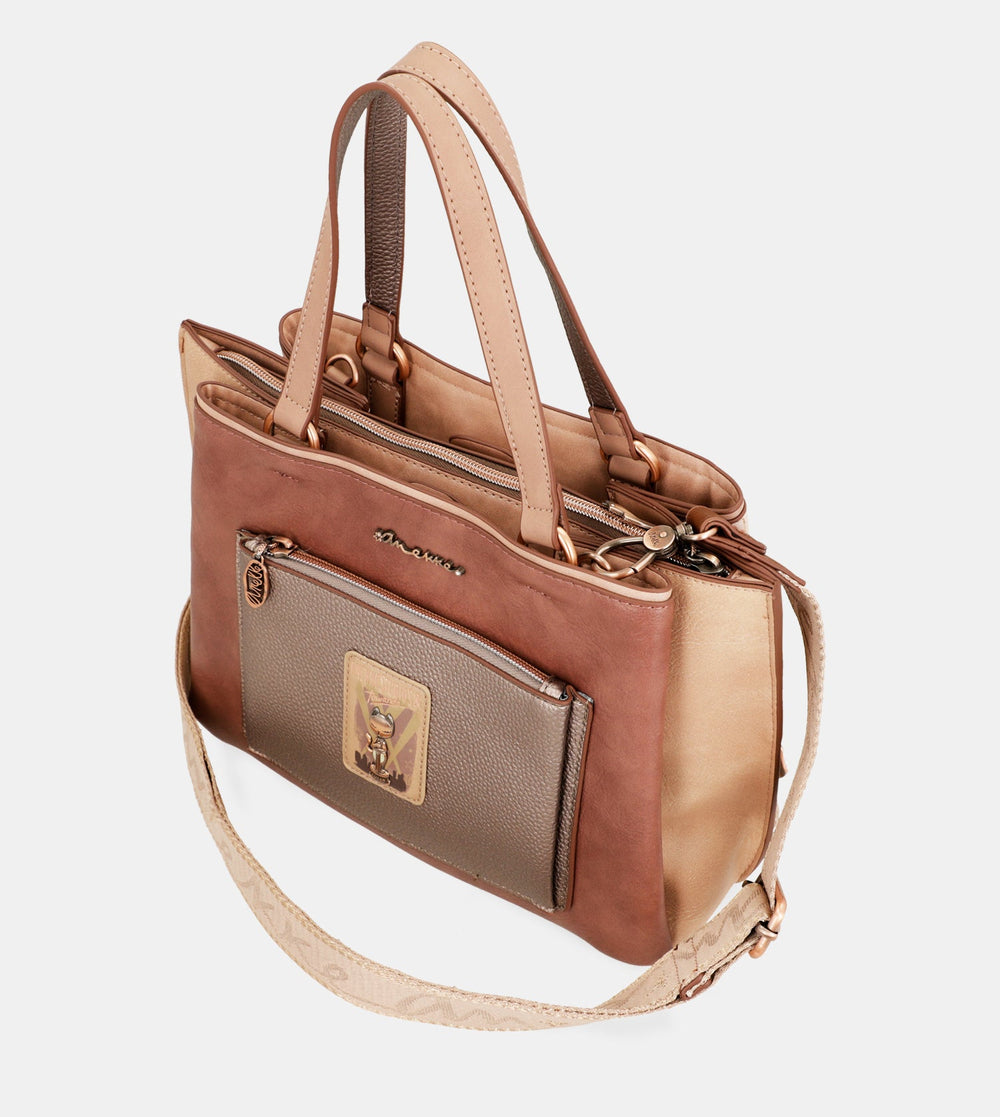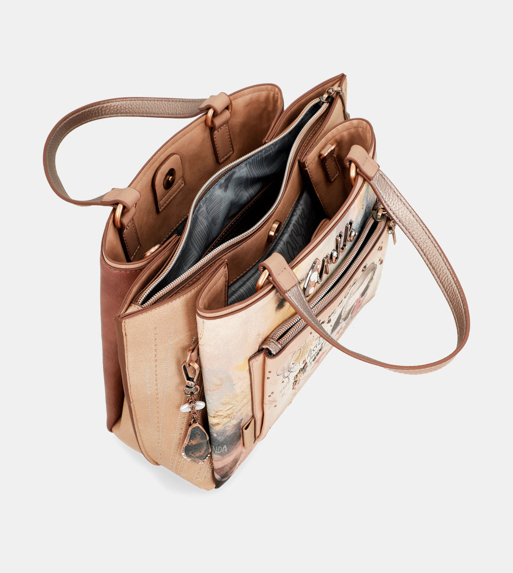 Praktická kabelka do ruky s motívom kolekcie Hollywood ktorú zdobí prívesok Anekke. Na zadnej vonkajšej strane je vrecko na zips. Vo vnútri je otvorené vrecko na mobil a kľúče, taktiež vrecko na zips na doklady. Kabelka má zapínanie na zips. Súčasťou balenia je aj popruh ktorý je nastaviteľný podľa potreby. Kabelka je balená v taške Anekke.