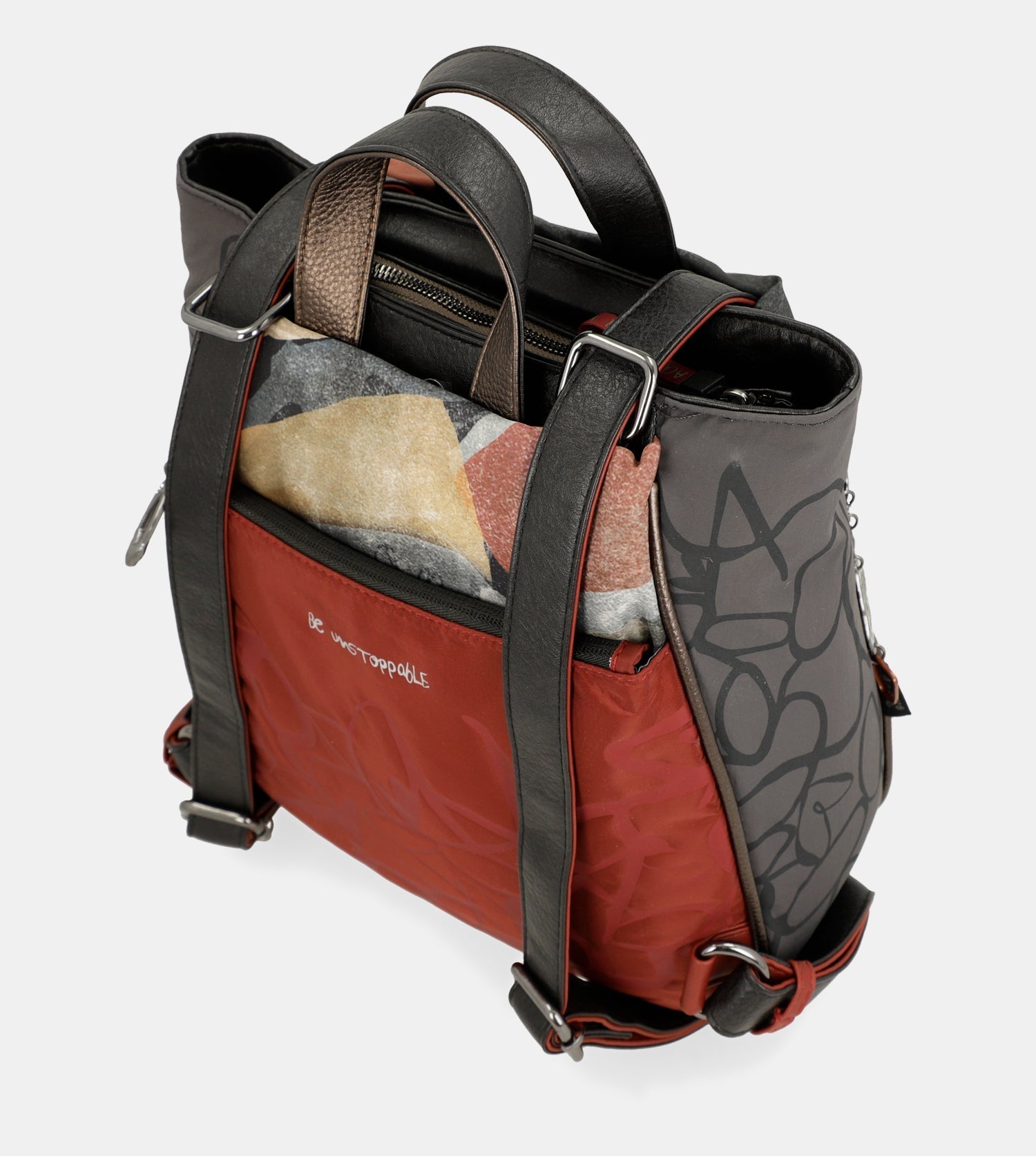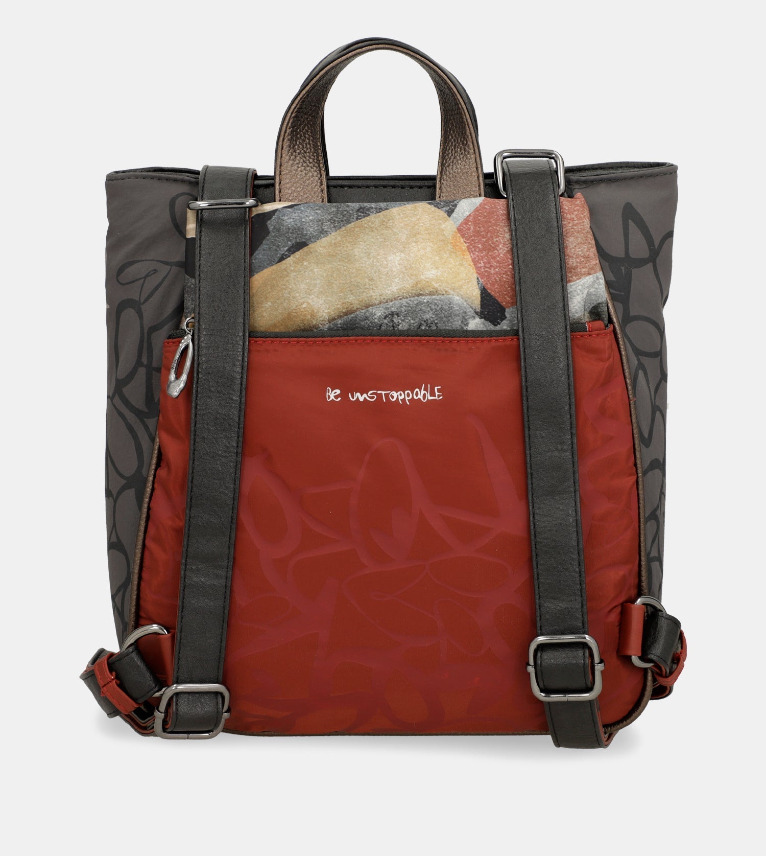 Praktický batoh s motívom recyklovanej kolekcie Anekke Dreamverse - Imaginary. Batoh zdobí prívesok Anekke. Na vonkajšej zadnej strane je vrecko na zips. Vo vnútri batohu je otvorené vrecko na mobil a kľúče, taktiež vrecko so zipsom na doklady.Batoh je členený na tri časti, jedna je uzatváraná na zips a dve na cvok.Popruhy batohu sú nastaviteľné podľa potreby. Batoh je balený v taške Anekke.