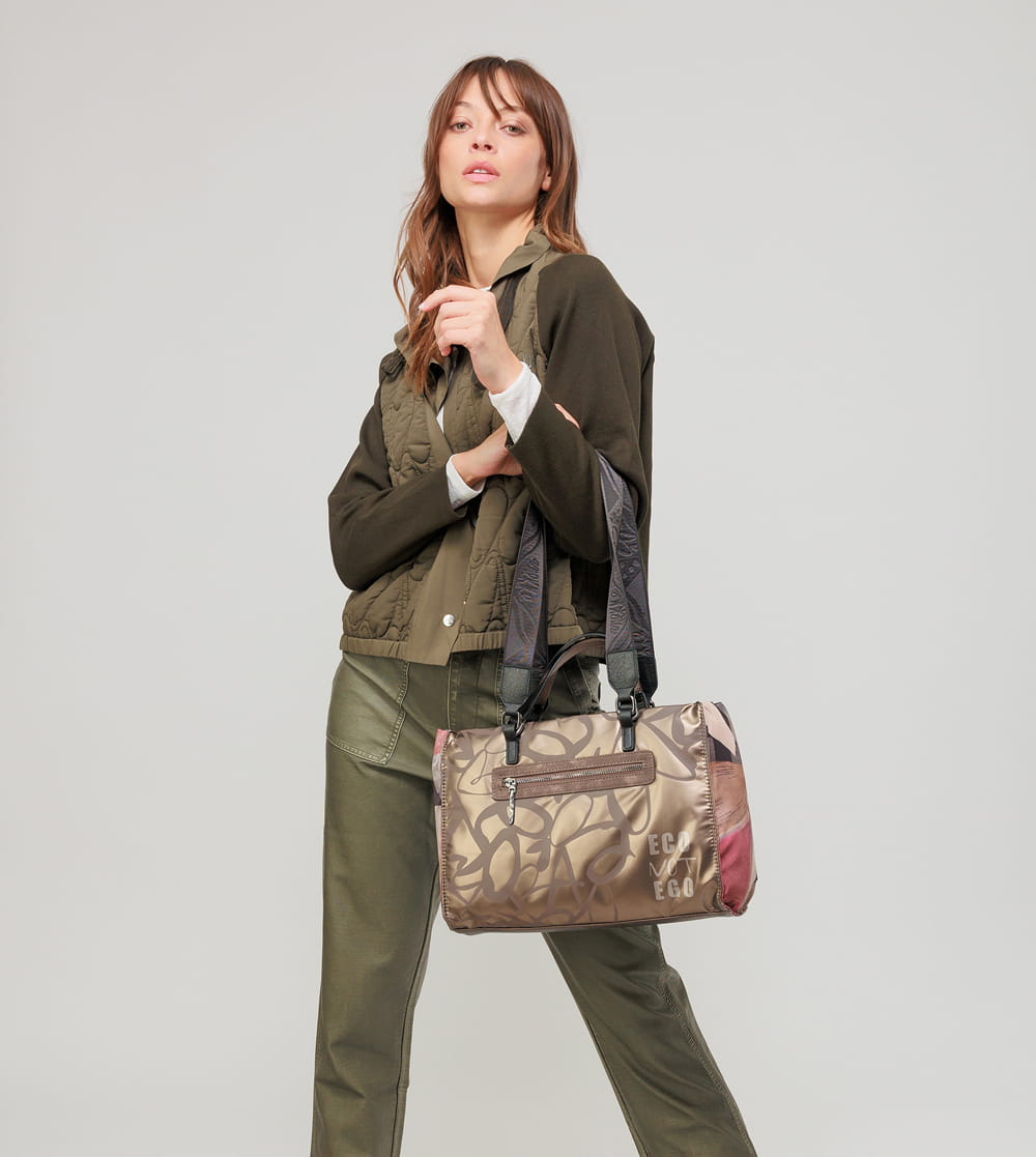 Praktická priestranná kabelka s motívom recyklovanej kolekcie Anekke Dreamverse - Imaginary s ozdobným príveskom Anekke. Na vonkajšej zadnej strane je vrecko na zips na uloženie drobnosti. Vo vnútornej časti sú otvorené vrecká na mobil a kľúče, taktiež vrecko so zipsom na doklady. Kabelka je balená v taške Anekke.