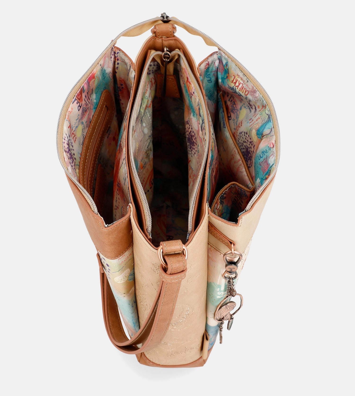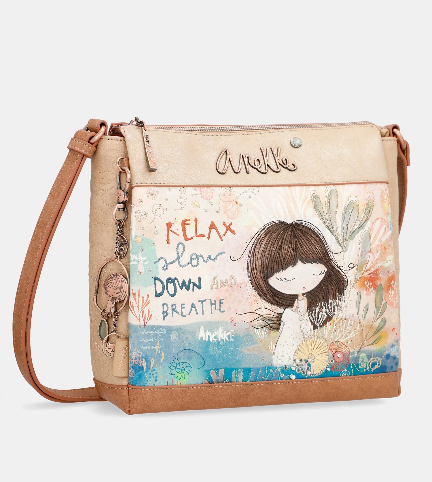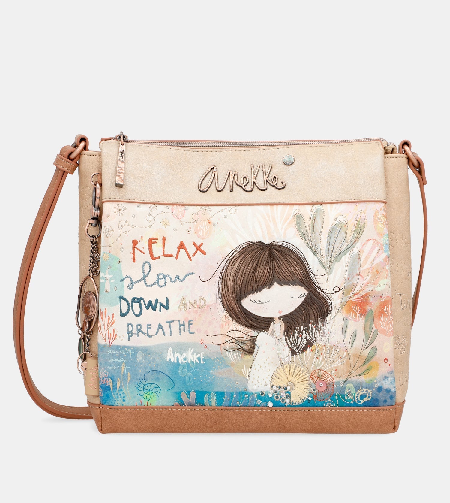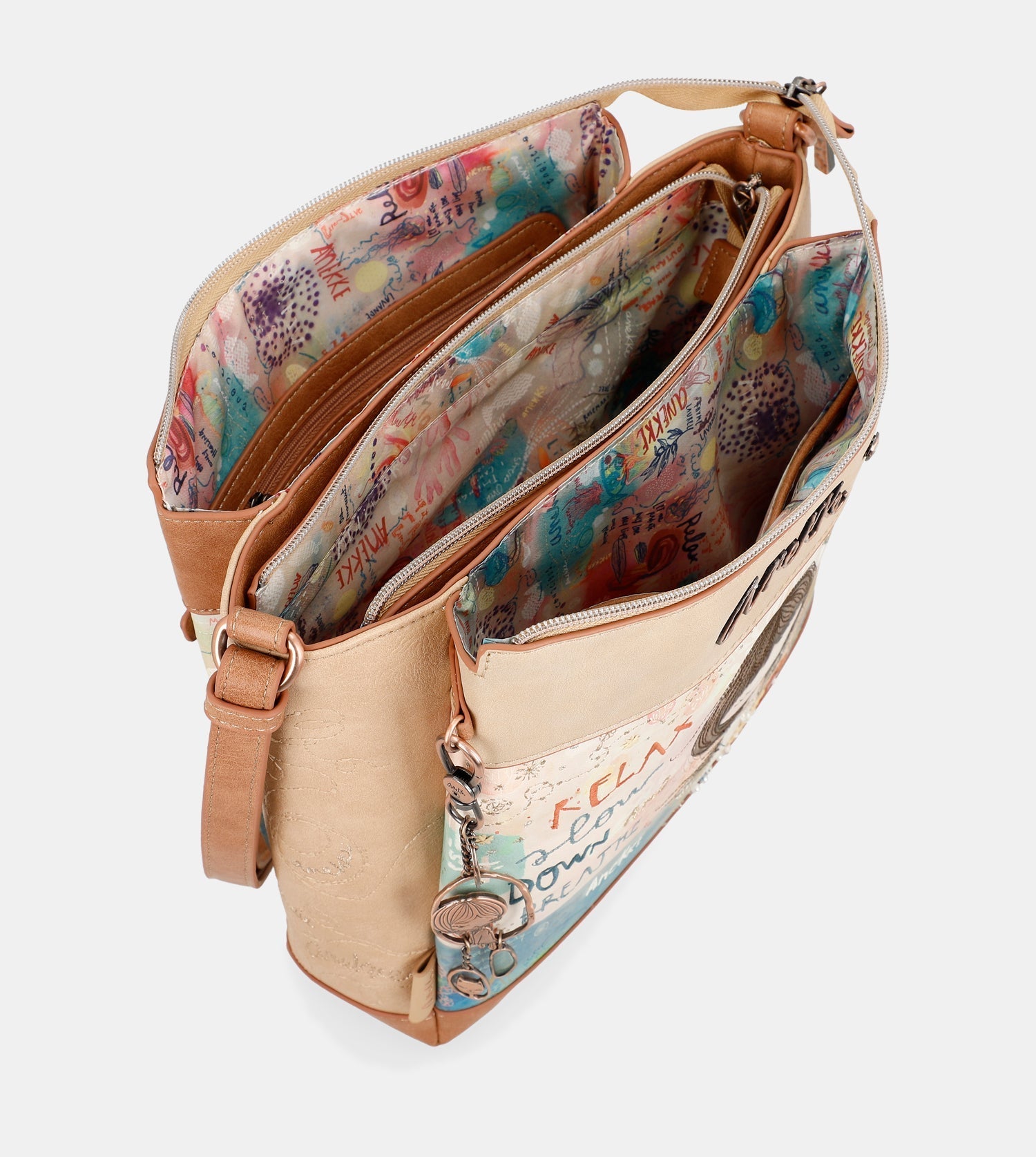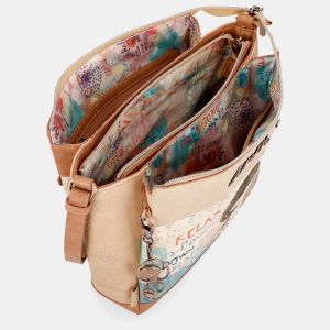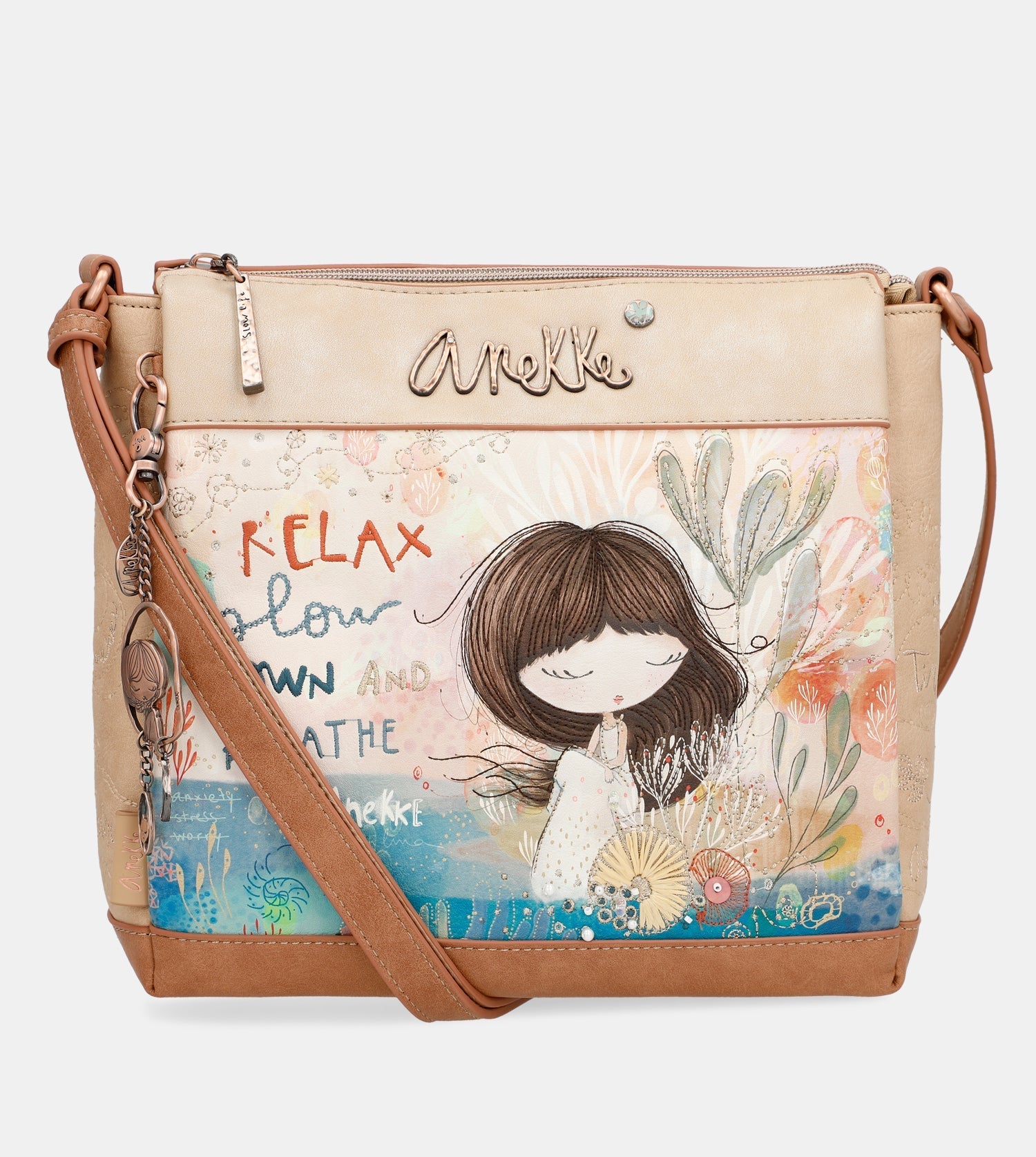 Praktická crossbody kabelka s motívom kolekcie Mediterranean. Vo vnútri je praktické vrecko na zips na drobnosti, vrecko na mobil. Taktiež na vonkajšej zadnej strane je vrecko na zips. Kabelak je vo vnútri členená na tri časti. Kabelka je balené v taške Anekke.