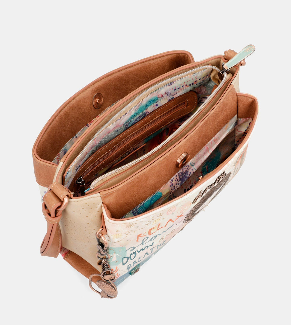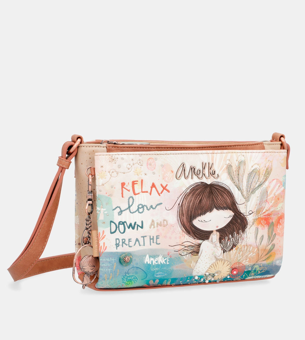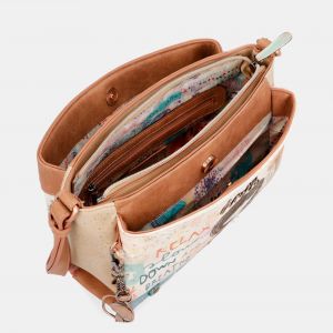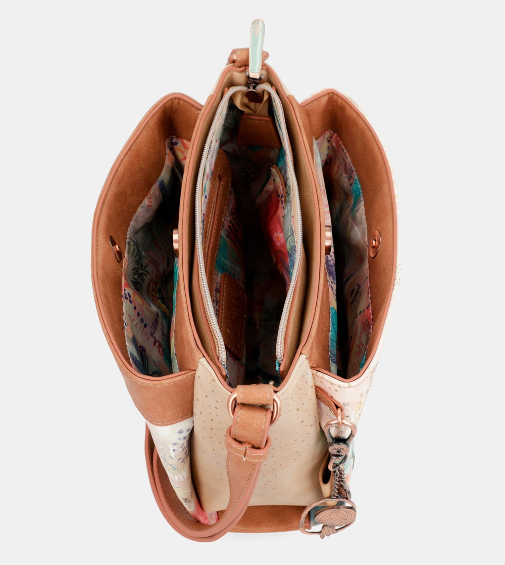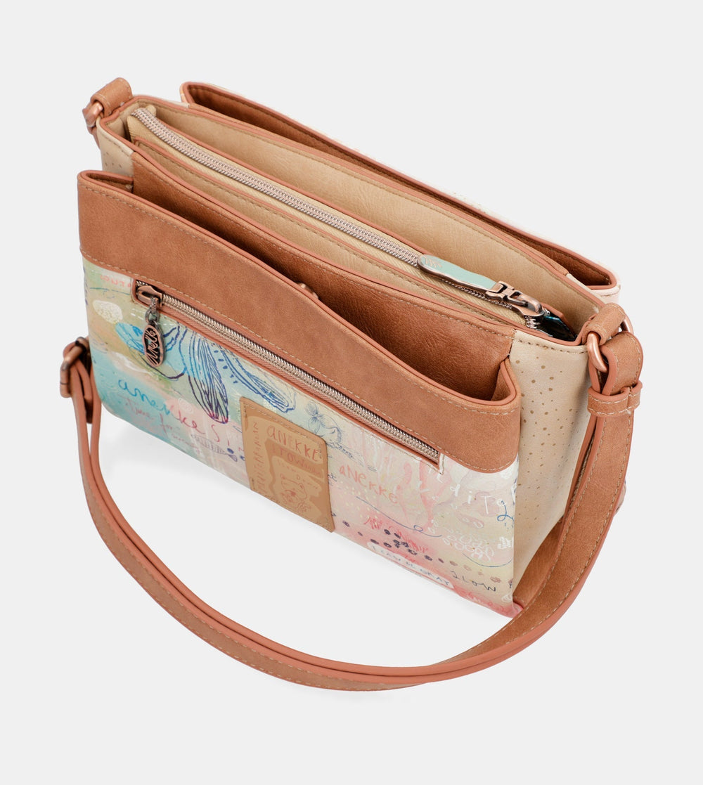 Praktická crossbody kabelka ideálna na výlety s motívom kolekcie Mediterranean do ktorej uložíte všetko potrebné. Vo vnútri je praktické vrecko na zips na drobnosti, vrecko na mobil. Kabelka je členená na tri časti, dve sa uzatvárajú na cvok a jedna na zips.Taktiež na vonkajšej zadnej strane je vrecko na zips.Kabelka je balené v taške Anekke.