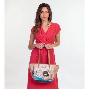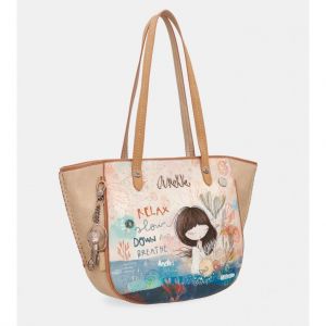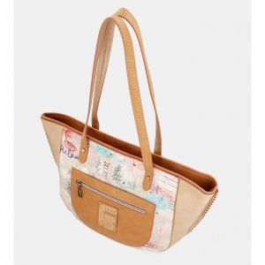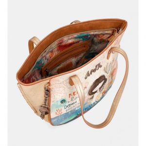 Praktická kabelka na plece s motívom Mediterranean ktorú zdobí prívesok Anekke. Na zadnej vonkajšej strane je vrecko na zips. Vo vnútri je otvorené vrecko na mobil a kľúče, taktiež vrecko na zips na doklady. Kabelka má zapínanie na zips. Kabelka je balená v taške Anekke.