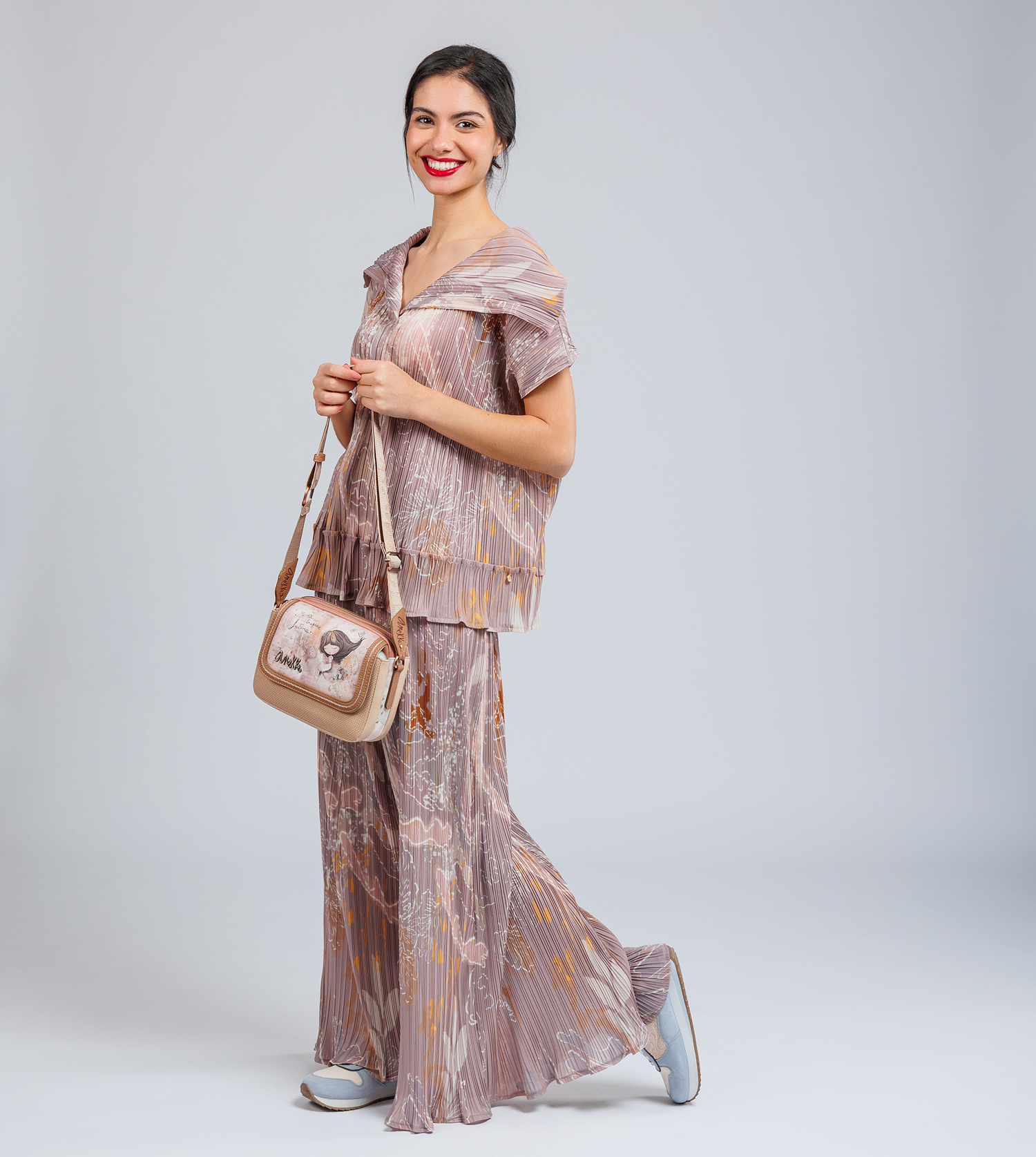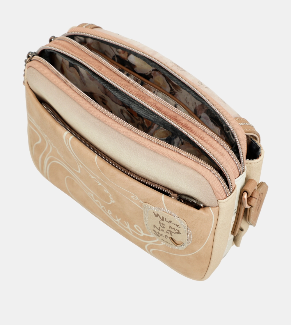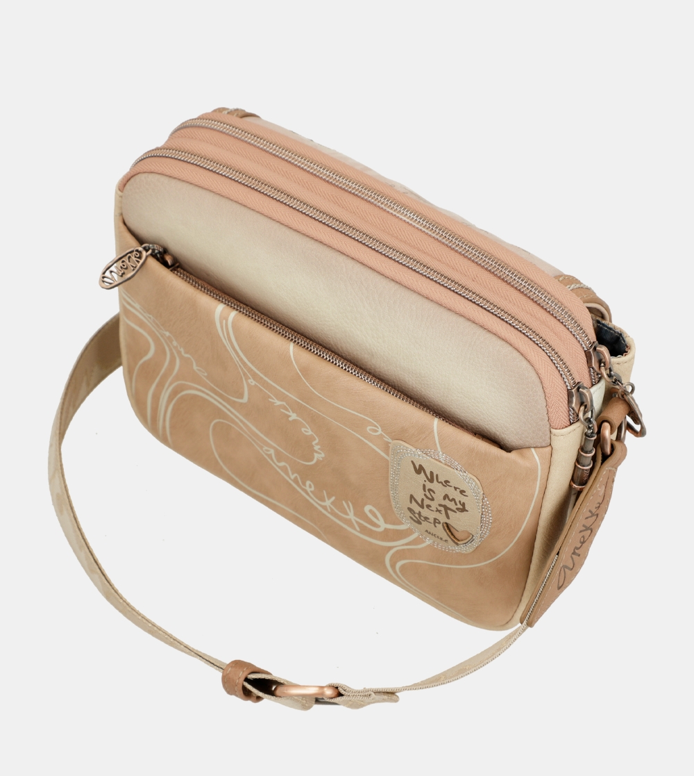 Praktická crossbody kabelka ideálna na výlety s motívom kolekcie Anekke Memories do ktorej uložíte všetko potrebné. Vo vnútri je praktické vrecko na zips na drobnosti, vrecko na mobil. Kabelka je členená na tri časti, dve sa uzatvárajú na zips a jedna na cvok.Taktiež na vonkajšej zadnej strane je vrecko na zips.Kabelka je balené v taške Anekke a zdobí ju prívesok Anekke.