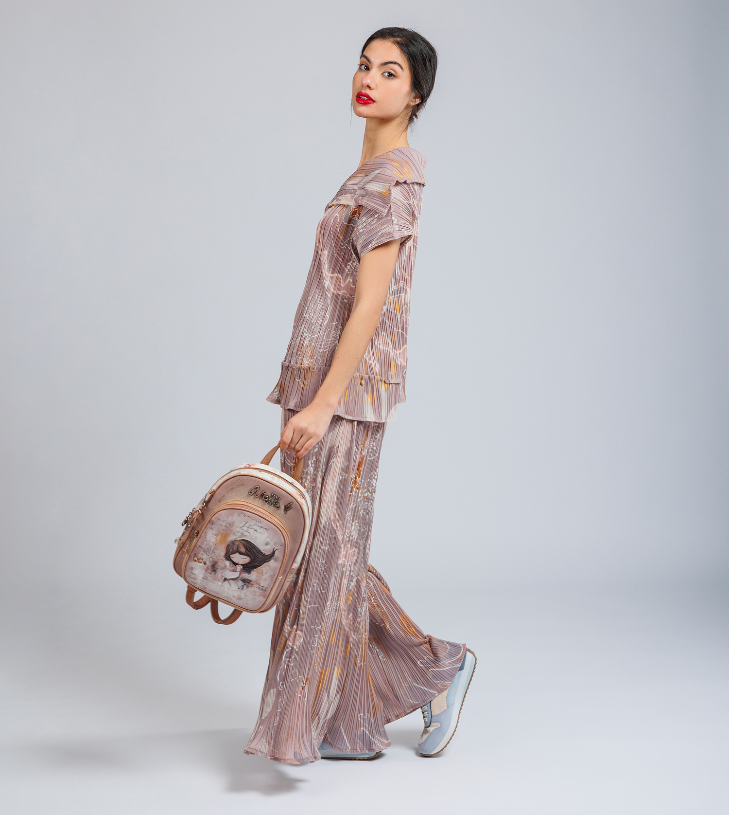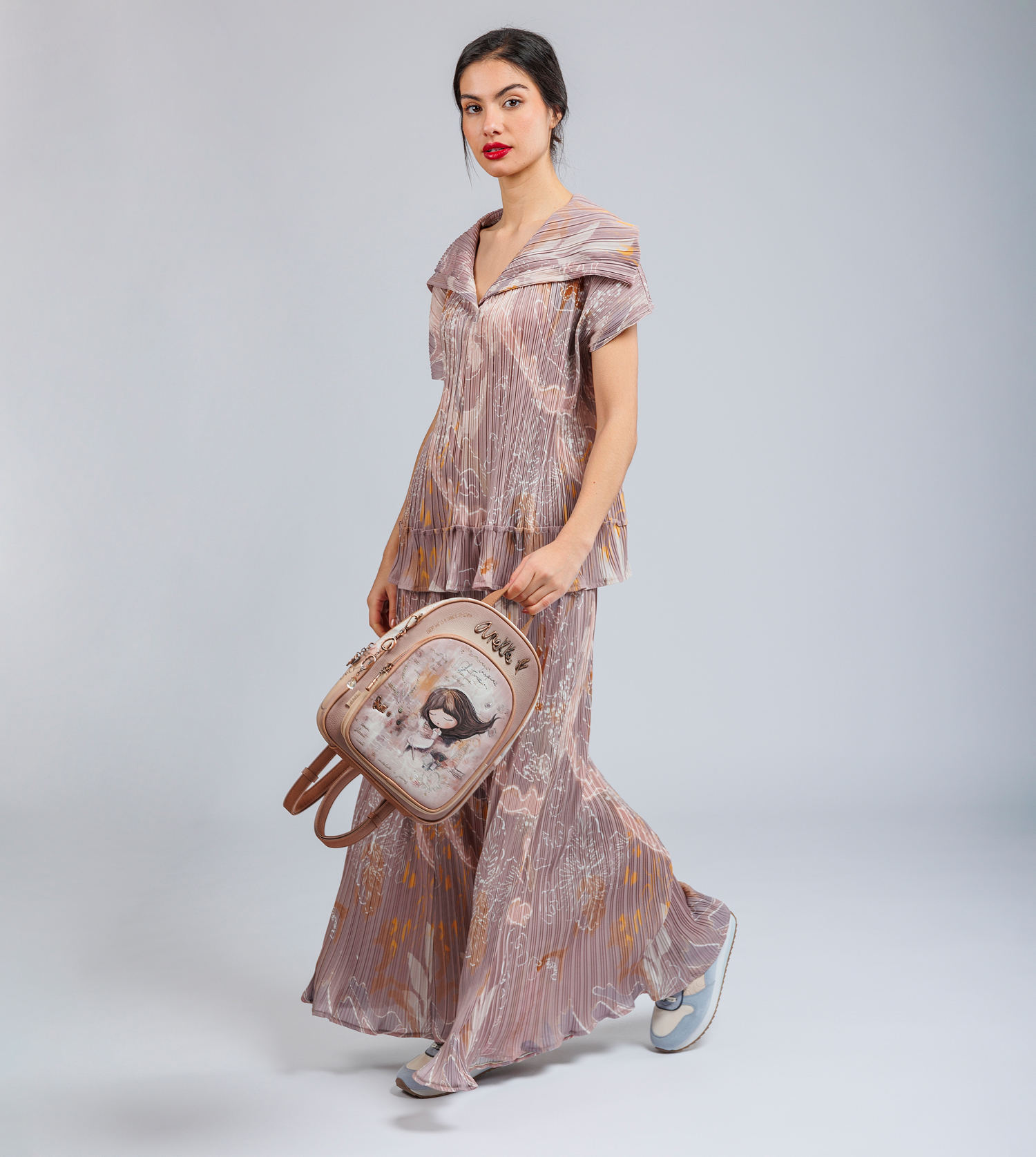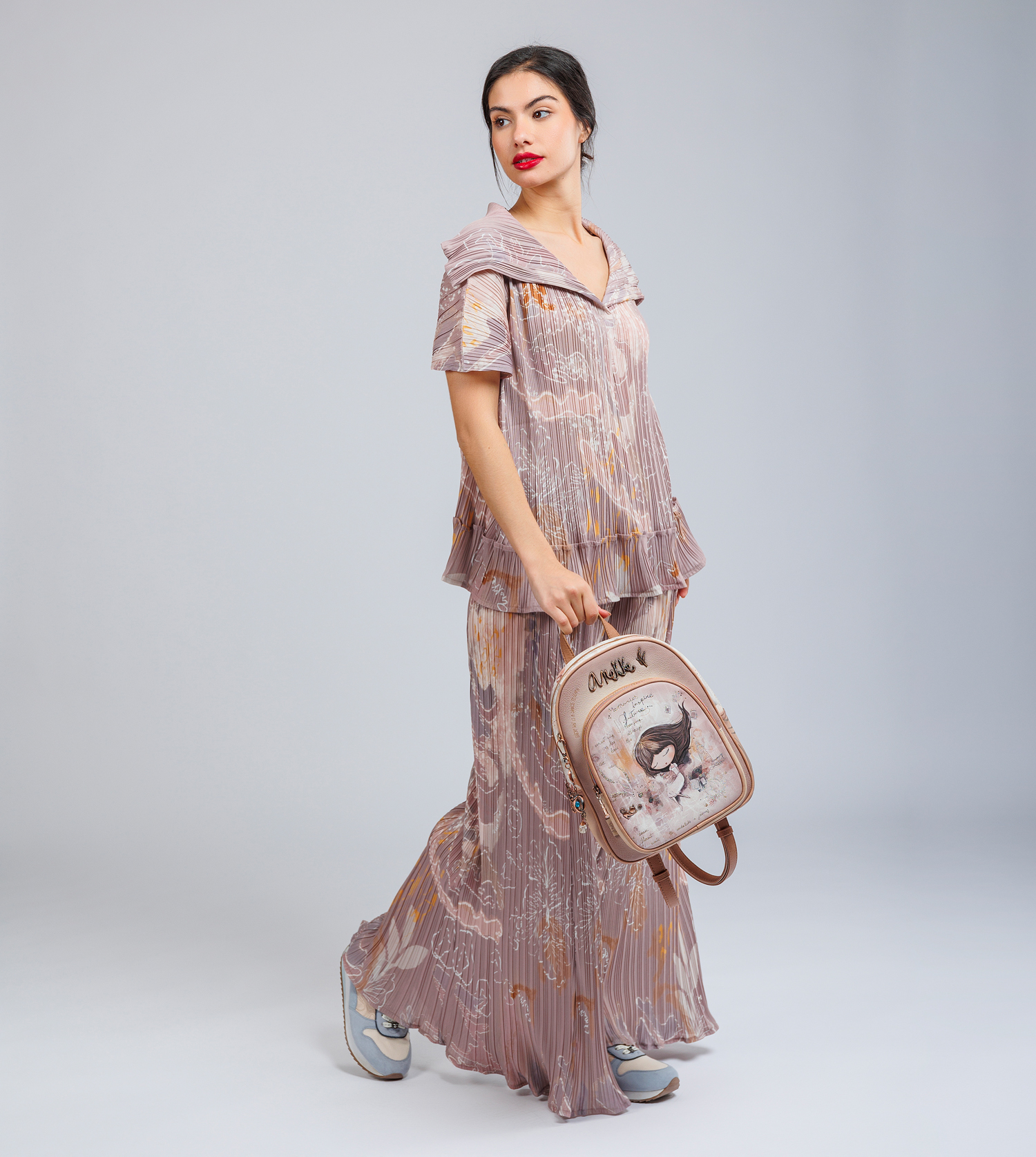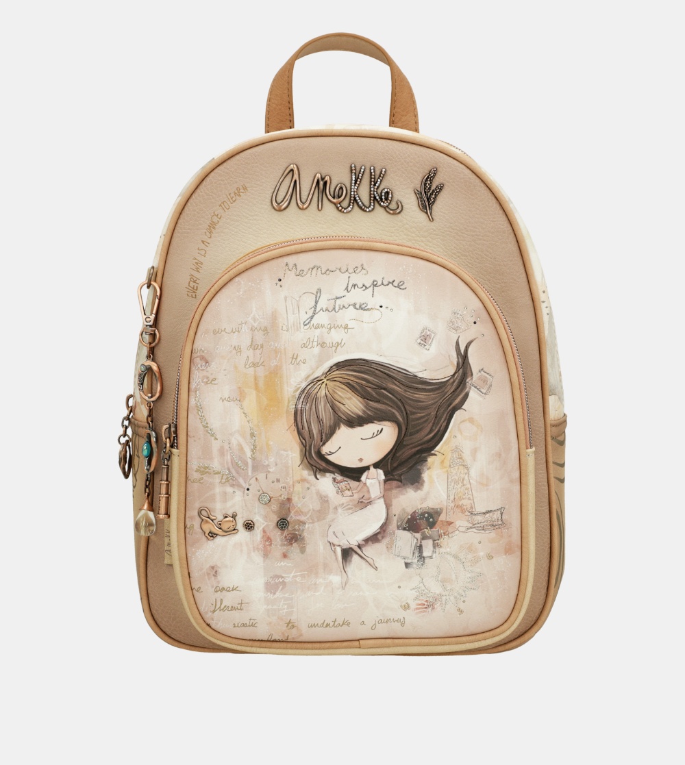 Praktický batoh s motívom kolekcie Anekke Memories. Batoh zdobí prívesok Anekke. Na vonkajšej zadnej strane je vrecko na zips, na prednej strane je menšie vrecko na drobnosti. Vo vnútri batohu je otvorené vrecko na mobil a kľúče, taktiež vrecko so zipsom na doklady.Popruhy batohu sú nastaviteľné podľa potreby. Batoh je balený v taške Anekke.