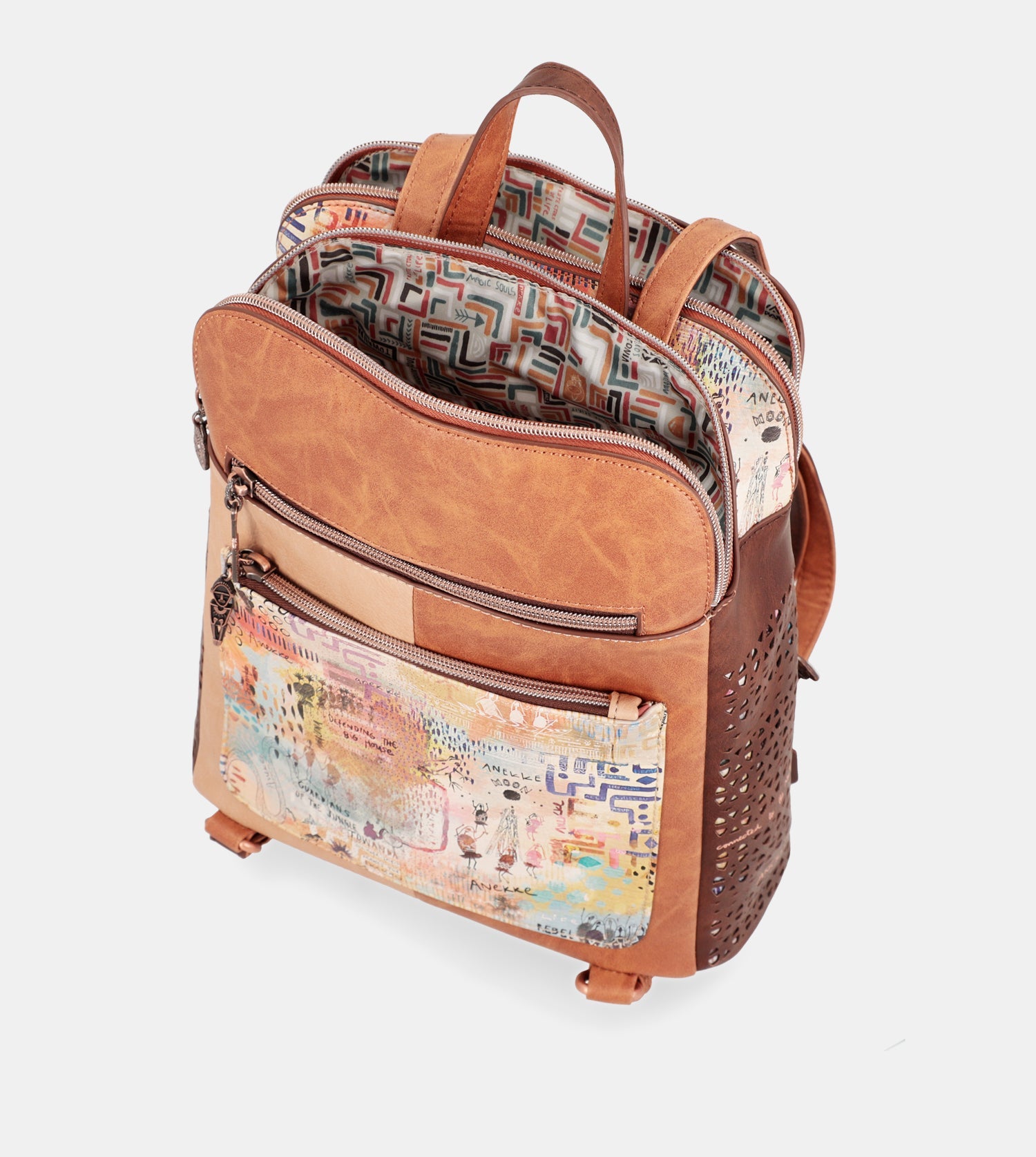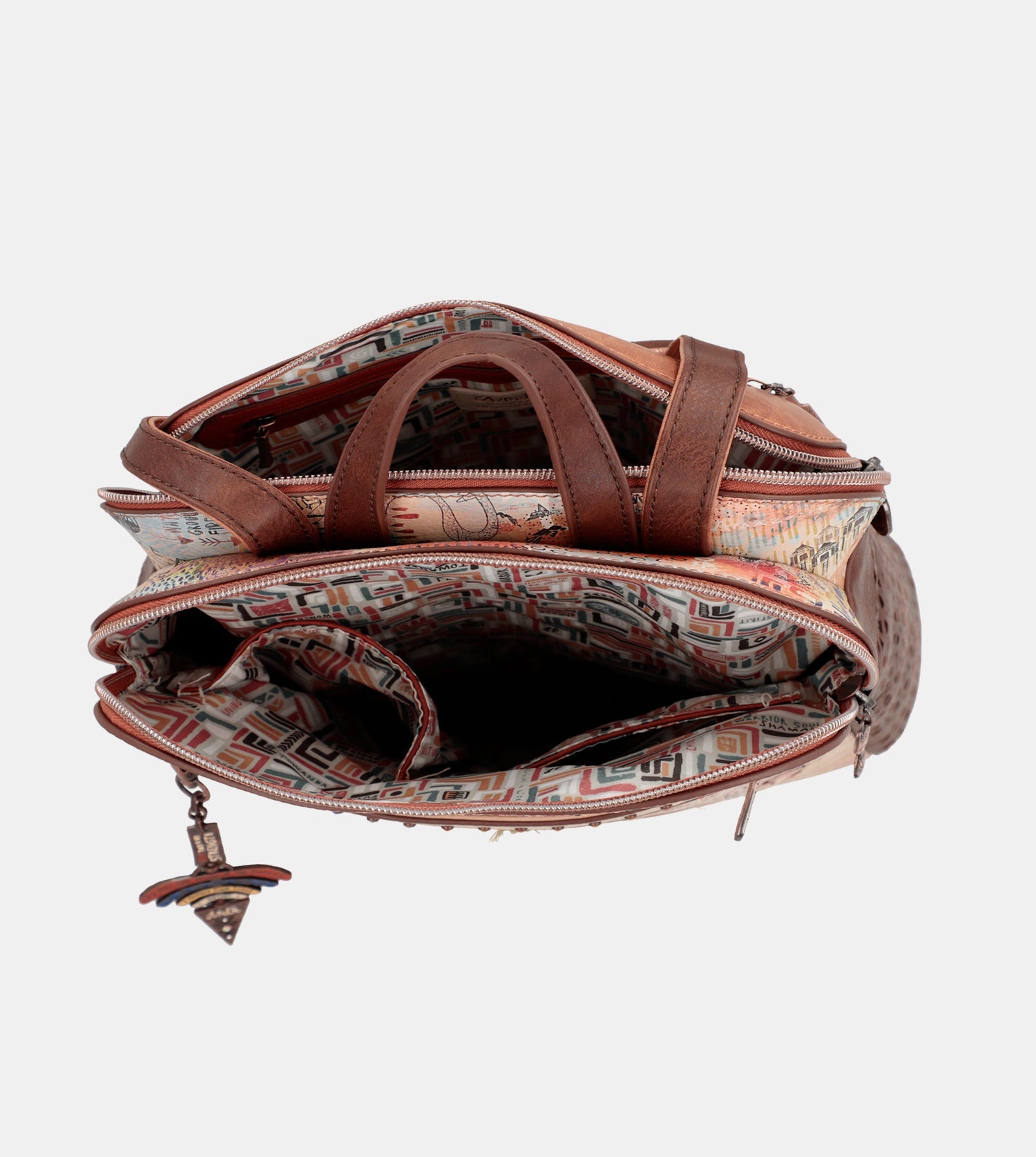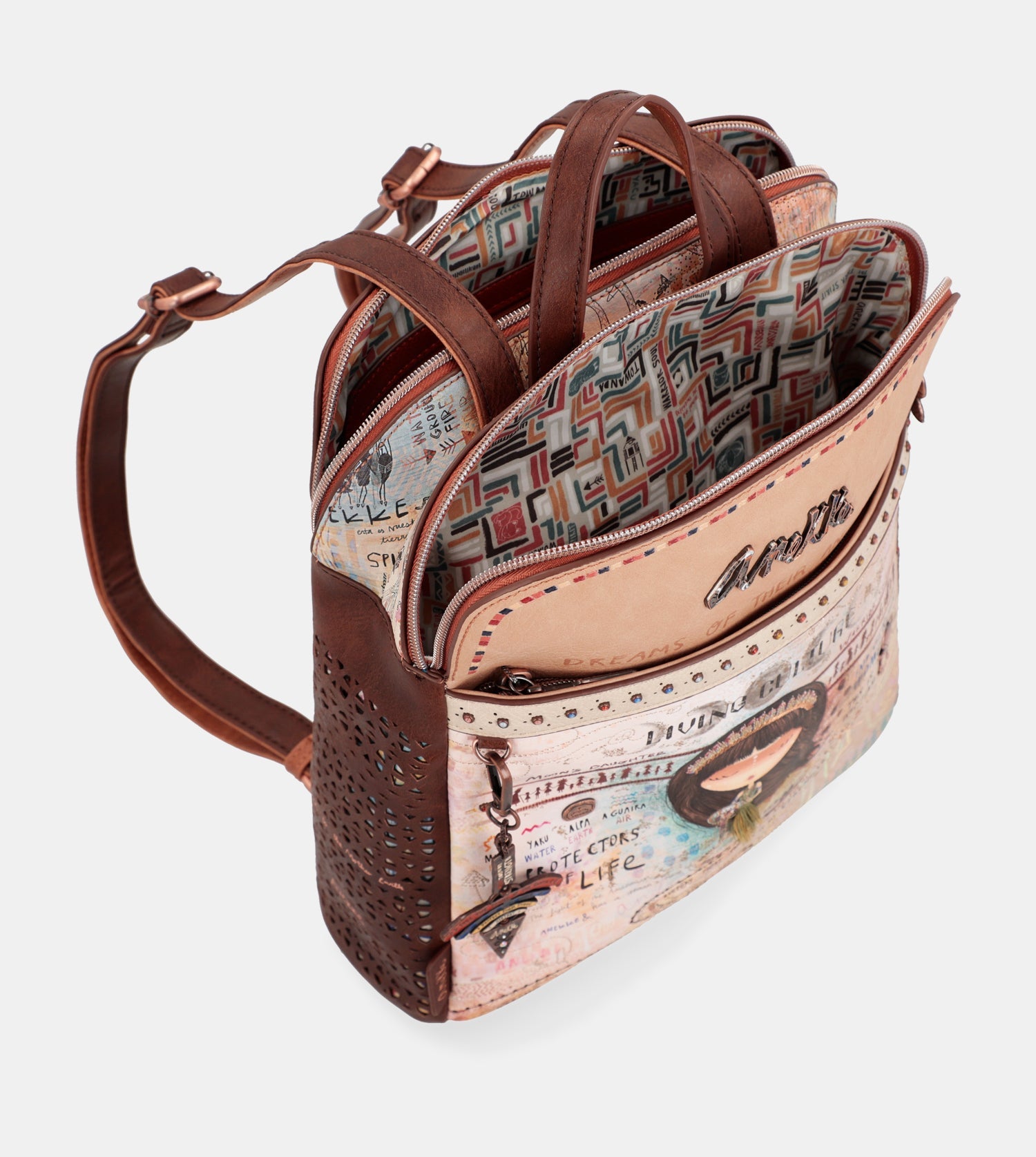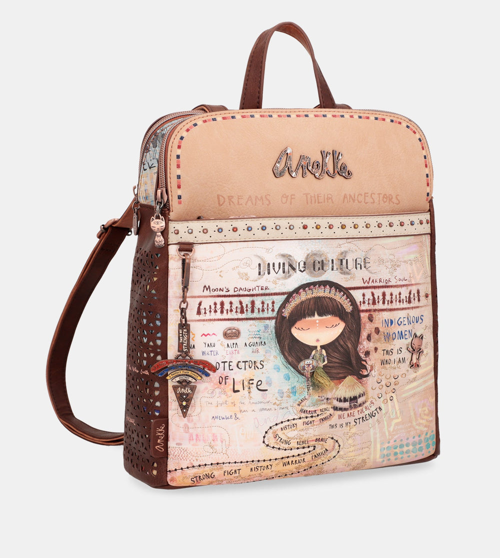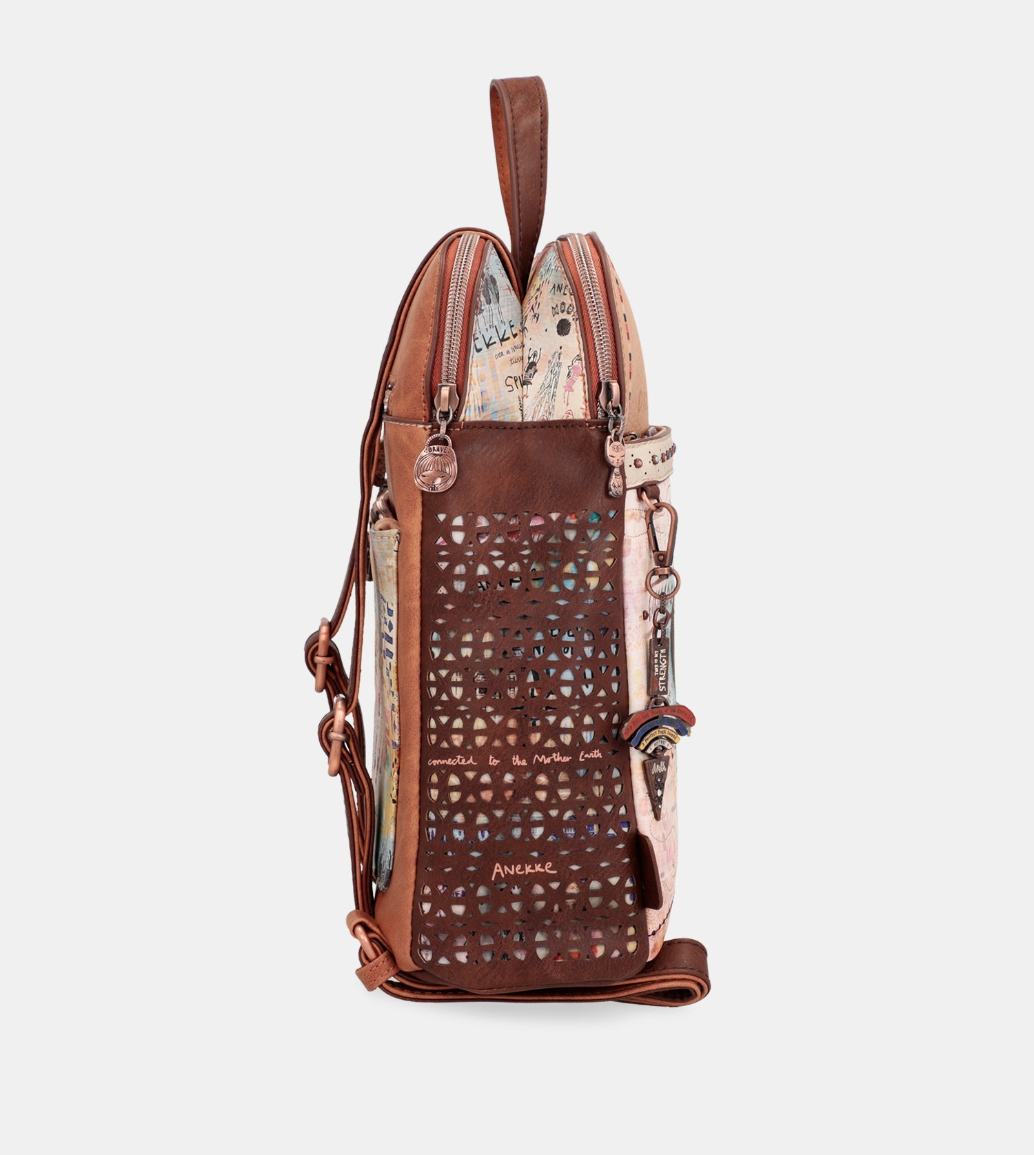 Praktický batoh s motívom kolekcie Menire. Batoh zdobí prívesok Anekke. Na vonkajšej zadnej strane je vrecko na zips, na prednej strane je menšie vrecko na drobnosti. Vo vnútri batohu je otvorené vrecko na mobil a kľúče, taktiež vrecko so zipsom na doklady.Batoh je členený na dve časti.Popruhy batohu sú nastaviteľné podľa potreby. Batoh je balený v taške Anekke.