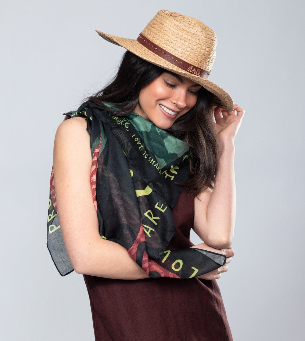 Perfektný slamený klobúk s motívom kolekcie Menire španielskej značky Anekke. Vo vnútri klobúku je aj šnúrka na stiahnutie klobúka. Ideálny na letnú dovolenku:)