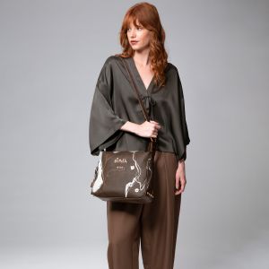 Praktická kabelka na plece s motívom kolekcie Nature Shodō Brown ktorú zdobí prívesok Anekke. Na zadnej vonkajšej strane je vrecko na zips. Vo vnútri je otvorené vrecko na mobil a kľúče, taktiež vrecko na zips na doklady. Kabelka má zapínanie na zips. Súčasťou balenia je aj popruh ktorý je nastaviteľný podľa potreby. Kabelka je balená v taške Anekke.