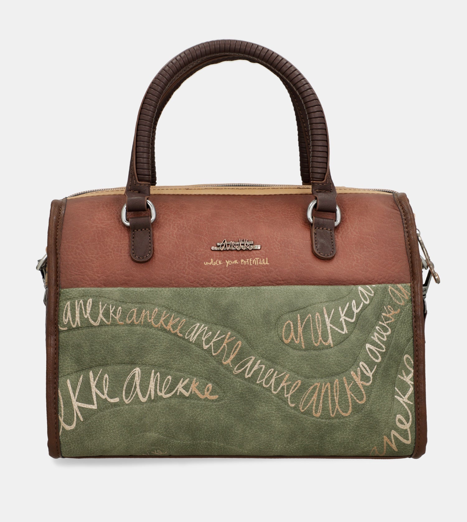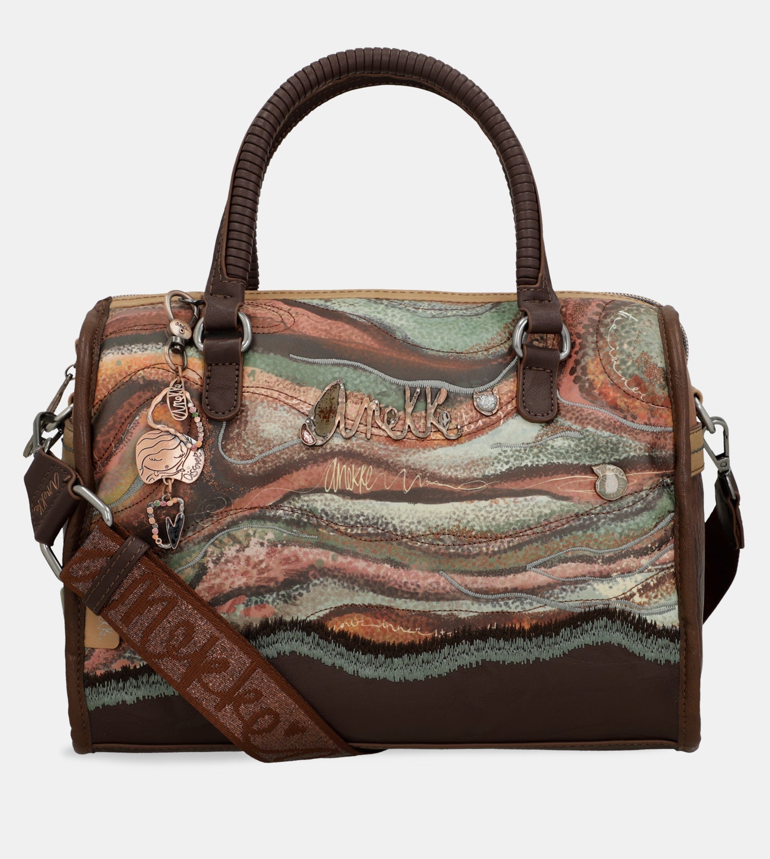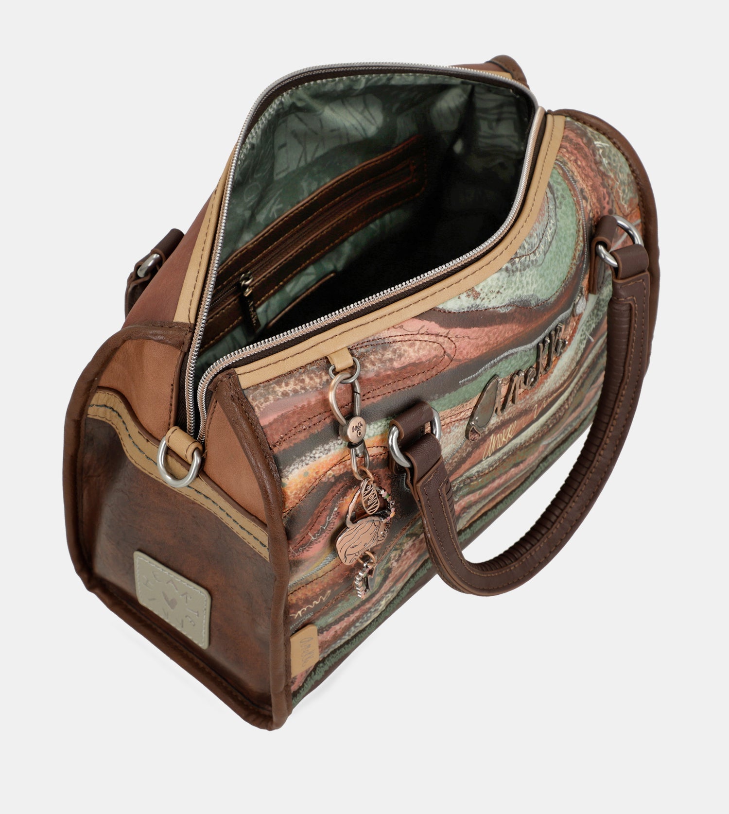 Praktická kabelka do ruky s motívom kolekcie Anekke Core - Outer ktorú zdobí prívesok Anekke. Na zadnej vonkajšej strane je vrecko na zips. Vo vnútri je otvorené vrecko na mobil a kľúče, taktiež vrecko na zips na doklady. Kabelka má zapínanie na zips. Súčasťou balenia je aj popruh ktorý je nastaviteľný podľa potreby. Kabelka je balená v taške Anekke.