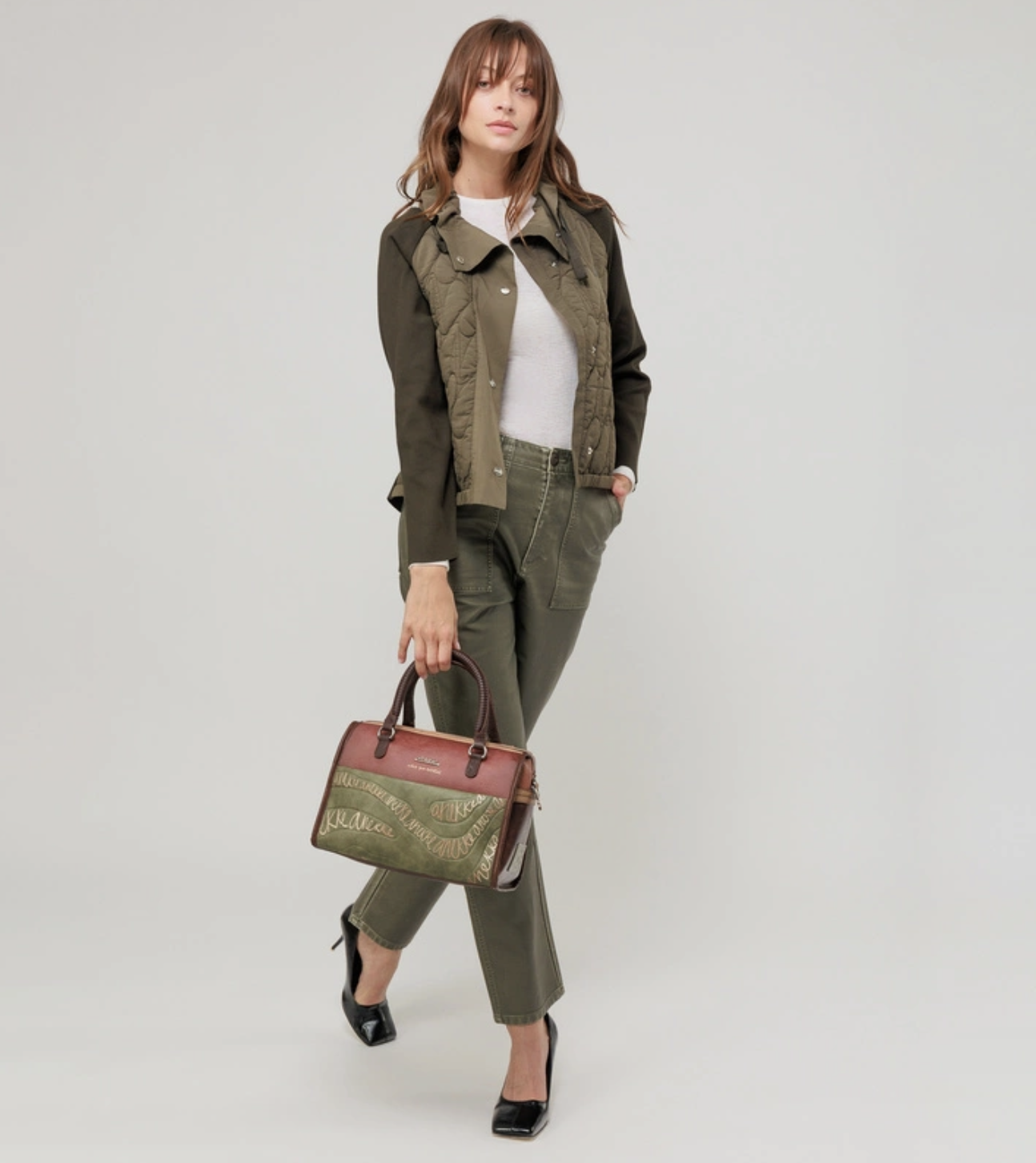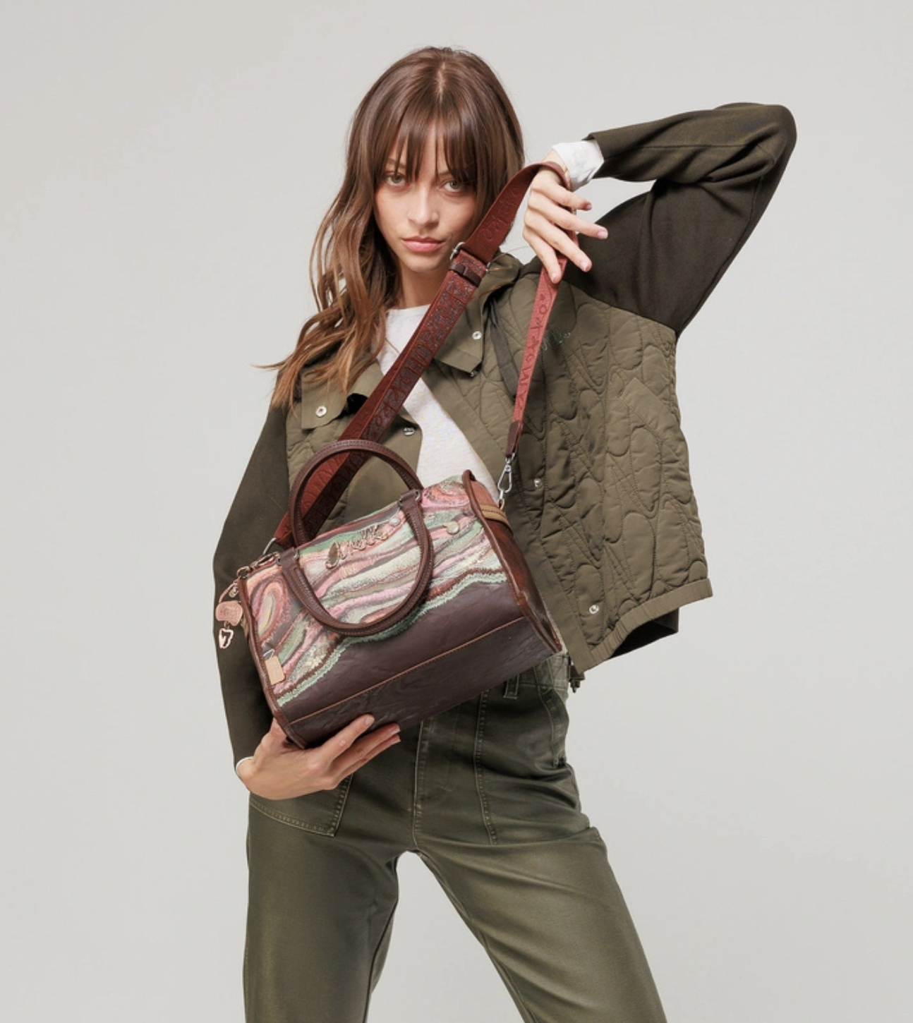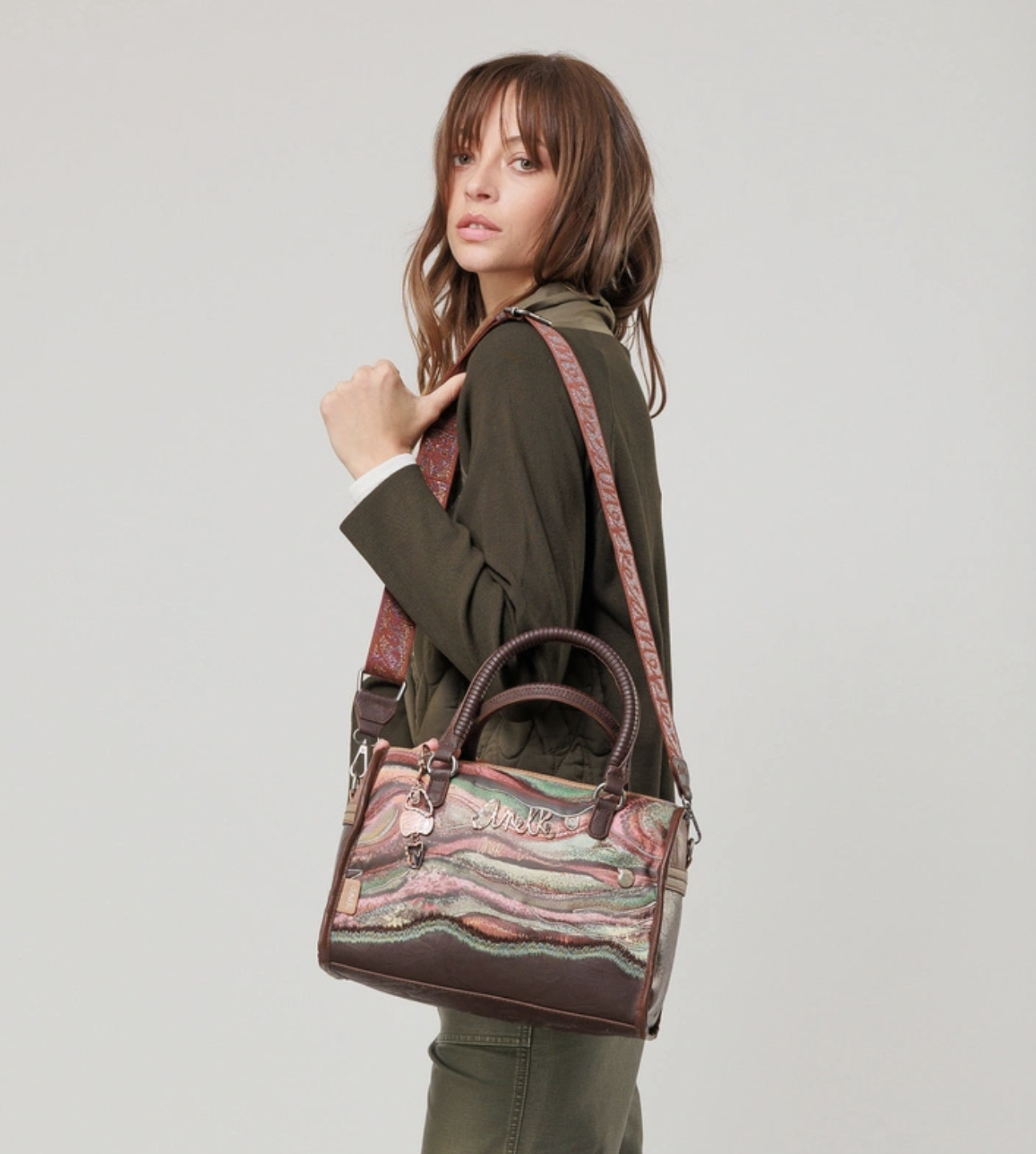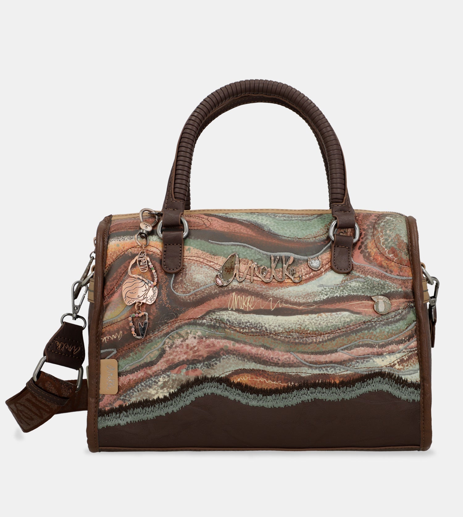 Praktická kabelka do ruky s motívom kolekcie Anekke Core - Outer ktorú zdobí prívesok Anekke. Na zadnej vonkajšej strane je vrecko na zips. Vo vnútri je otvorené vrecko na mobil a kľúče, taktiež vrecko na zips na doklady. Kabelka má zapínanie na zips. Súčasťou balenia je aj popruh ktorý je nastaviteľný podľa potreby. Kabelka je balená v taške Anekke.