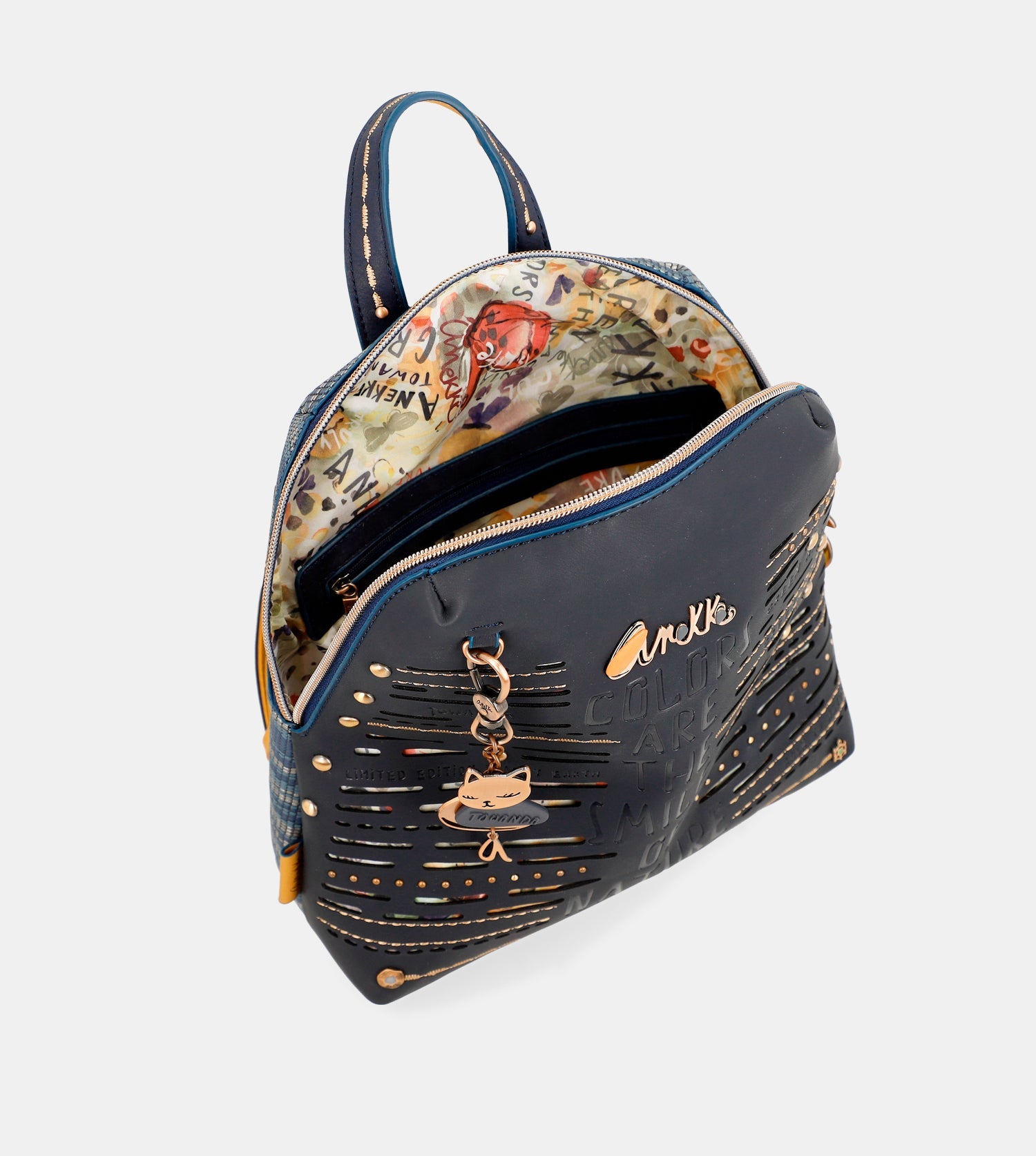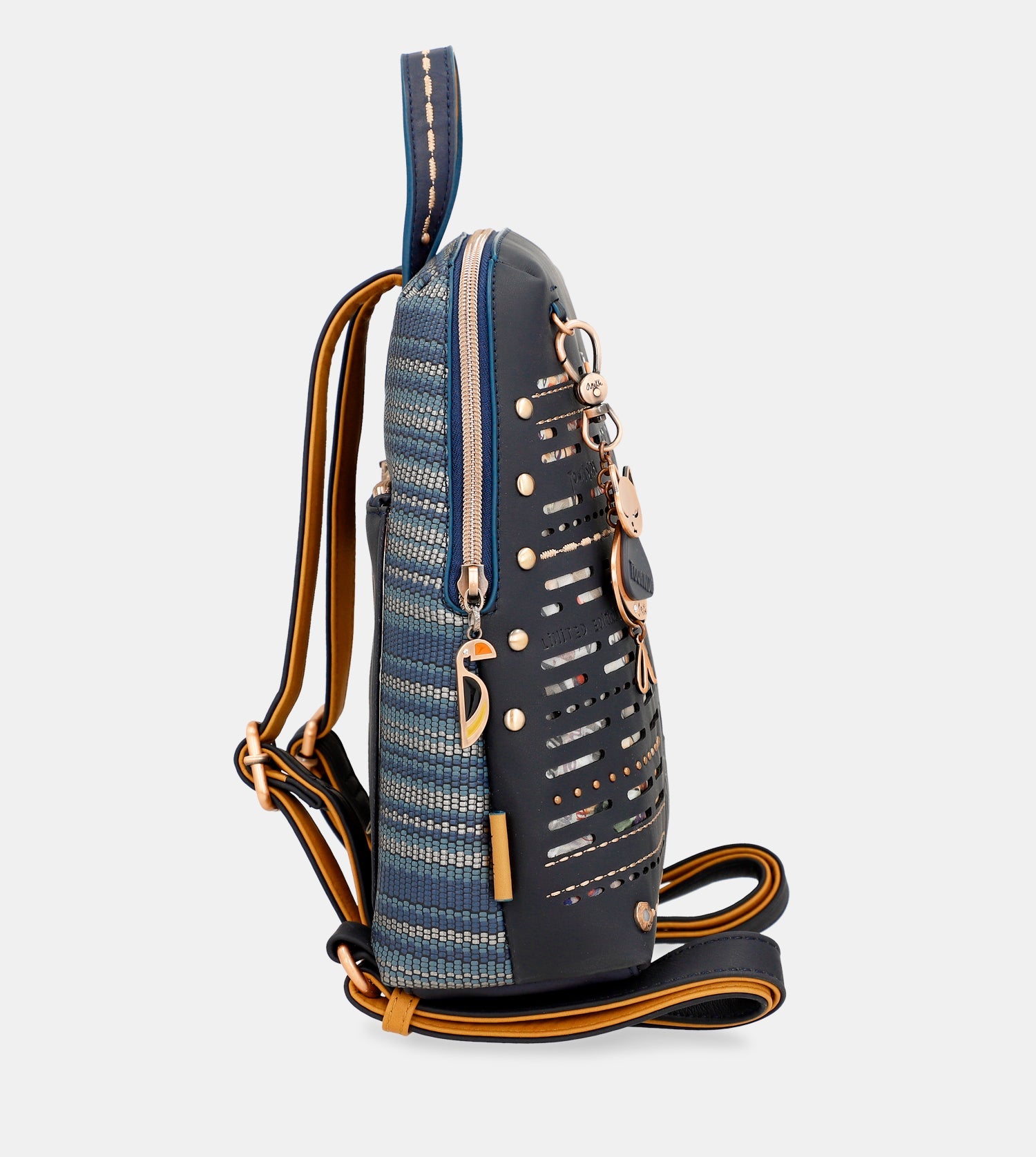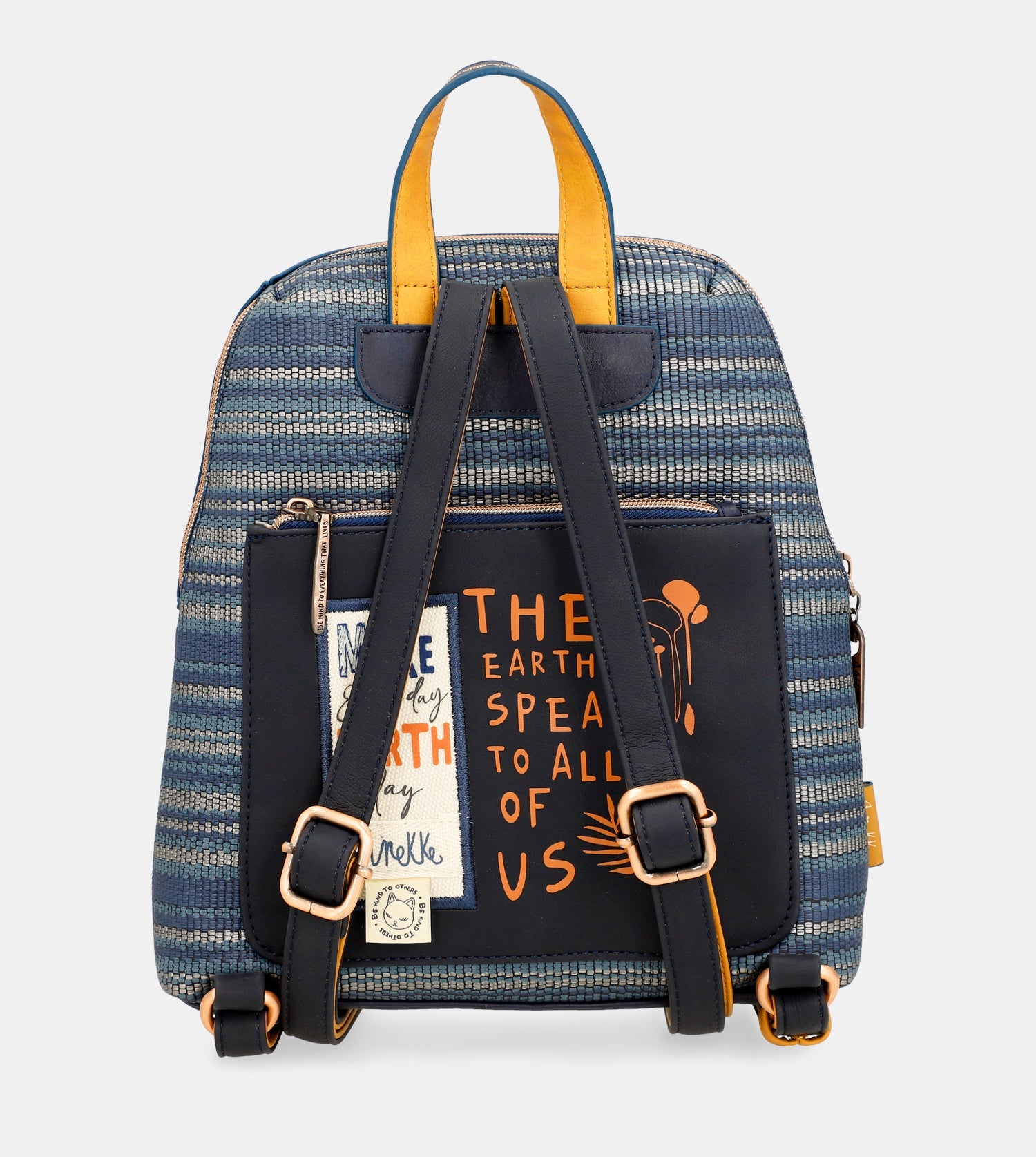 Praktický batoh s motívom kolekcie Amazonia - Pachamama Navy Blue ♻️ ktorý zdobí prívesok Anekke. Na vonkajšej zadnej strane je vrecko na zips. Vo vnútri batohu je otvorené vrecko na mobil a kľúče, taktiež vrecko so zipsom na doklady. Popruhy batohu sú nastaviteľné podľa potreby. Batoh je balený v taške Anekke.