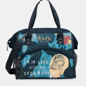 Praktická termo taška na obed s motívom Amazonia - Pachamama Navy Blue španielskej značky Anekke. Na bočnýsh stranách sú vrecká na fľaše. Tašku je možné nosiť v ruke alebo na pleci pomocou pribaleného popruhu ktorý je nastaviteľný podľa potreby.