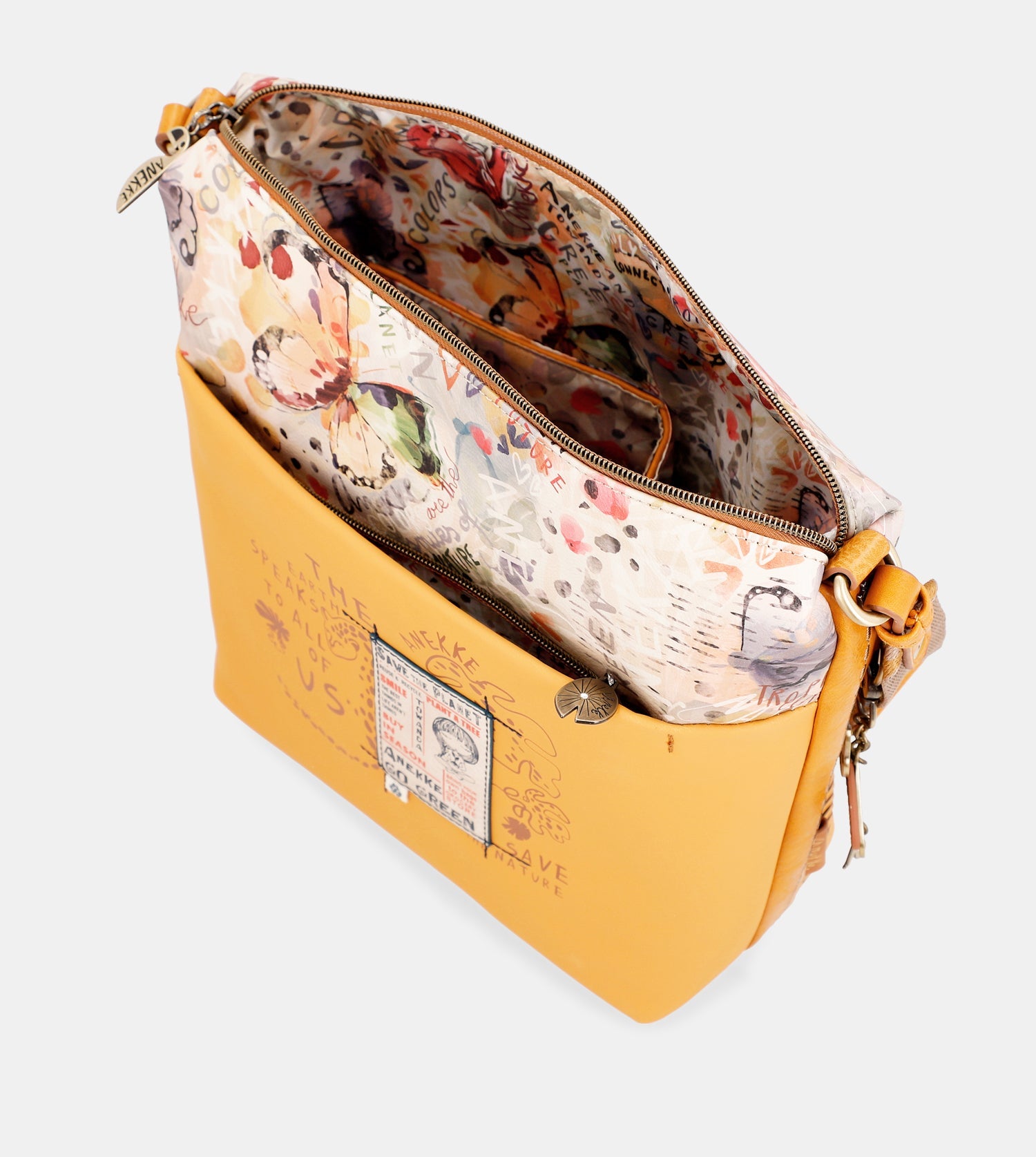 Praktická crossbody kabelka s motívom kolekcie Amazonia - Pachamama Ochre ♻️ do ktorej uložíte všetko potrebné. Vo vnútri je praktické vrecko na zips na drobnosti, vrecko na mobil. Taktiež na vonkajšej zadnej aj prednej strane je vrecko na zips. Popruh nastaviteľný podľa potreby. Kabelka je balené v taške Anekke.