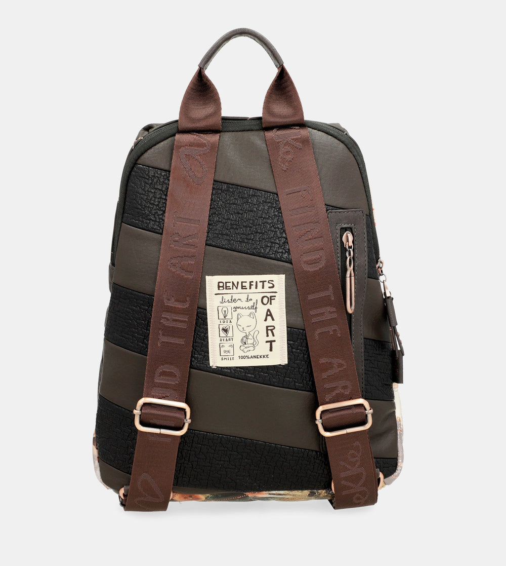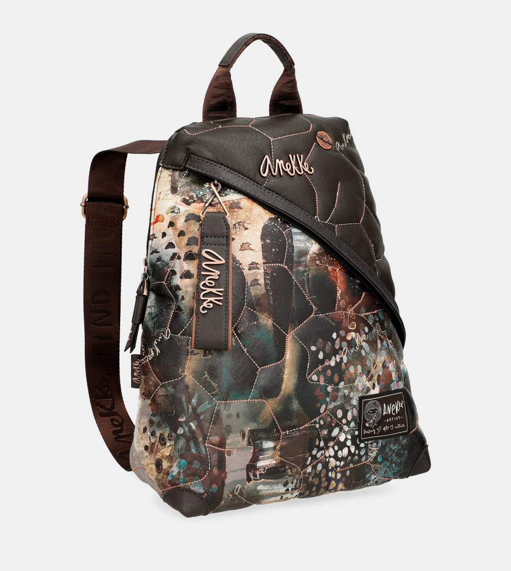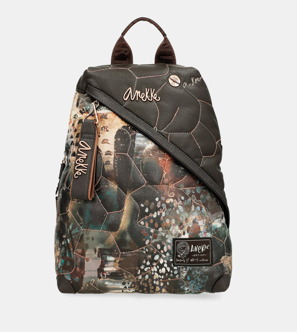 Praktický batoh s motívom kolekcie Shōen - Padded. Batoh zdobí prívesok Anekke. Na vonkajšej zadnej strane je vrecko na zips, na prednej strane je menšie vrecko na drobnosti. Vo vnútri batohu je otvorené vrecko na mobil a kľúče, taktiež vrecko so zipsom na doklady.Popruhy batohu sú nastaviteľné podľa potreby. Batoh je balený v taške Anekke.