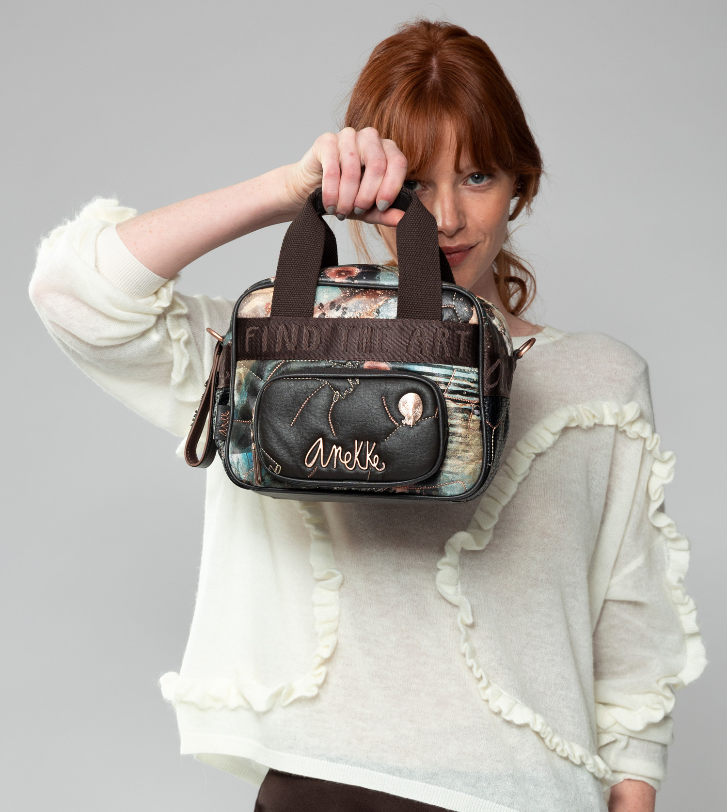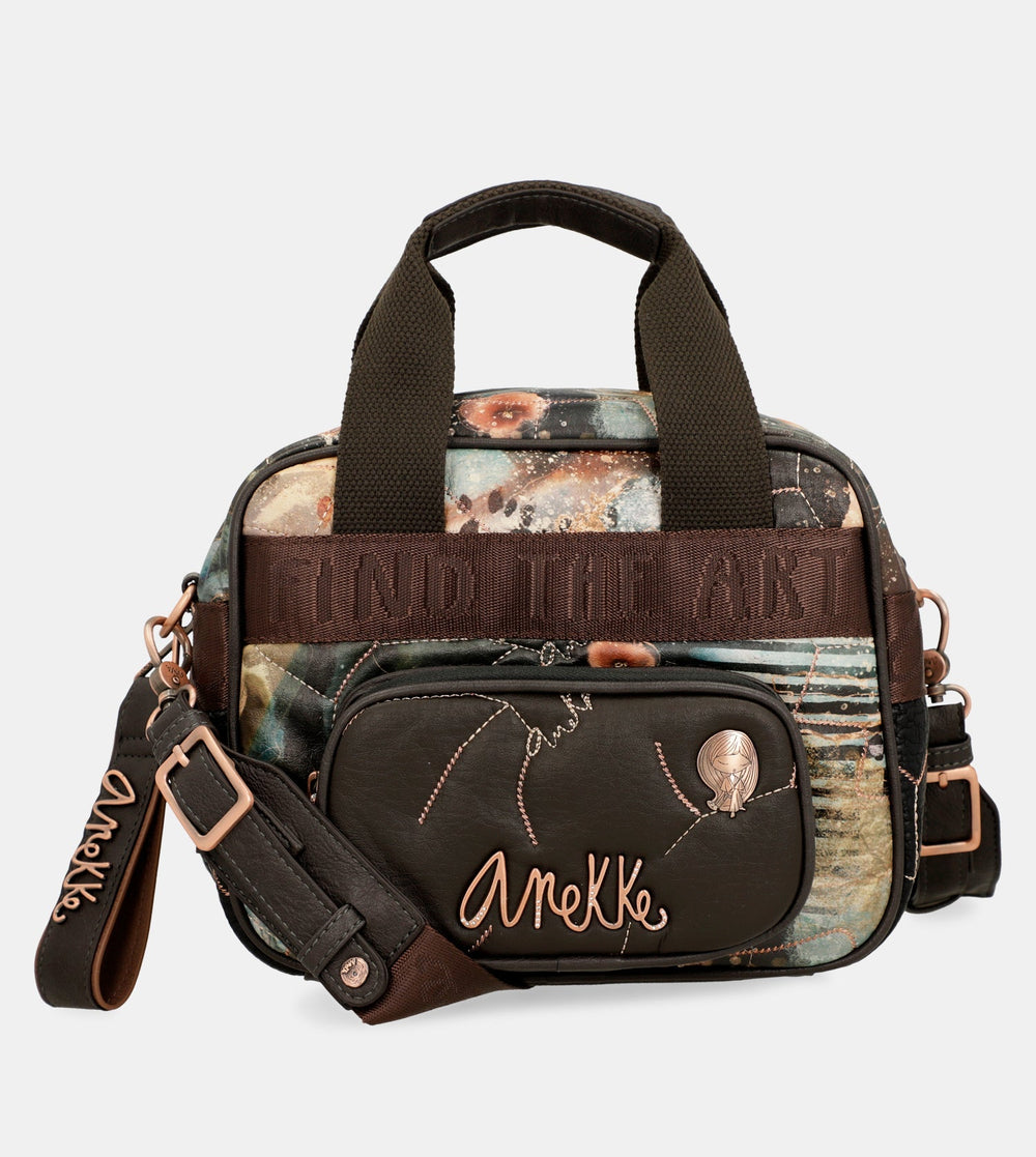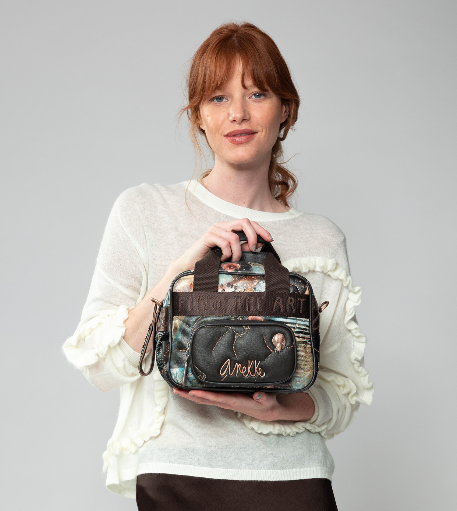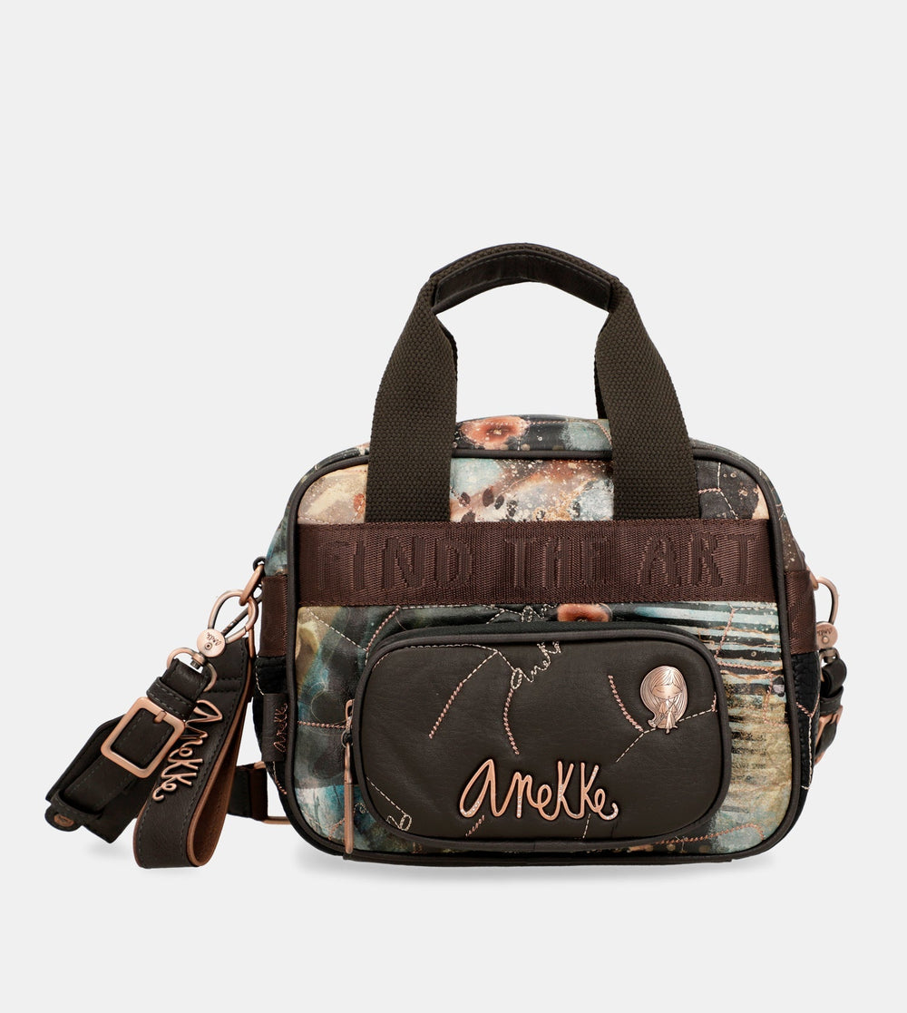Praktická kabelka do ruky s motívom kolekcie Shōen Padded. Na prednej aj zadnej vonkajšej časti je menšie vrecko na drobnosti. Vo vnútri je otvorené vrecko na mobil a kľúče, taktiež vrecko na zips na doklady. Kabelka má zapínanie na zips a súčastou balenia je aj popruh nastaviteľný podľa potreby.Kabelka je balená v taške Anekke.