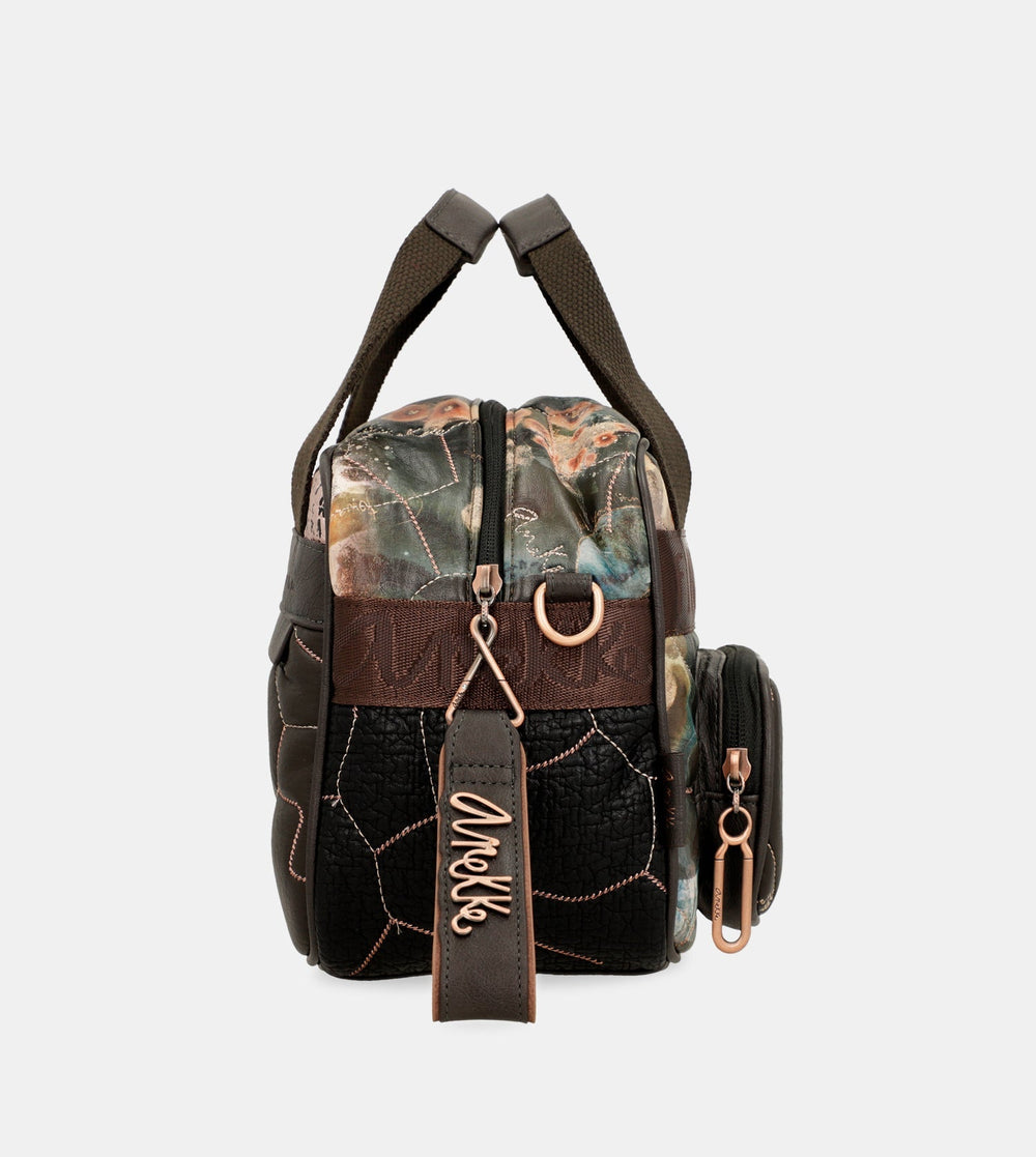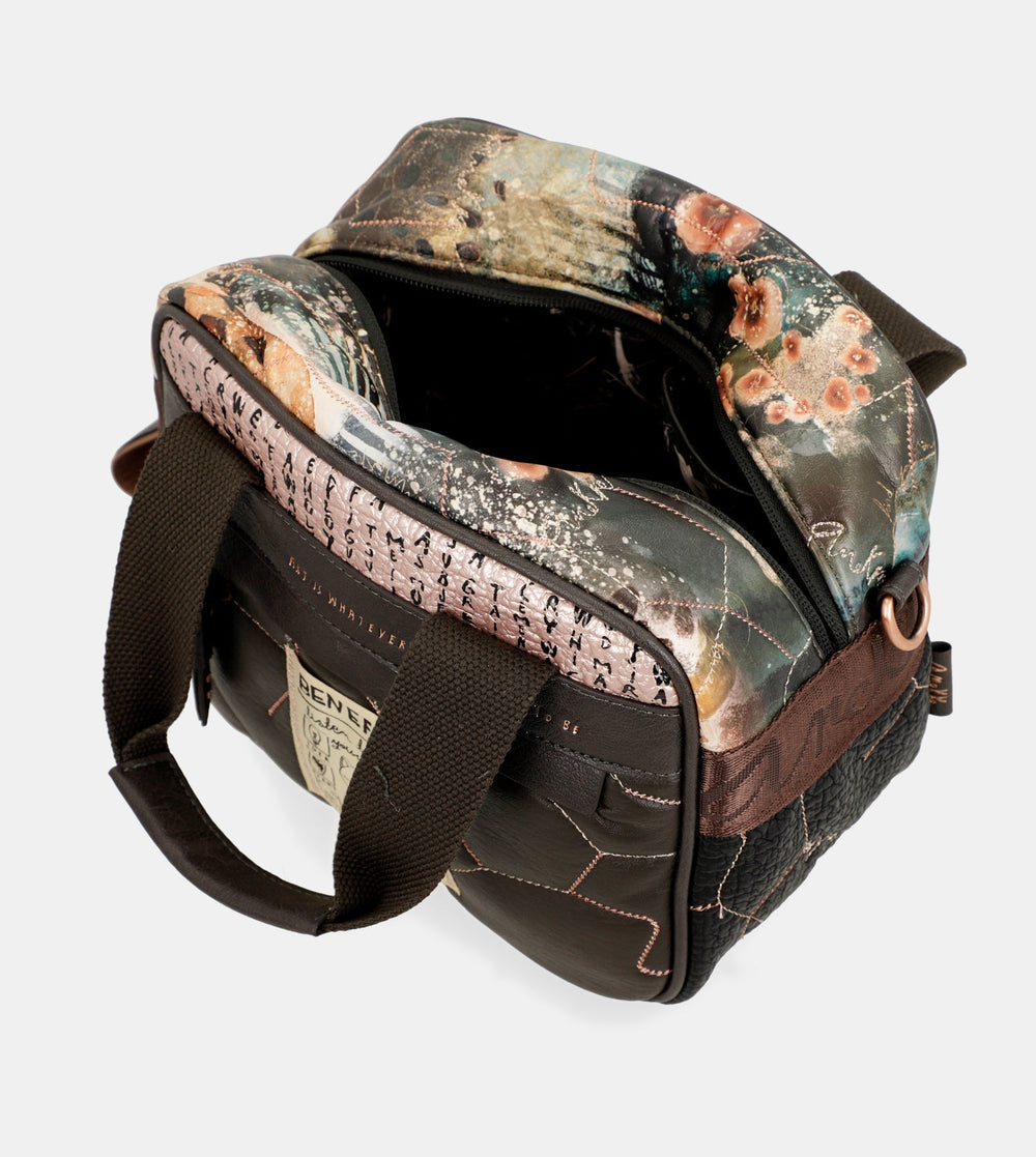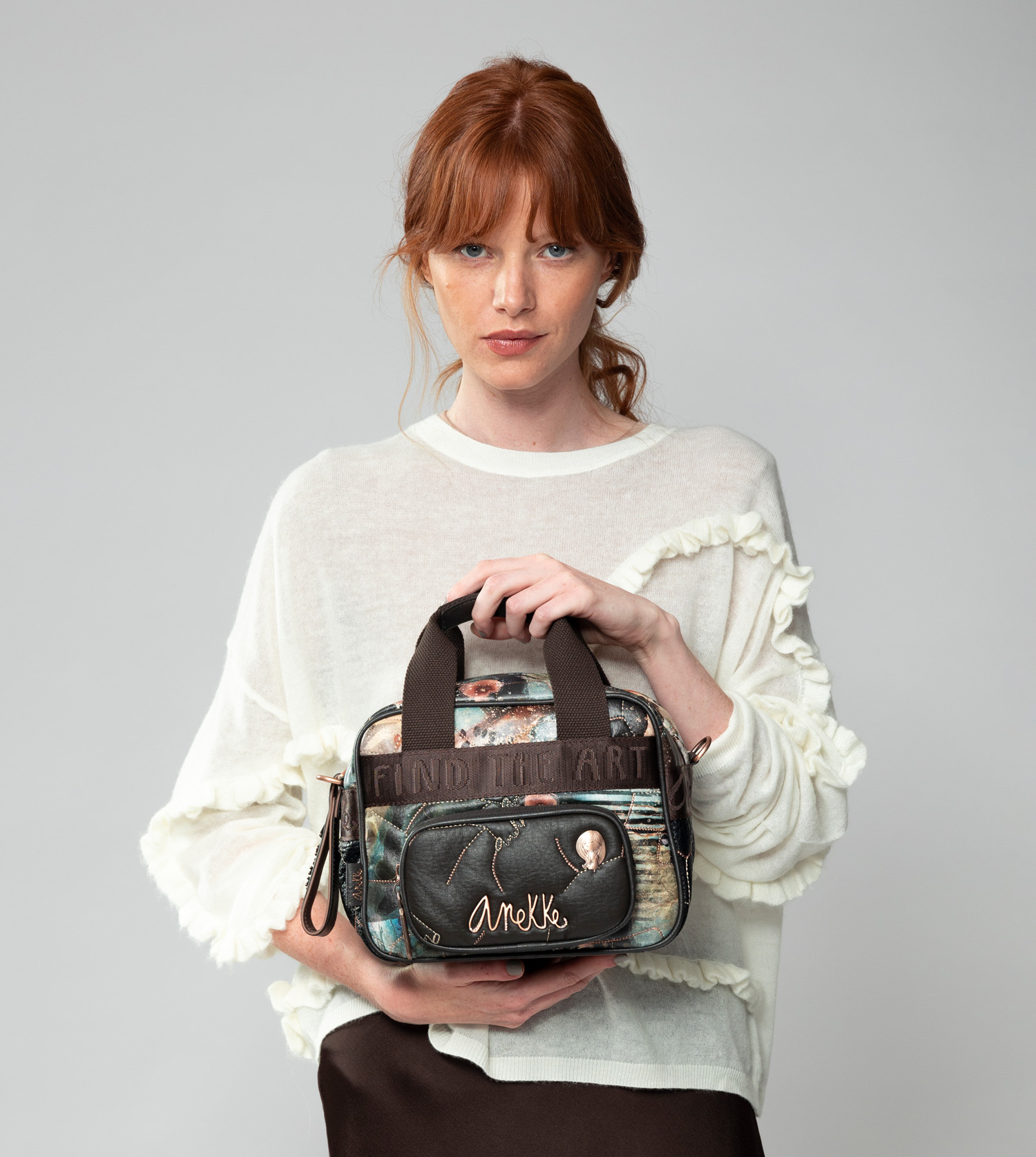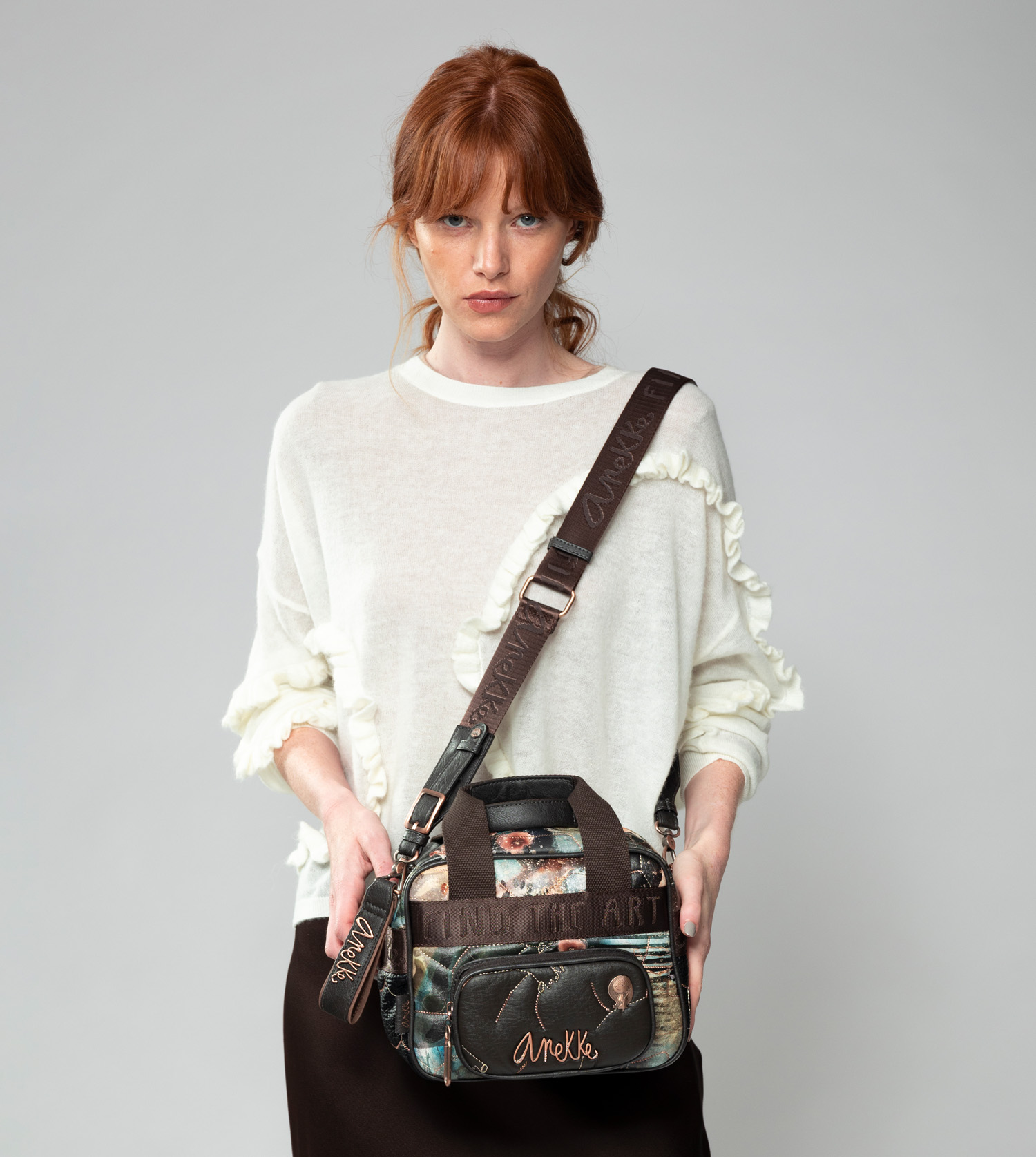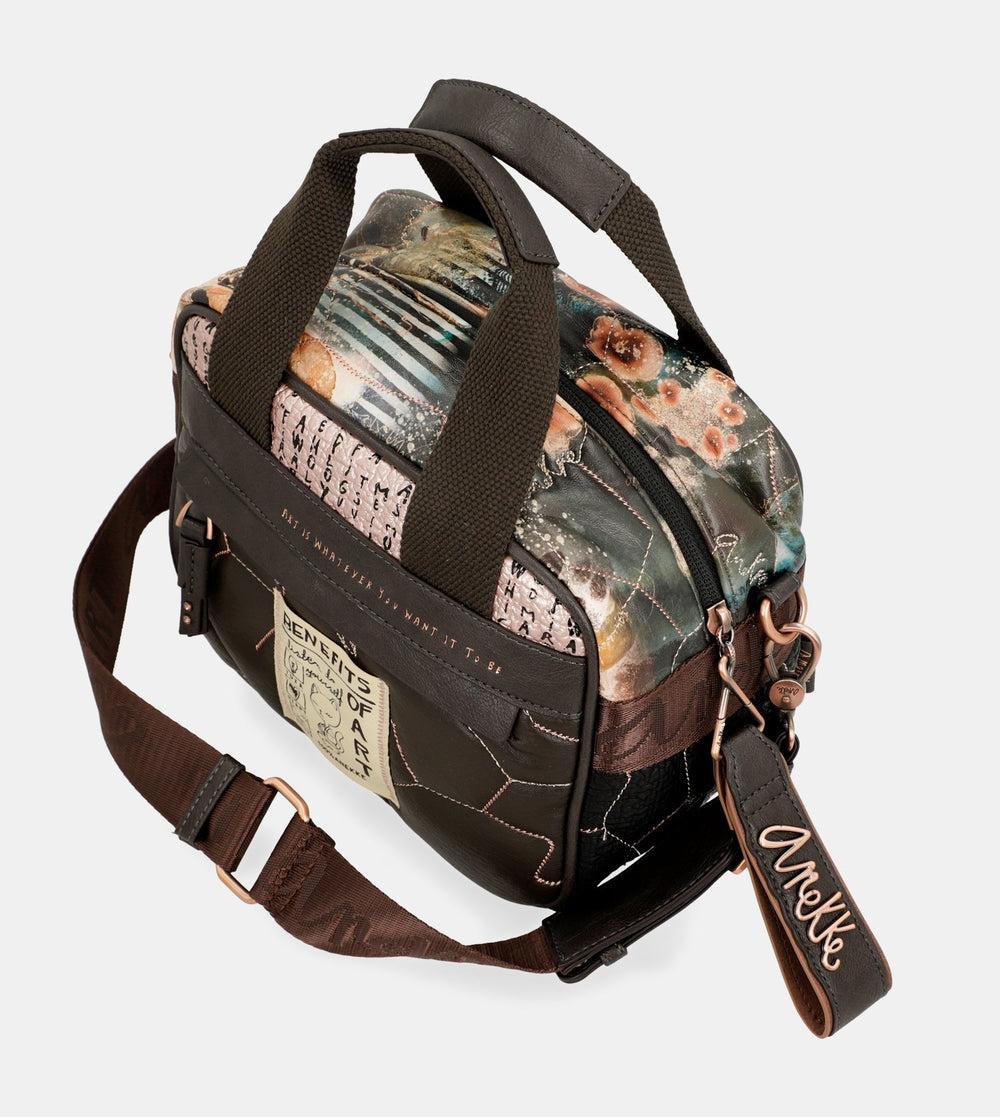 Praktická kabelka do ruky s motívom kolekcie Shōen Padded. Na prednej aj zadnej vonkajšej časti je menšie vrecko na drobnosti. Vo vnútri je otvorené vrecko na mobil a kľúče, taktiež vrecko na zips na doklady. Kabelka má zapínanie na zips a súčastou balenia je aj popruh nastaviteľný podľa potreby.Kabelka je balená v taške Anekke.