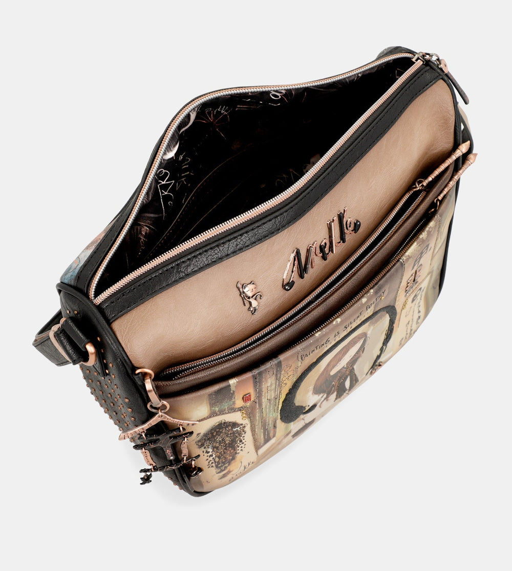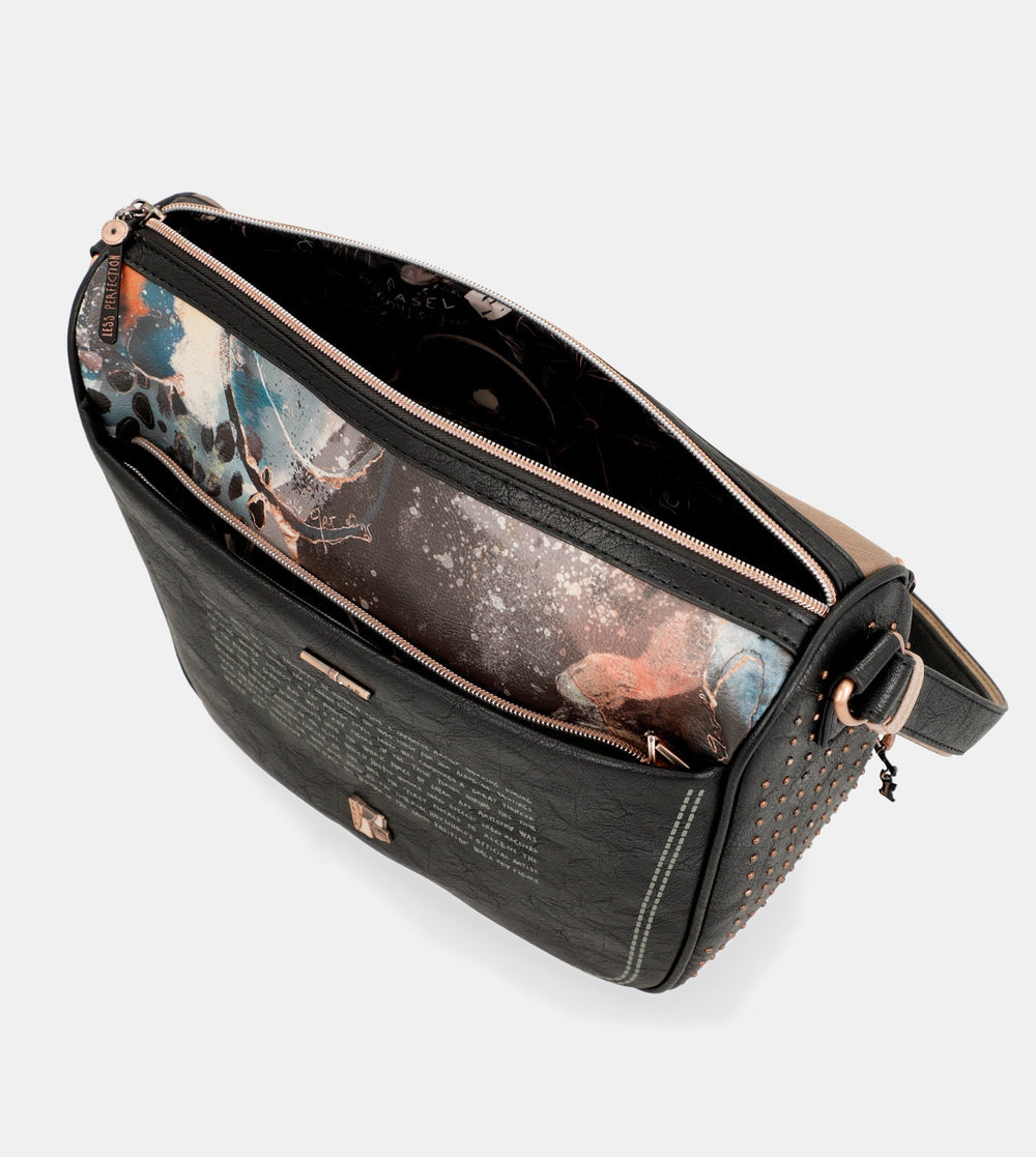 Praktická crossbody kabelka ideálna na výlety s motívom kolekcie Shōen Black do ktorej uložíte všetko potrebné. Vo vnútri je praktické vrecko na zips na drobnosti, vrecko na mobil. Taktiež na vonkajšej zadnej strane je vrecko na zips.Kabelka je balené v taške Anekke.