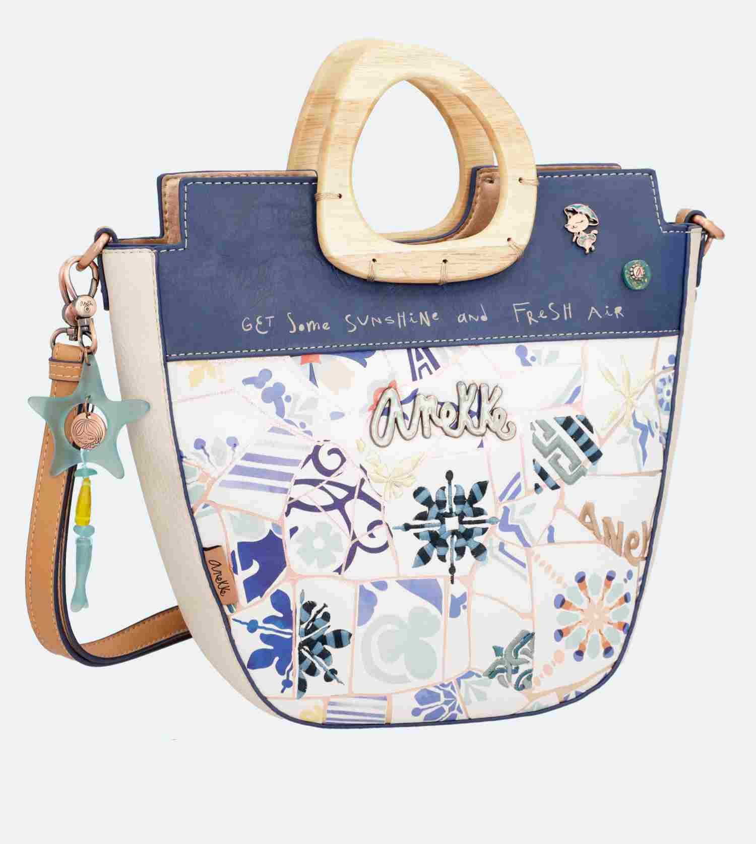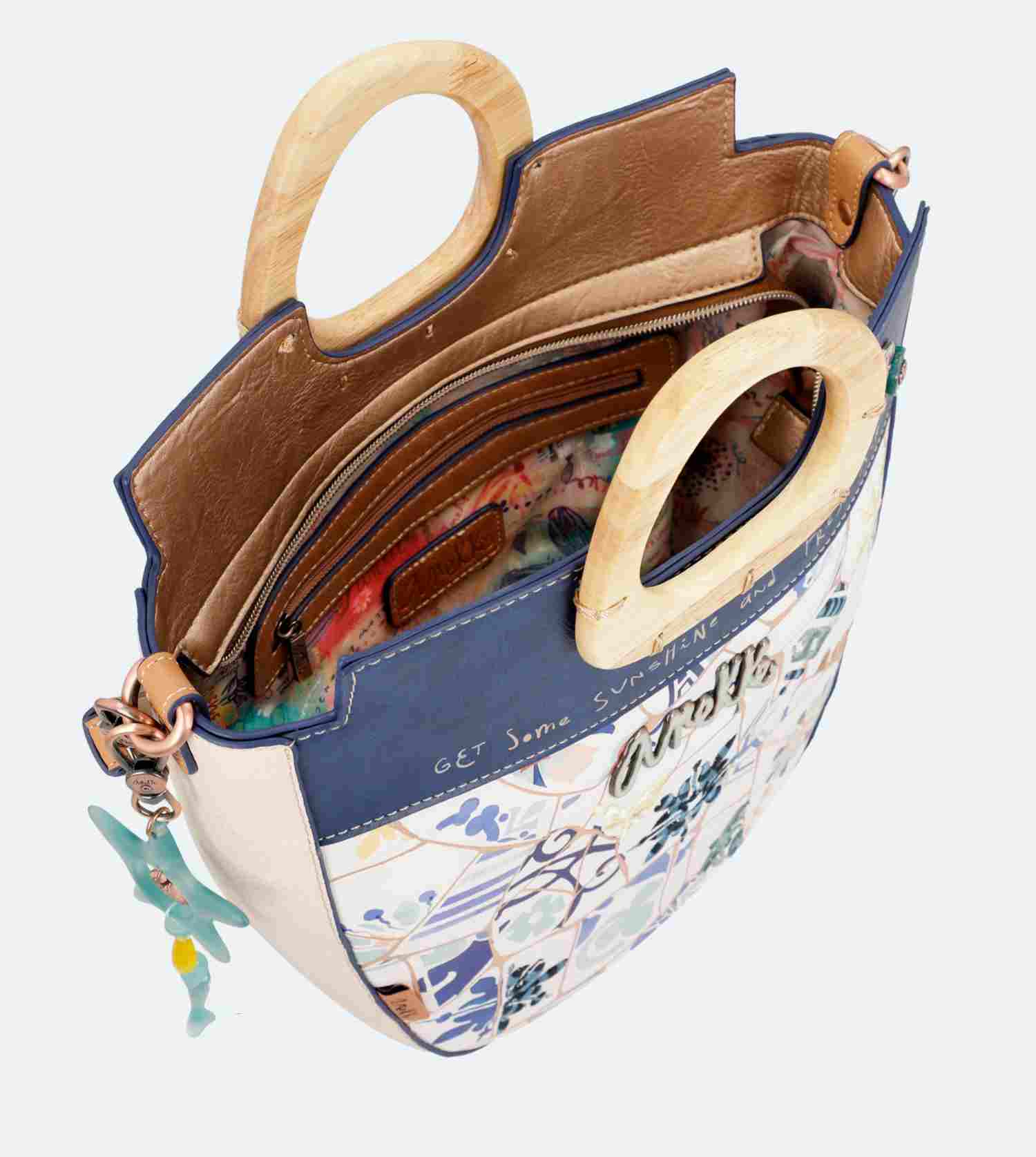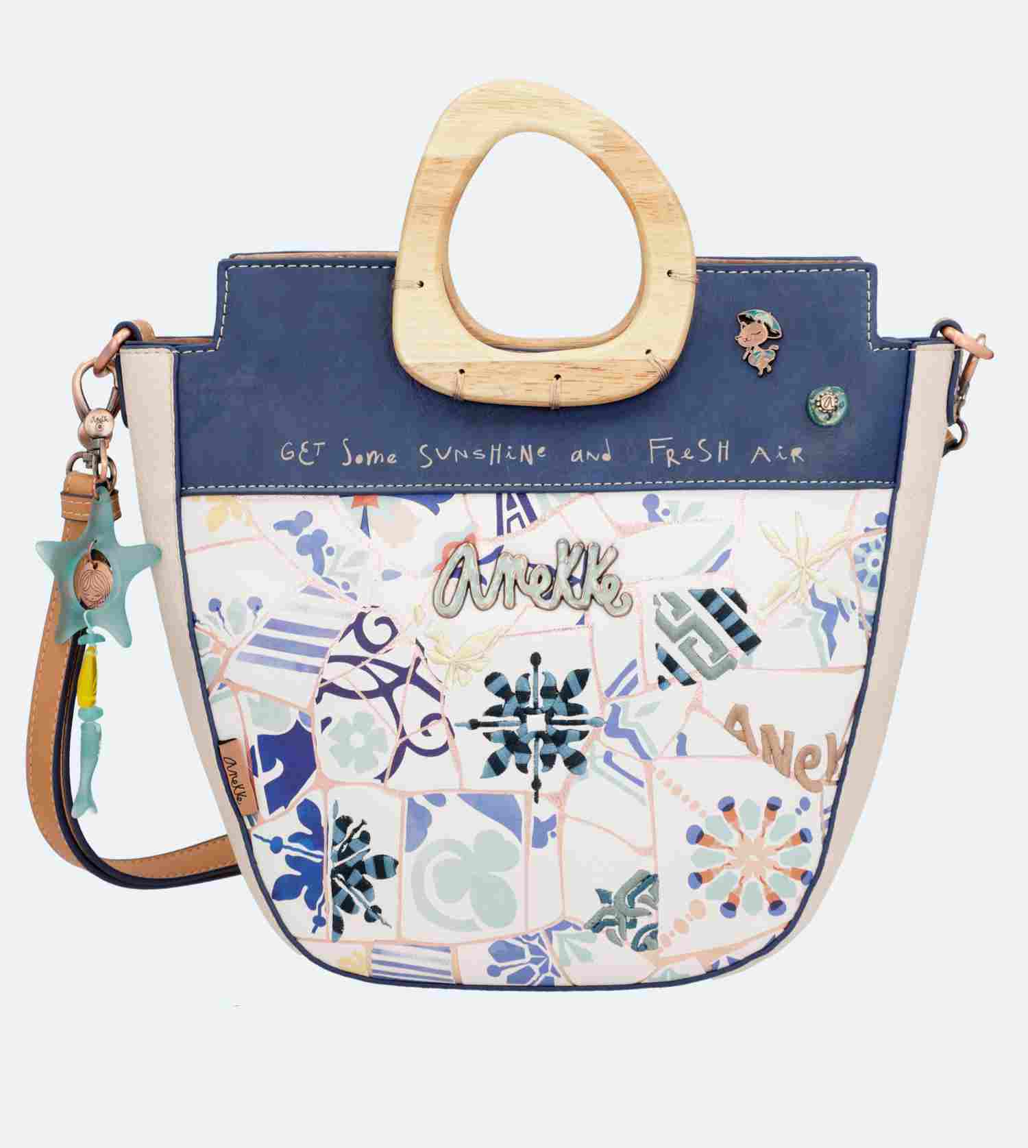Výnimočná kabelka s motívom Mediterranean - Sunrise s ozdobným príveskom Anekke. Na vonkajšej zadnej strane je vrecko na uloženie drobností. Vo vnútornej časti sú otvorené vrecká na mobil a kľúče, taktiež vrecko so zipsom na doklady.Uzatváranie kabelky je na zips. Súčastou balenia je aj popruh ktorý je nastaviteľný podľa potreby. Kabelka je balená v taške Anekke.