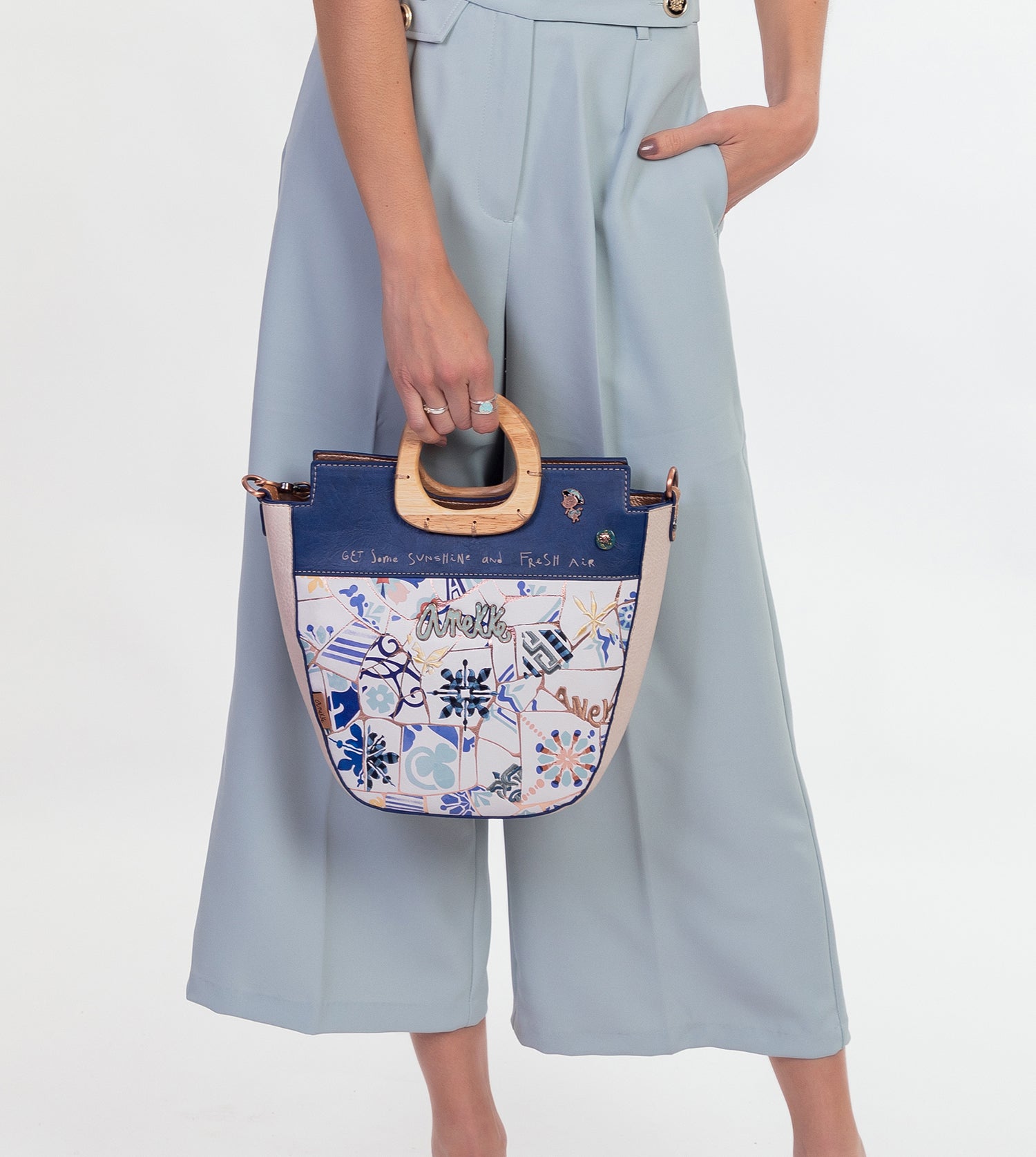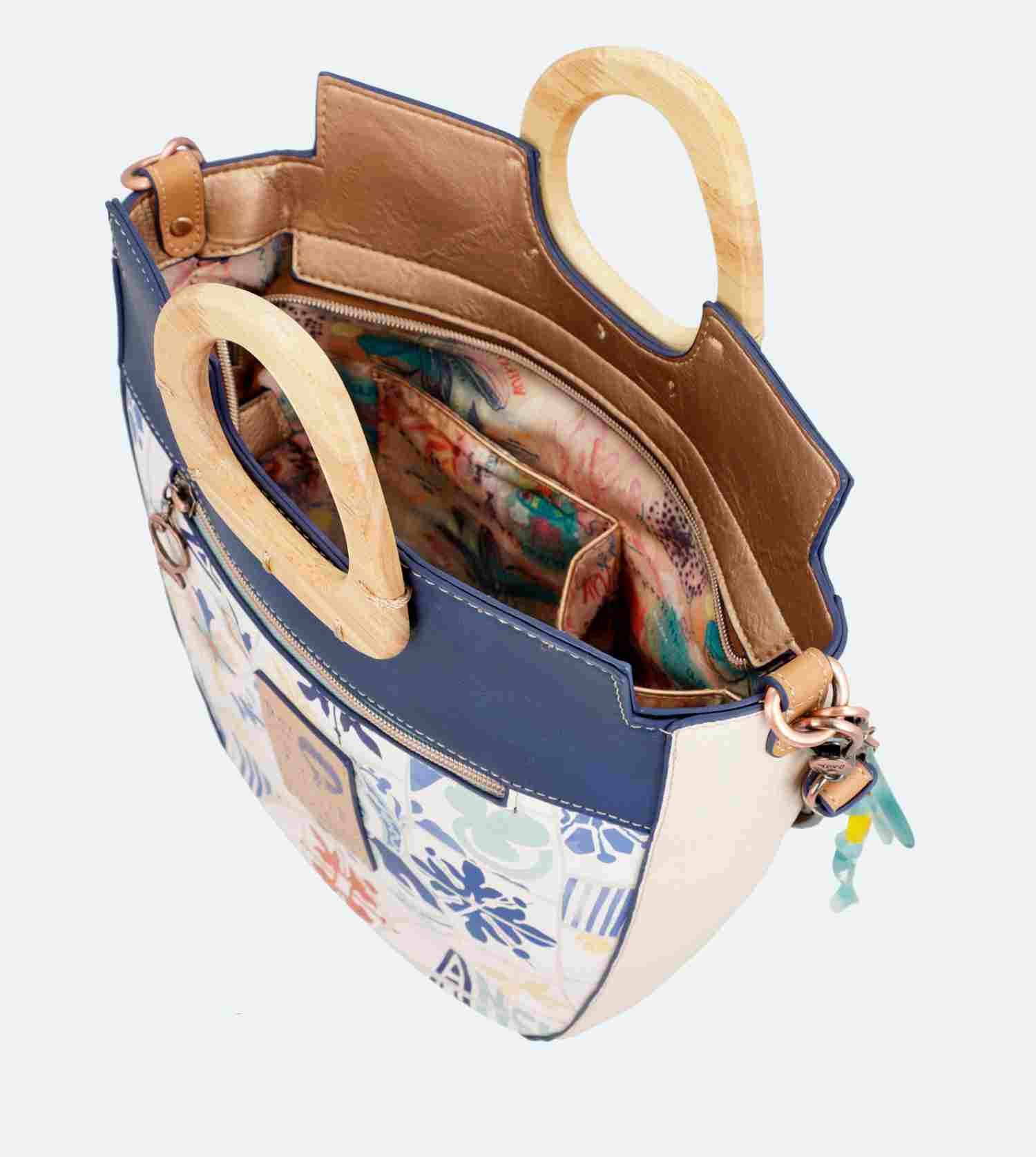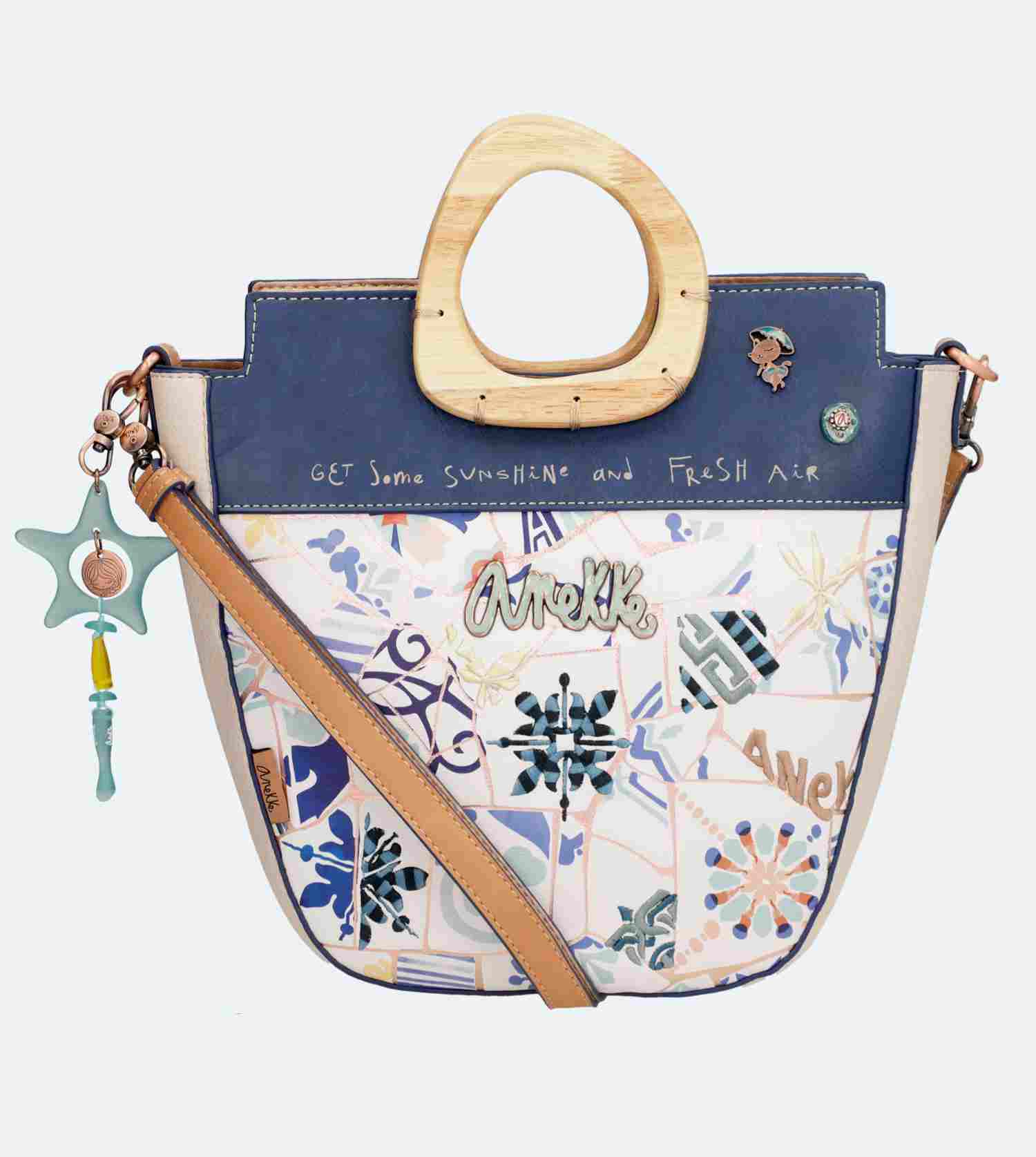 Výnimočná kabelka s motívom Mediterranean - Sunrise s ozdobným príveskom Anekke. Na vonkajšej zadnej strane je vrecko na uloženie drobností. Vo vnútornej časti sú otvorené vrecká na mobil a kľúče, taktiež vrecko so zipsom na doklady.Uzatváranie kabelky je na zips. Súčastou balenia je aj popruh ktorý je nastaviteľný podľa potreby. Kabelka je balená v taške Anekke.
