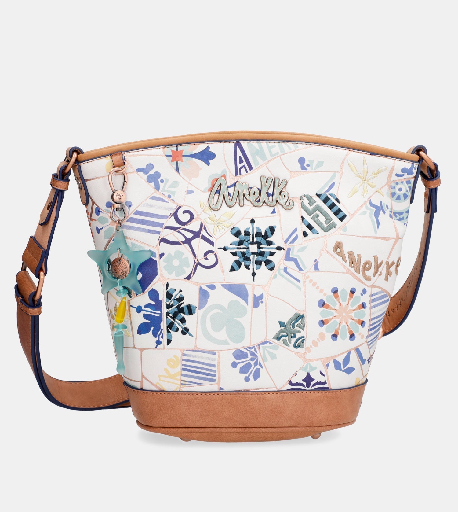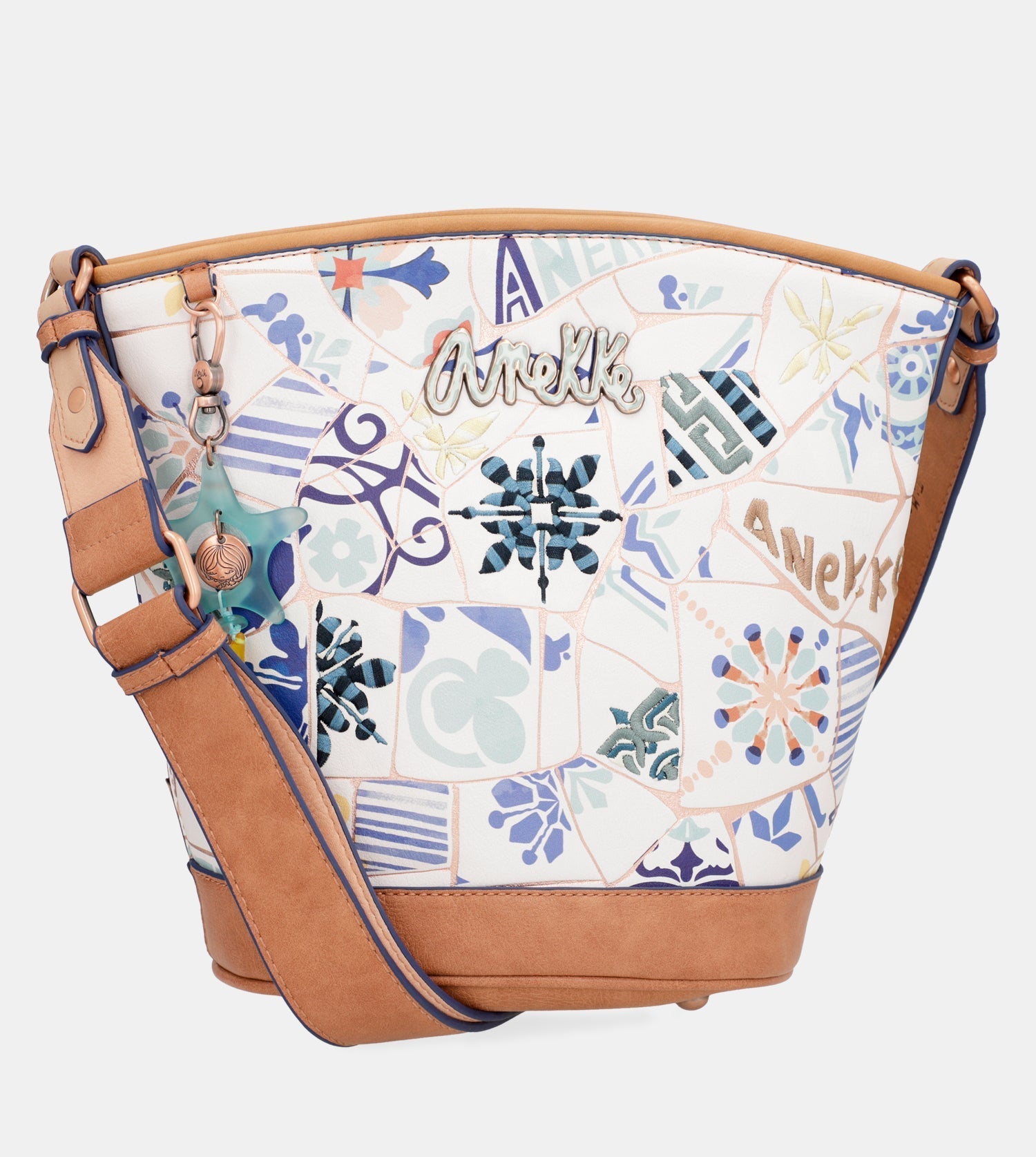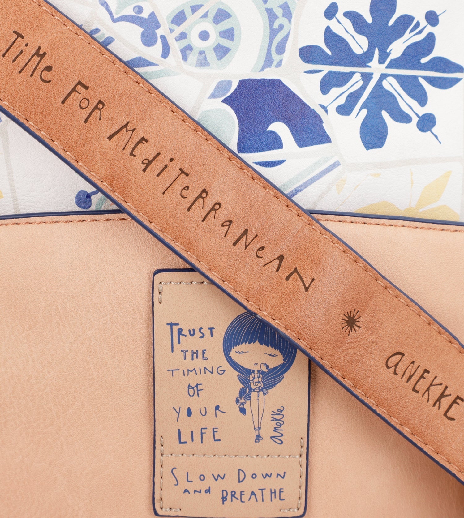 Praktická kabelka na plece ideálna na výlety s motívom Mediterranean - Sunrise do ktorej uložíte všetko potrebné. Vo vnútri je praktické vrecko na zips na drobnosti, vrecko na mobil. Taktiež na vonkajšej zadnej strane je vrecko na zips.Kabelka je balené v taške Anekke.