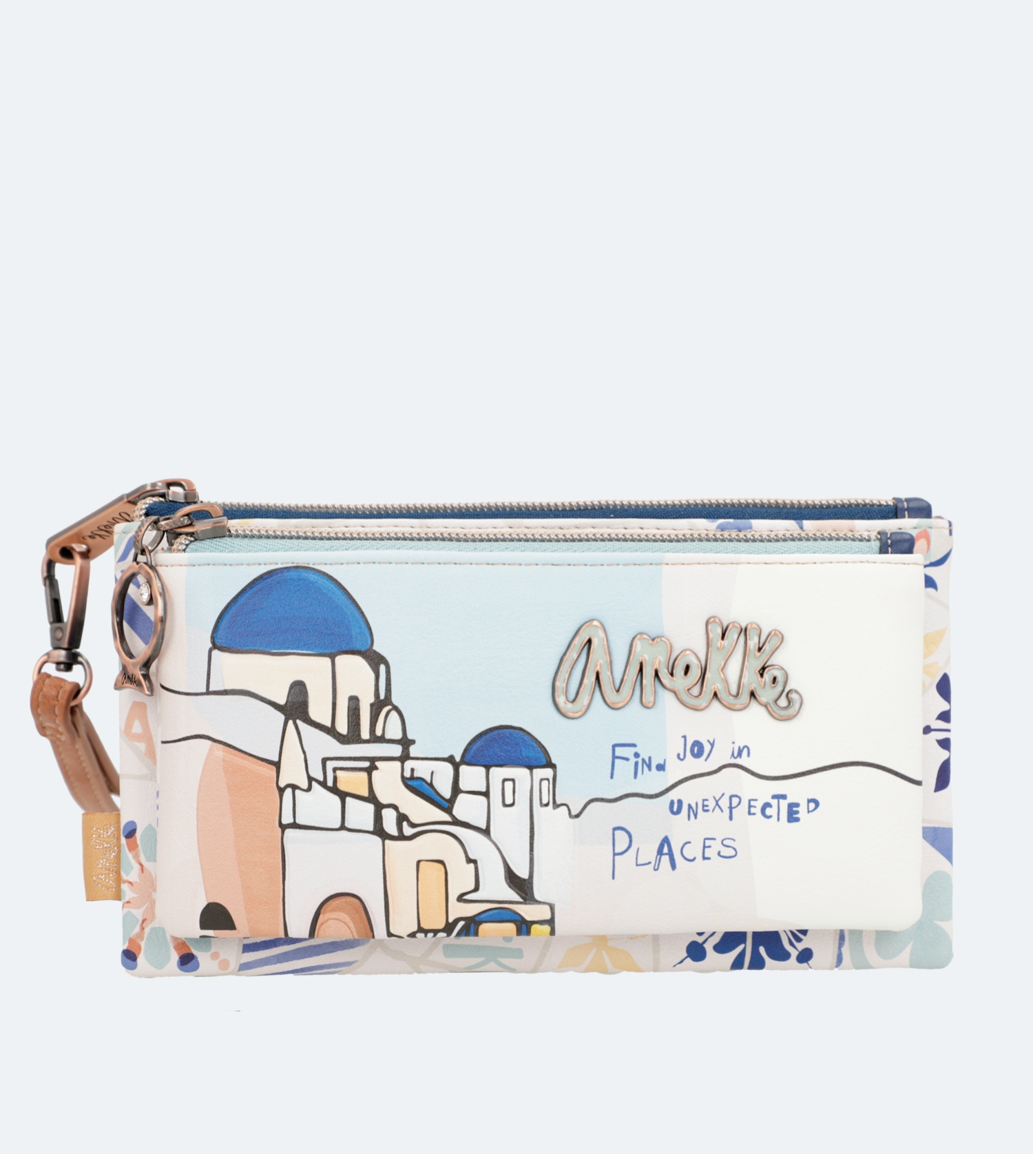 Praktické puzdro s motívom kolekcie Mediterranean - Sunrise ktoré má dve oddelené priehradky uzatvárateľné na zips na uloženie všetkých potrebností. Vhodné aj ako kozmetická taštička.Balené vo vrecku Anekke.