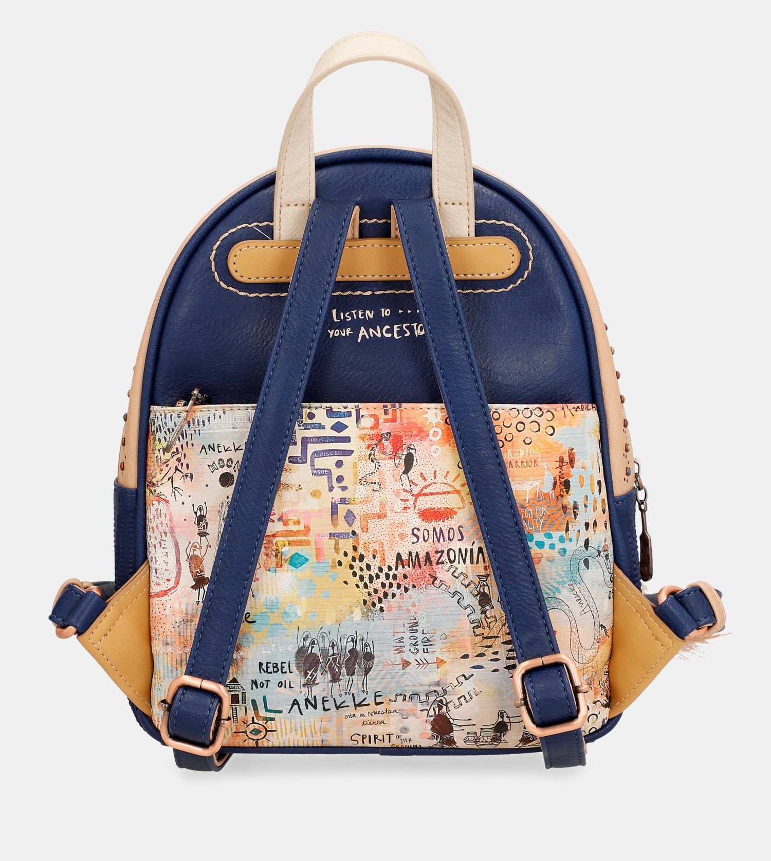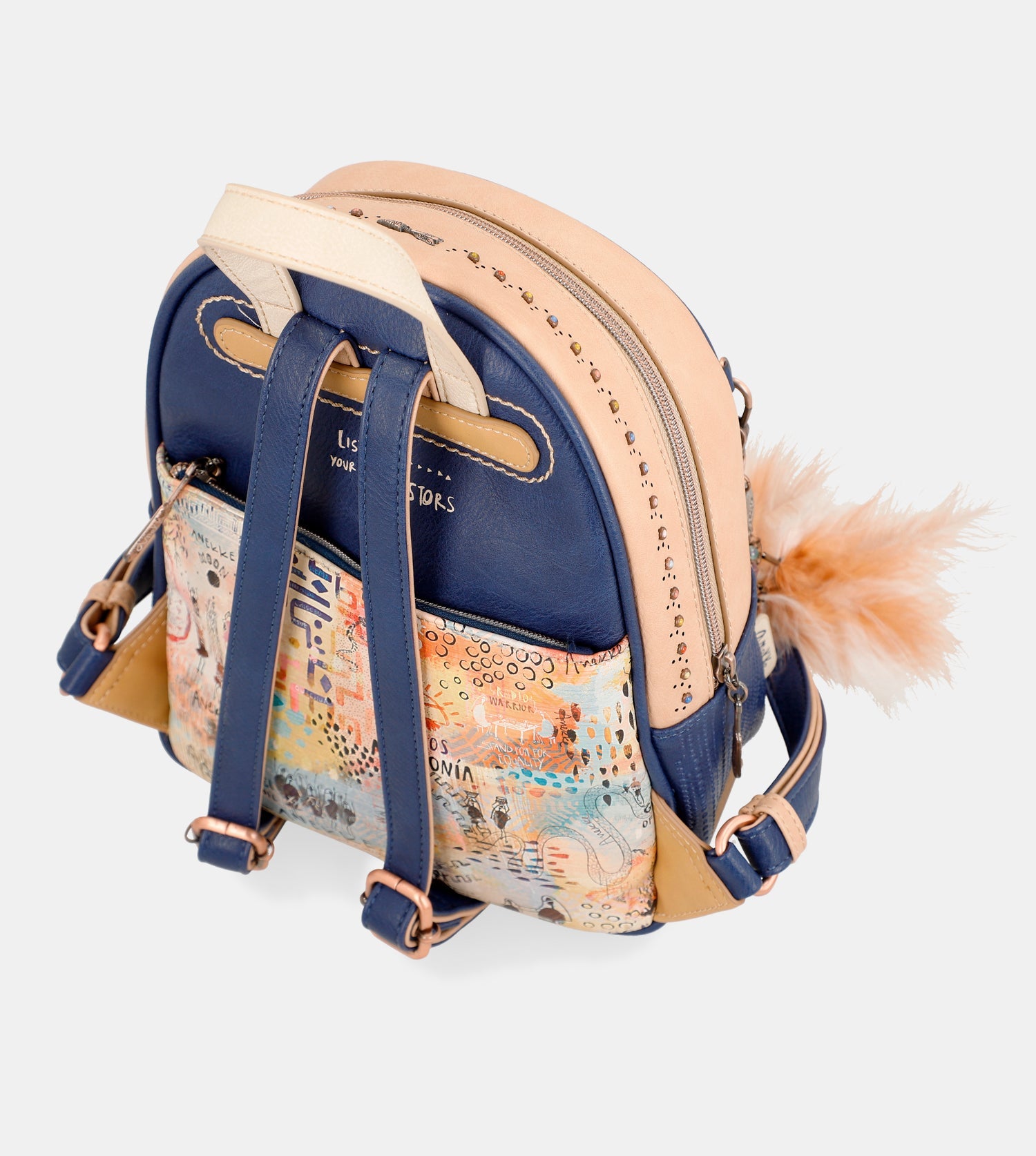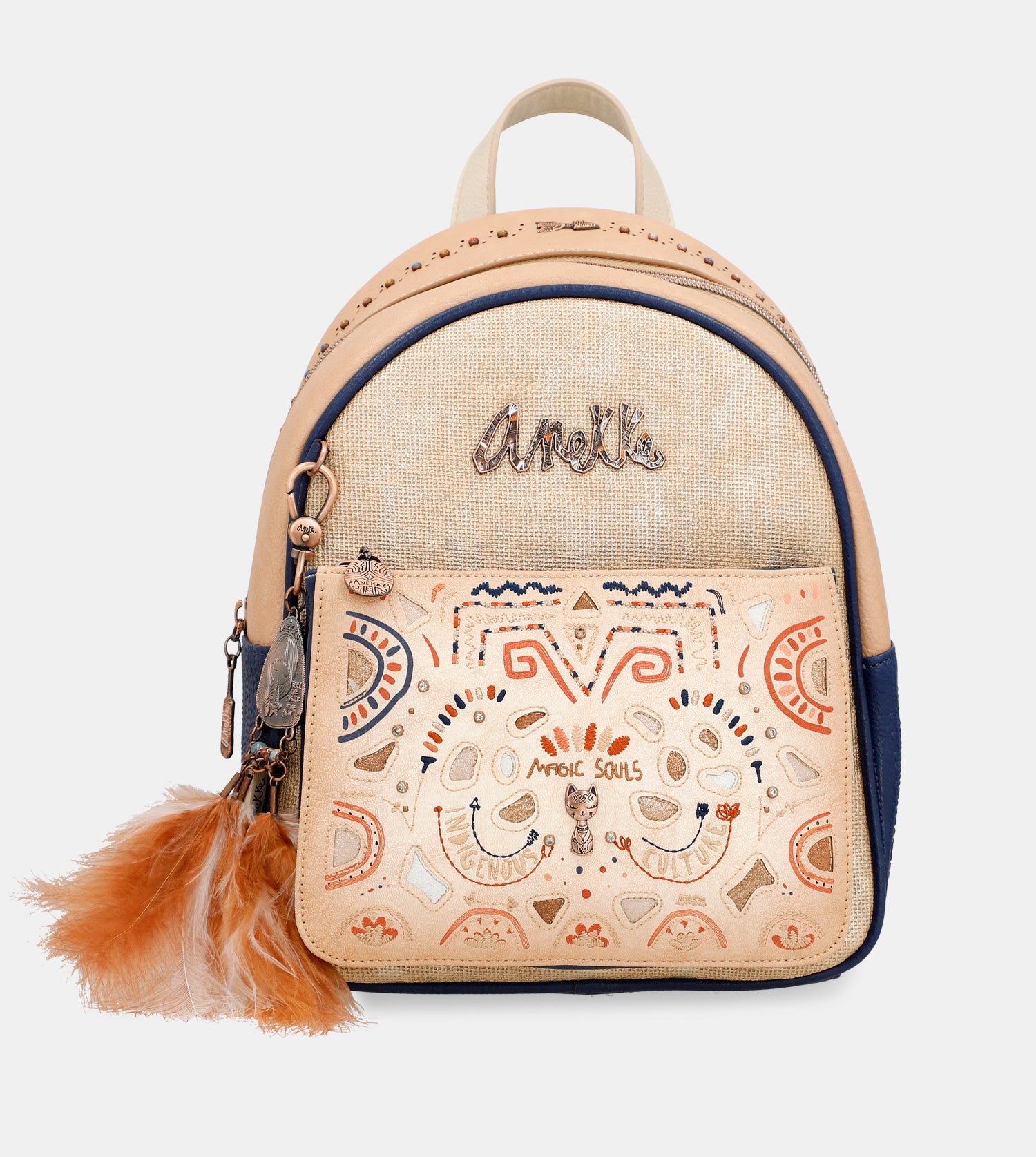 Praktický batoh s motívom kolekcie Menire - Tribe. Na vonkajšej zadnej aj prednej strane je vrecko na zips. Vo vnútri kabelky je otvorené vrecko na mobil a kľúče, taktiež vrecko so zipsom na doklady. Popruhy batohu sú nastaviteľné podľa potreby. Batoh je balený v taške Anekke.