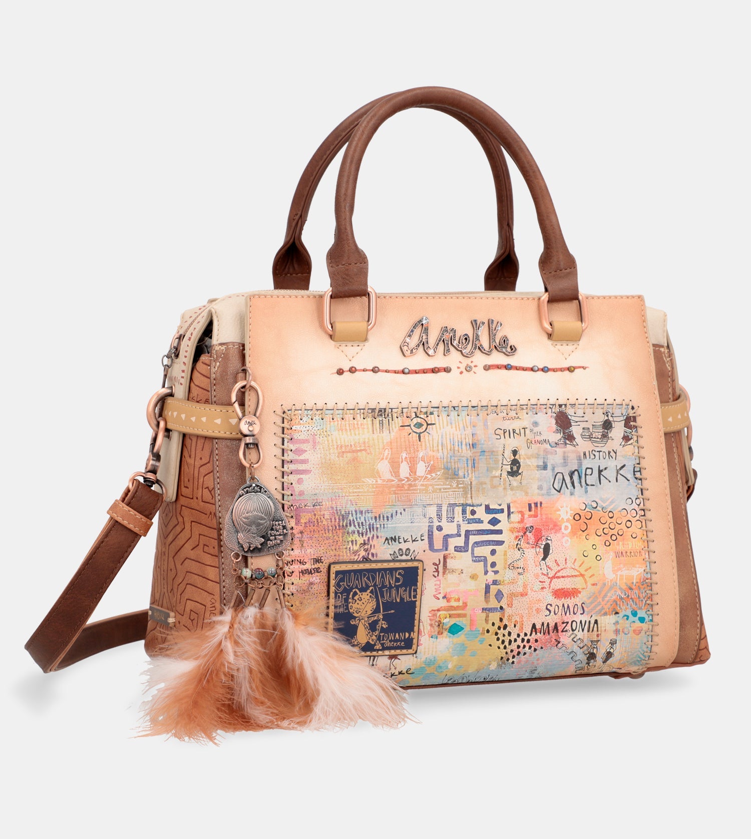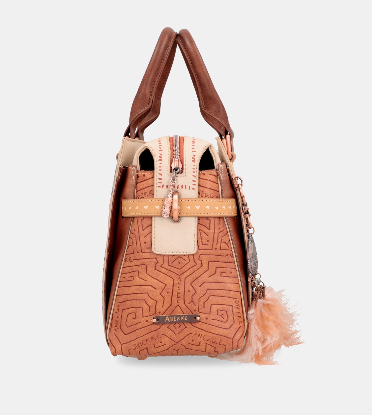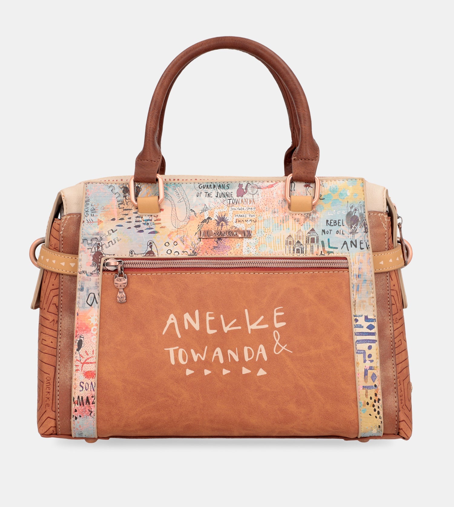 Praktická kabelka do ruky s motívom kolekcie Menire - Tribe ktorú zdobí prívesok Anekke. Na zadnej vonkajšej strane je vrecko na zips. Vo vnútri je otvorené vrecko na mobil a kľúče, taktiež vrecko na zips na doklady. Kabelka má zapínanie na zips. Súčasťou balenia je aj popruh ktorý je nastaviteľný podľa potreby. Kabelka je balená v taške Anekke.