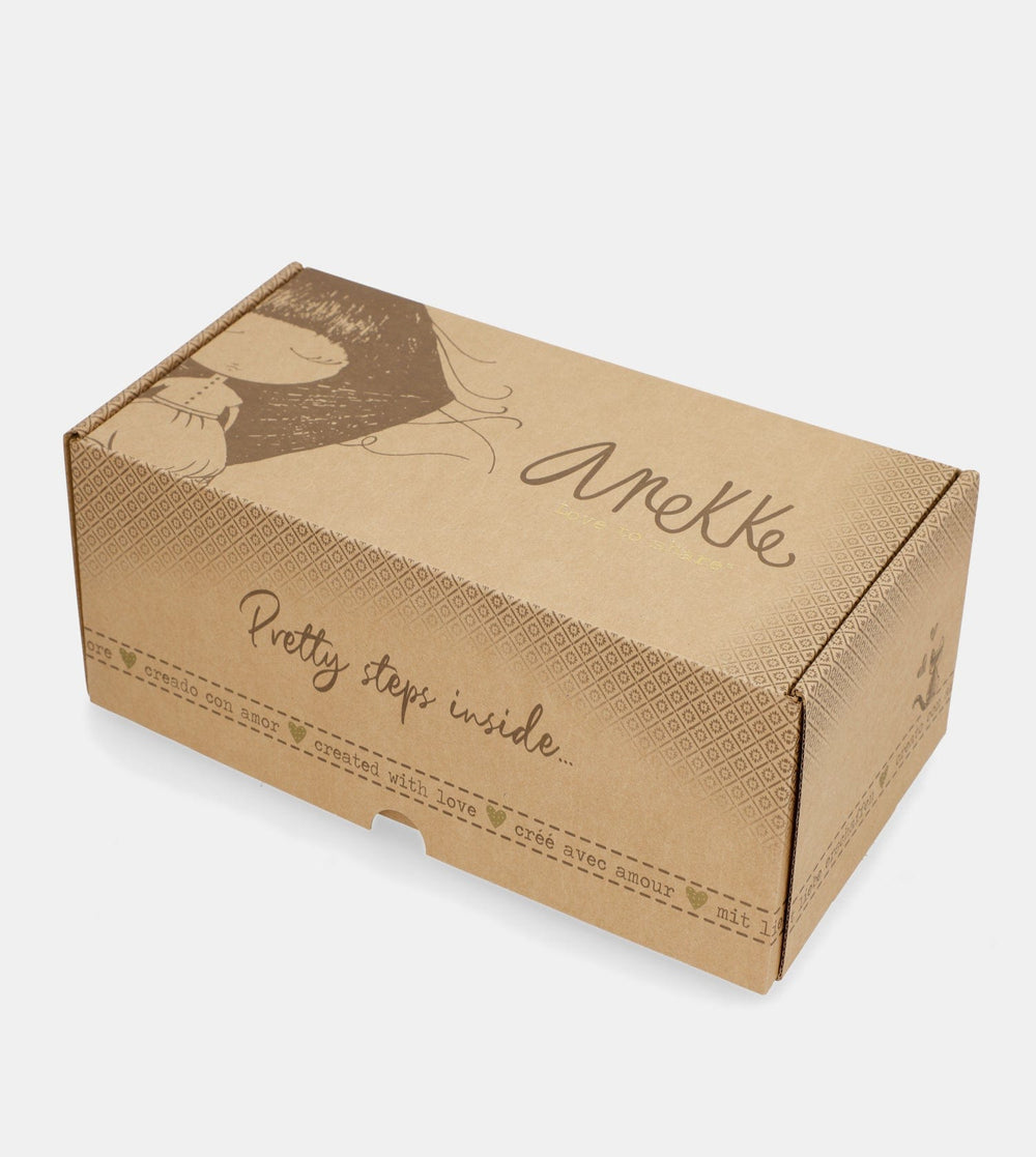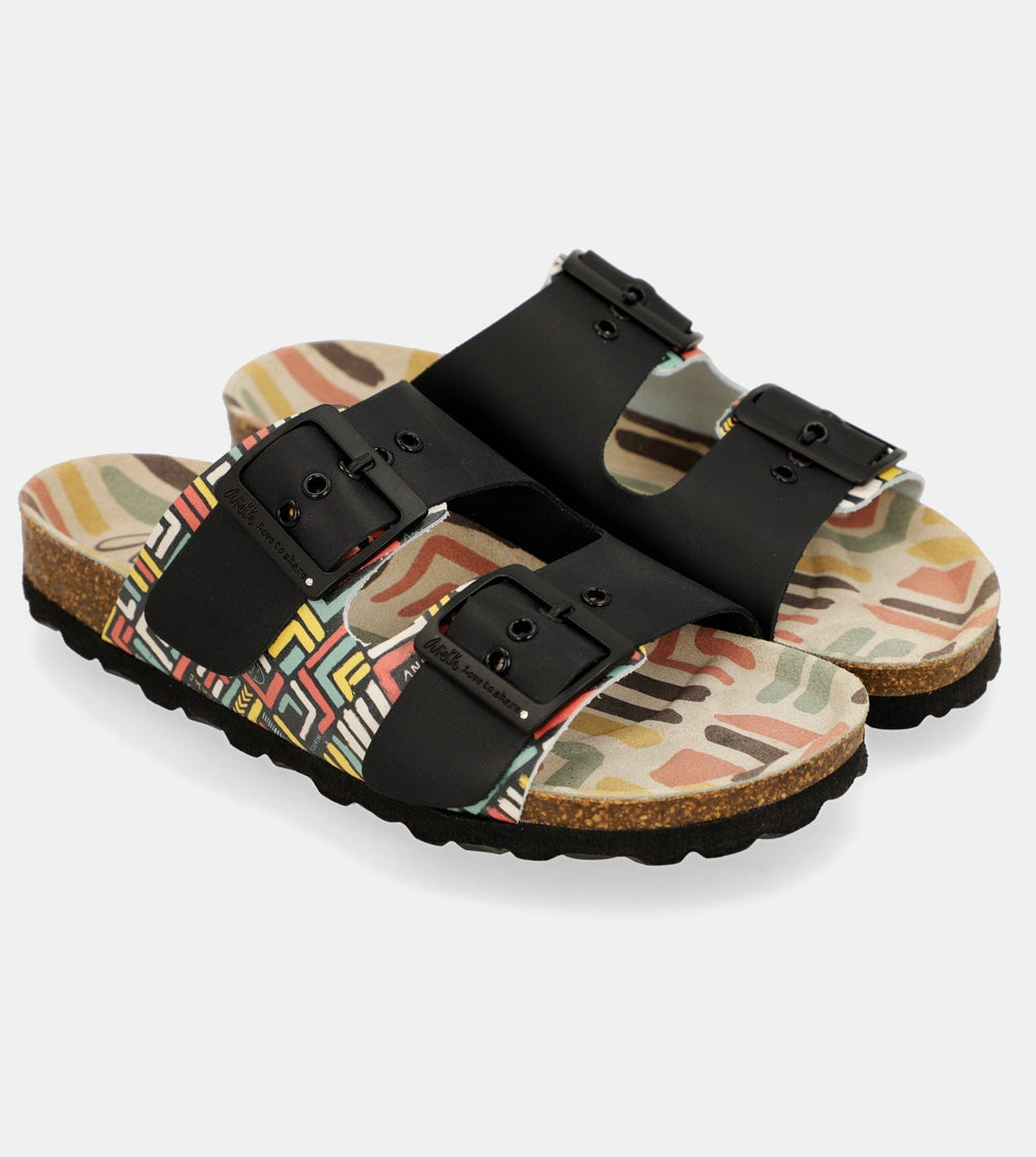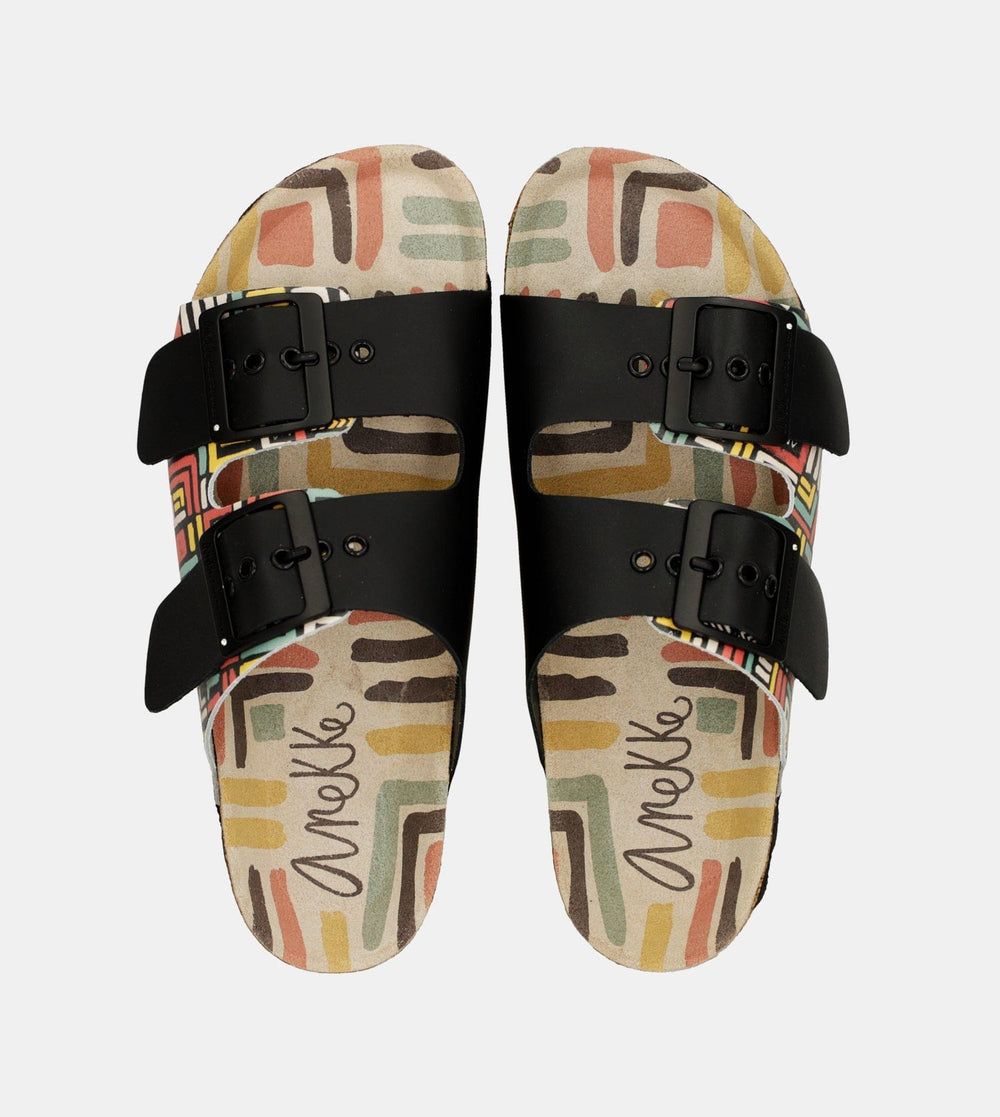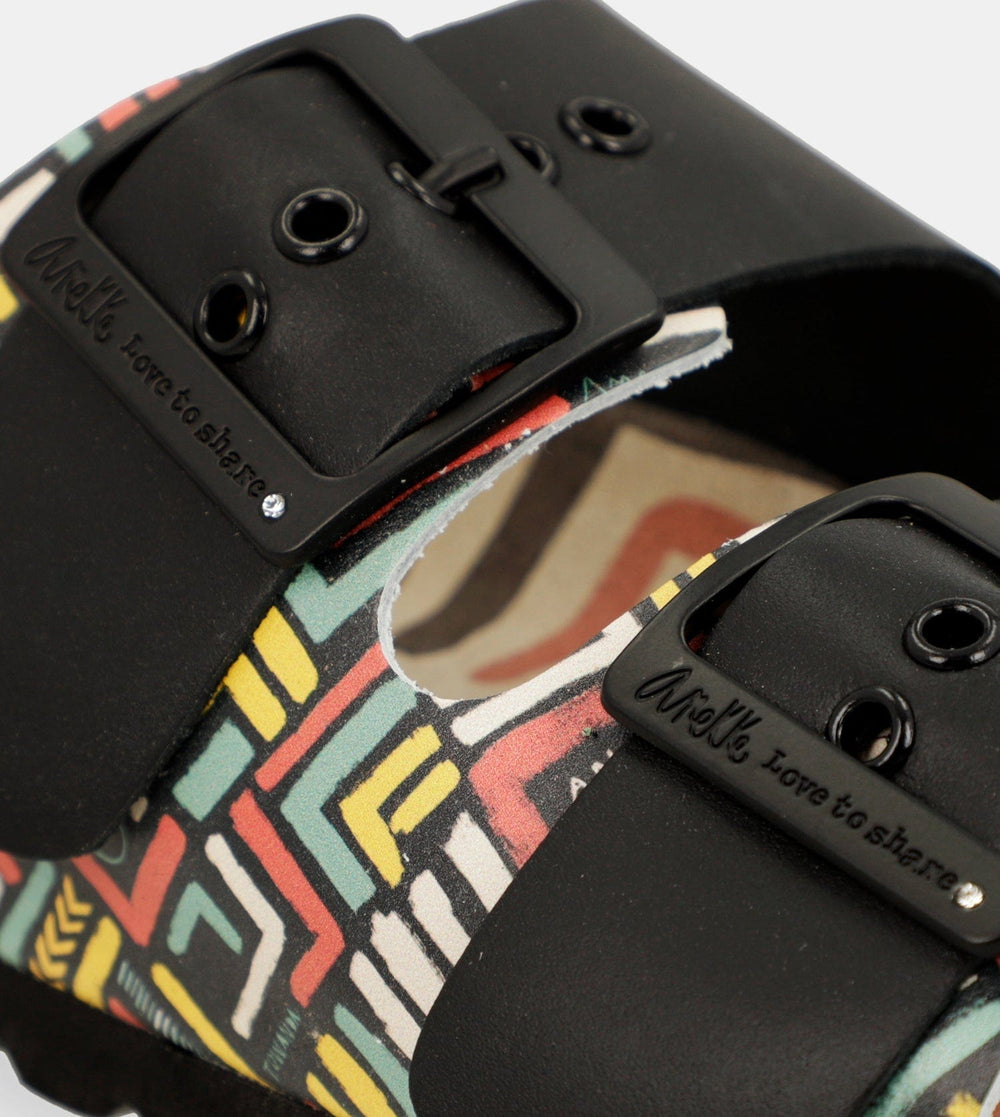 Pohodlné dámske letné šľapky s motívom kolekcie Menire - Tribe španielskej značky Anekke. Šľapky majú spony v čiernej farbe, spony si viete prispôsobiť podľa potreby. Šľapky majú pohodlný korkový základ. Balené v krabici Anekke.