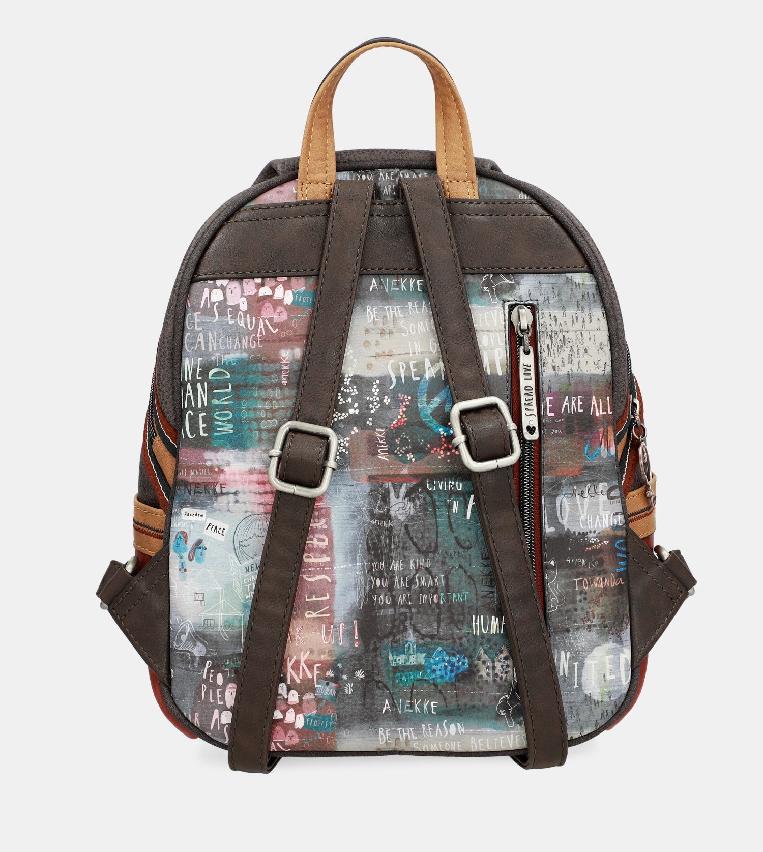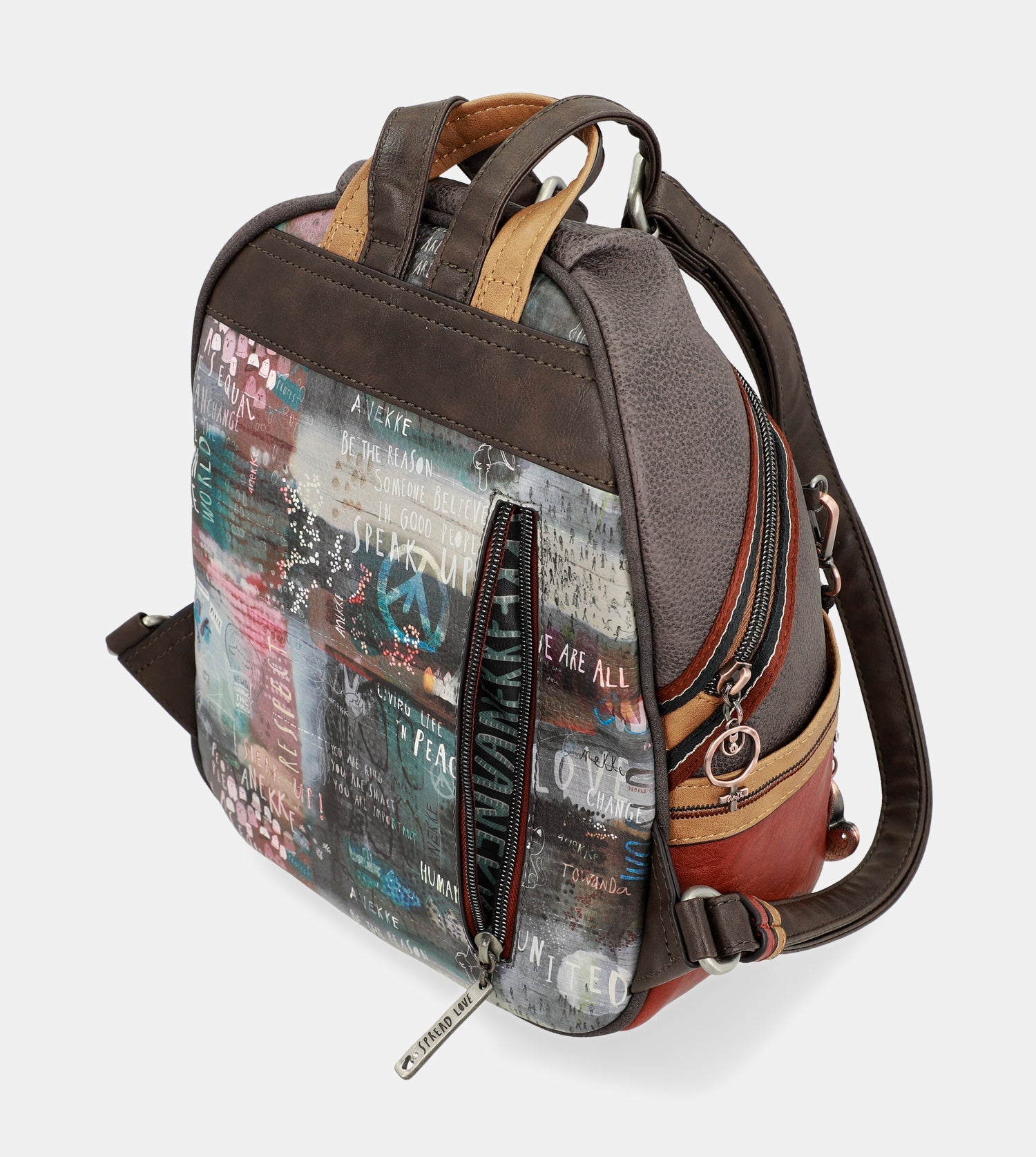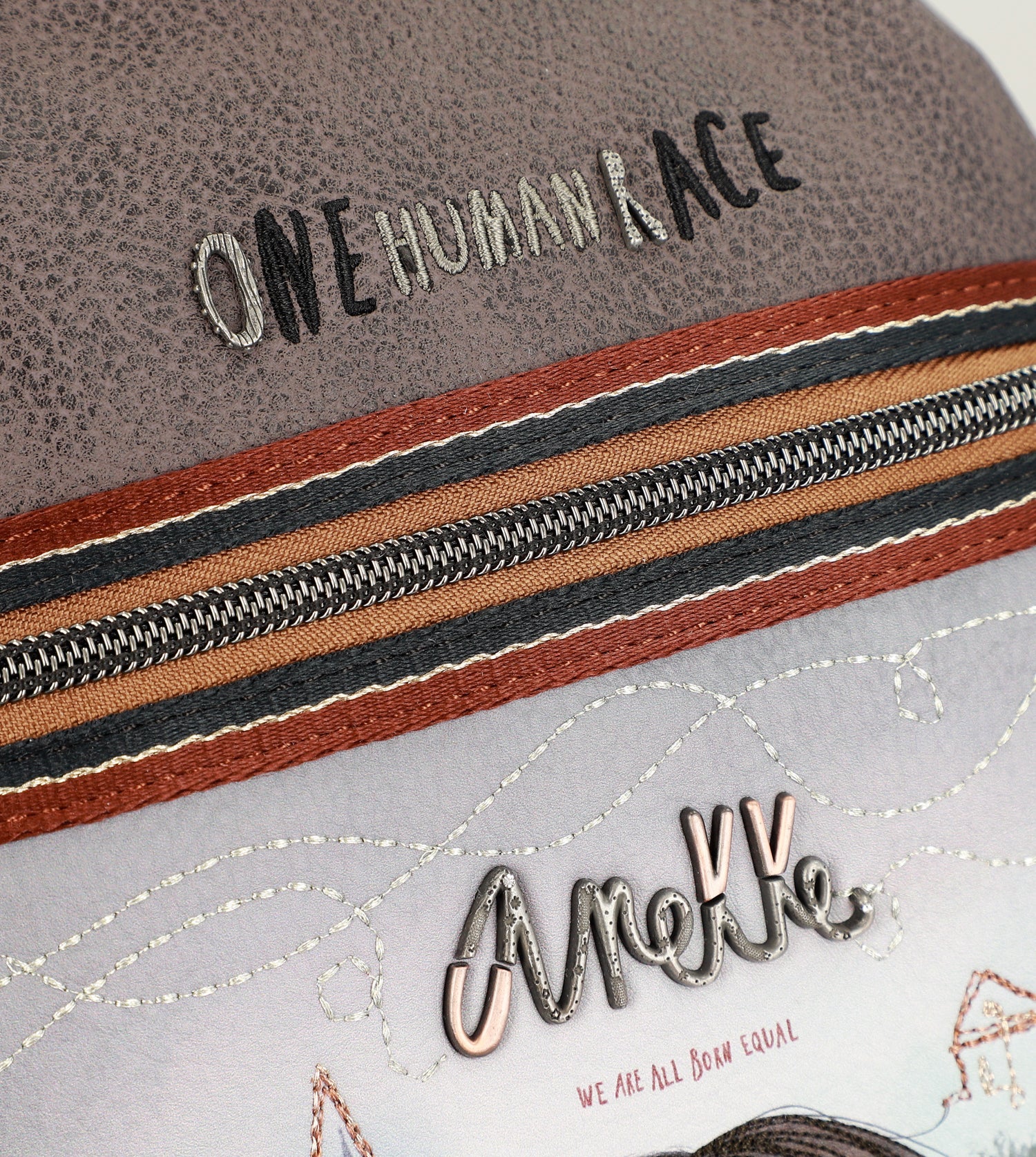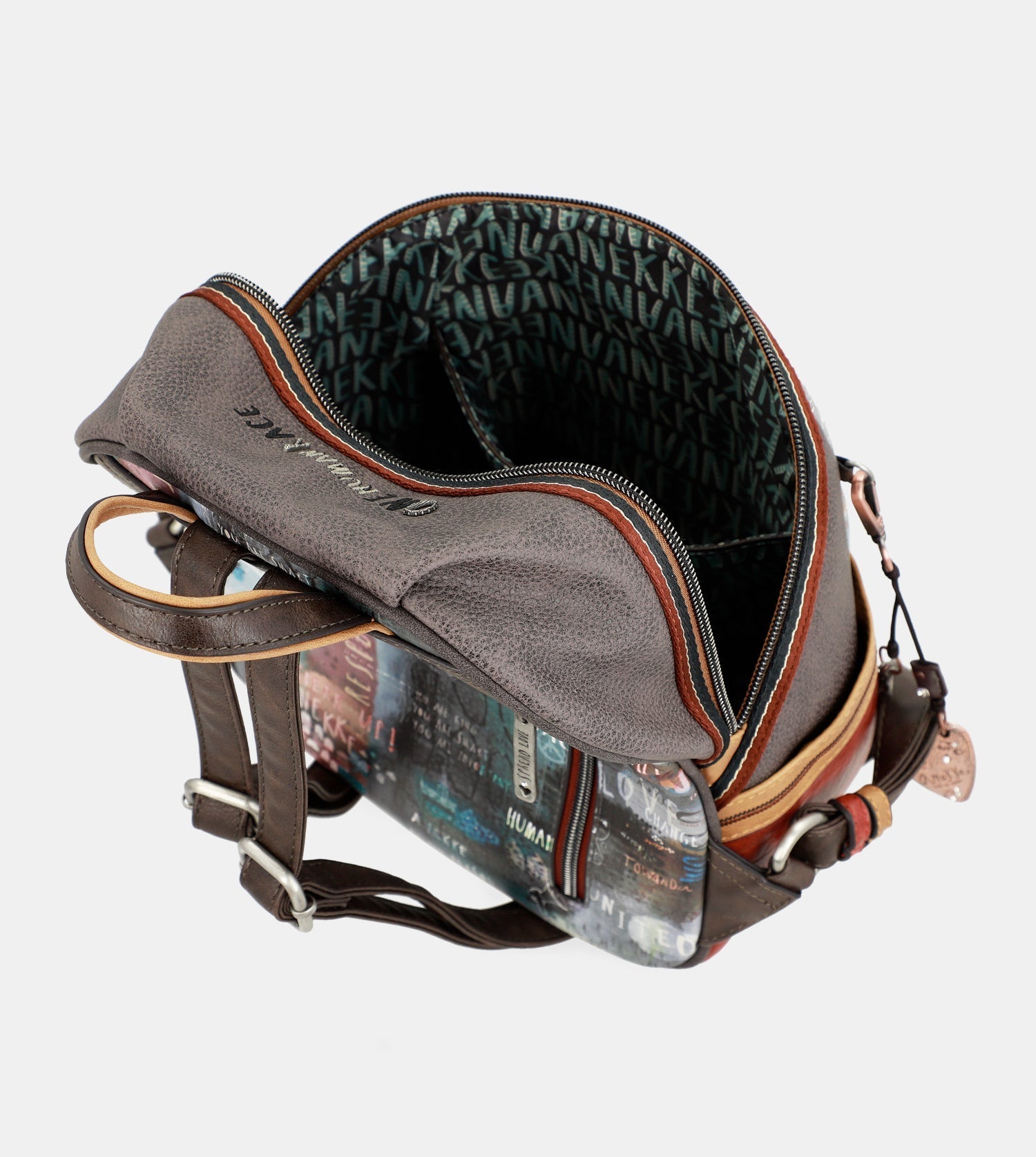 Praktický batoh s motívom kolekcie Voice. Na vonkajšej zadnej aj prednej strane je vrecko na zips. Vo vnútri kabelky je otvorené vrecko na mobil a kľúče, taktiež vrecko so zipsom na doklady. Popruhy batohu sú nastaviteľné podľa potreby. Batoh je balený v taške Anekke.