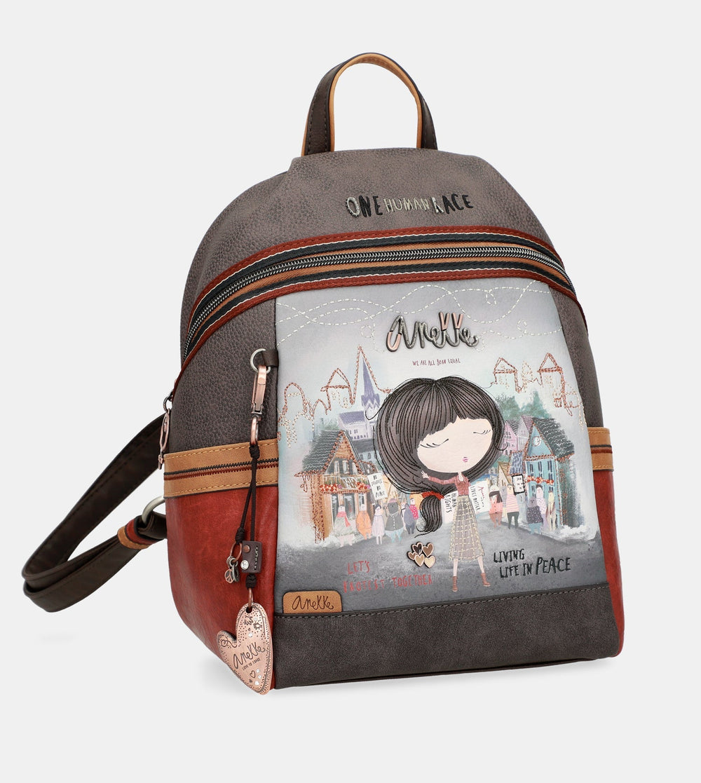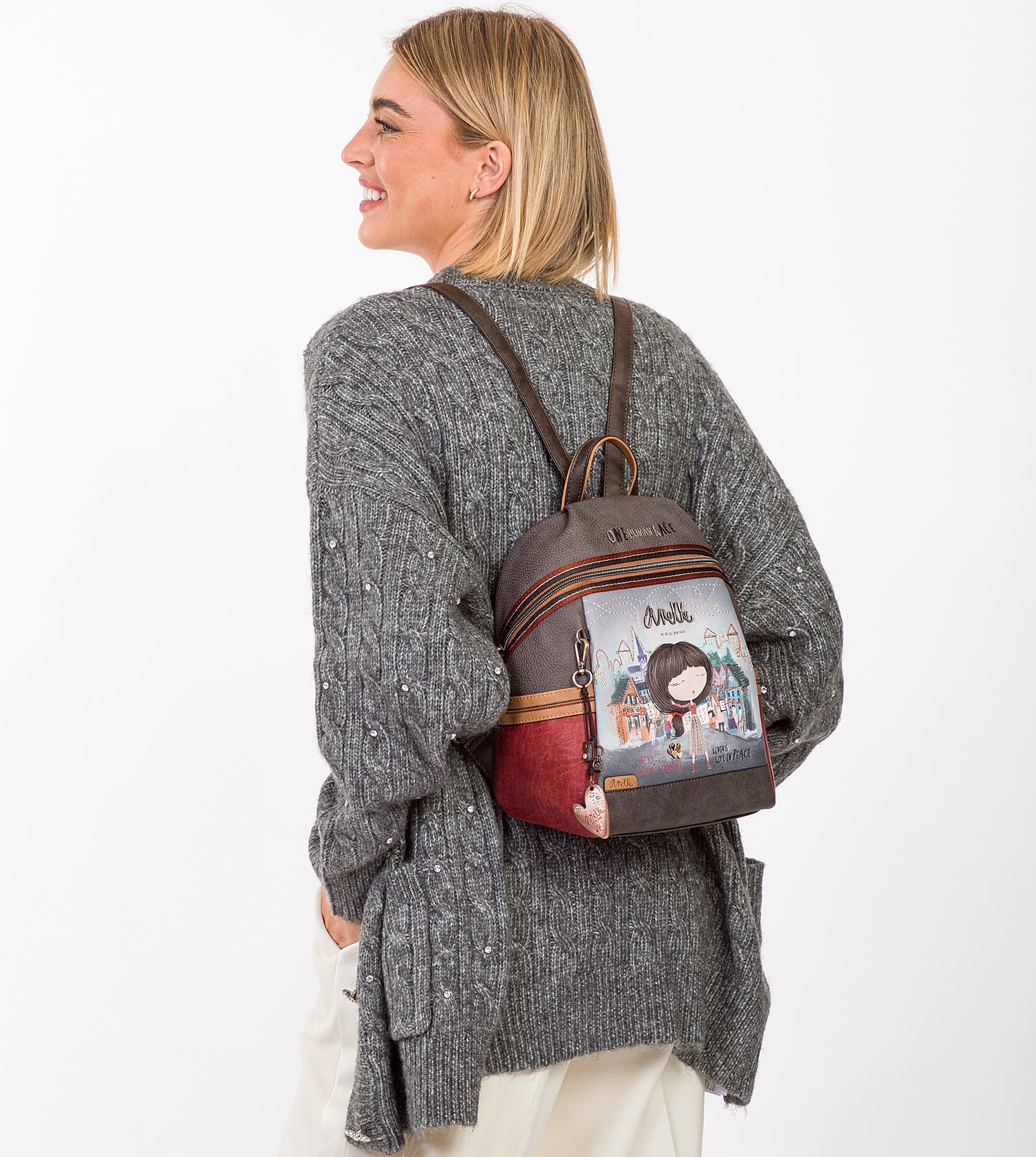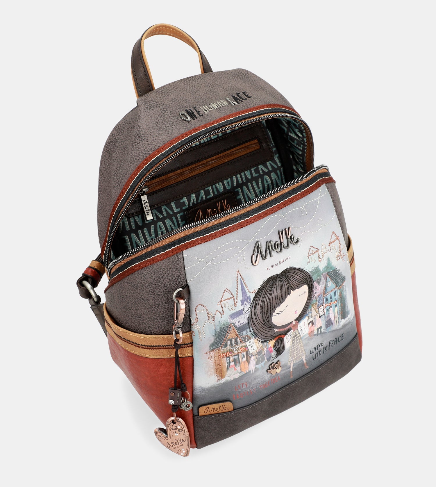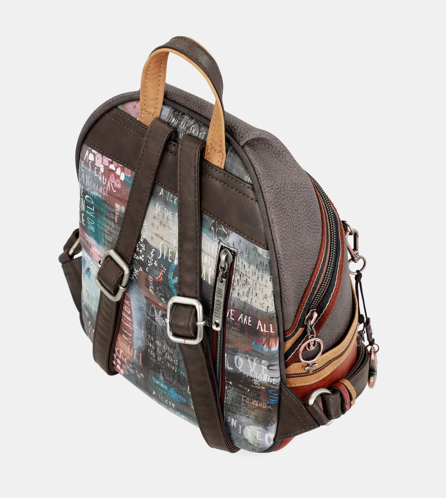 Praktický batoh s motívom kolekcie Voice. Na vonkajšej zadnej aj prednej strane je vrecko na zips. Vo vnútri kabelky je otvorené vrecko na mobil a kľúče, taktiež vrecko so zipsom na doklady. Popruhy batohu sú nastaviteľné podľa potreby. Batoh je balený v taške Anekke.