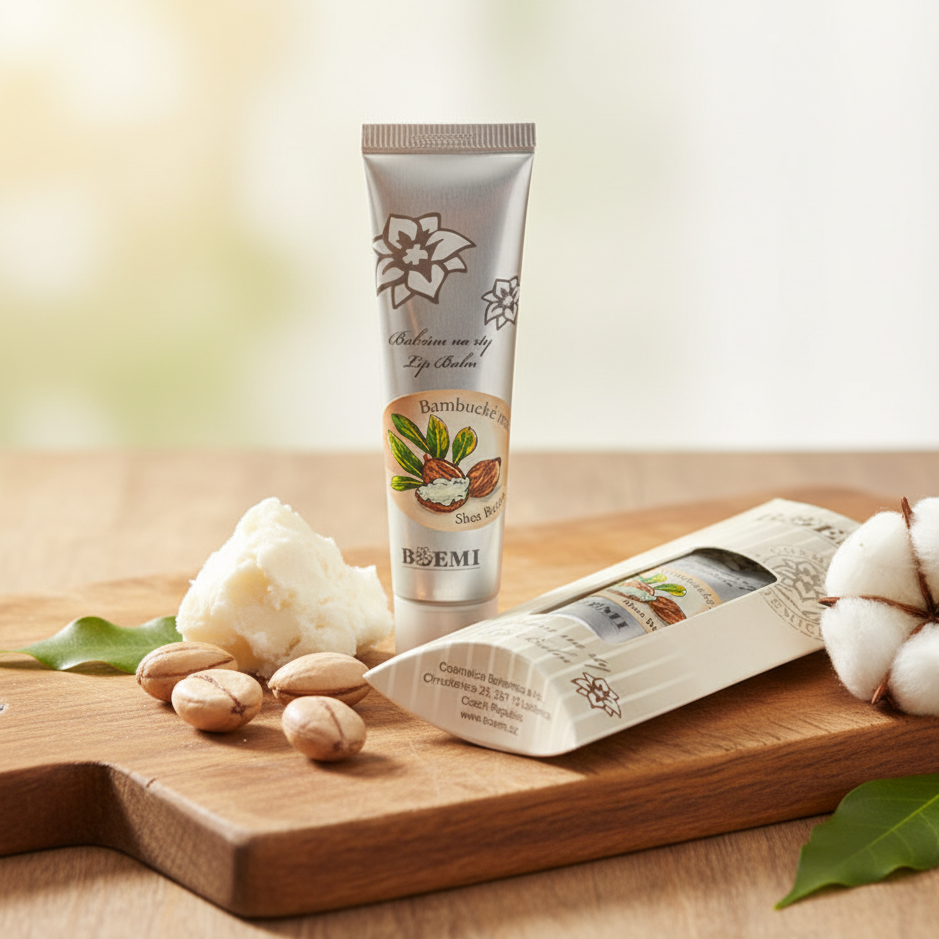Balzam na pery s bambuckým maslom s jemnou vôňou vanilky v tubičke.