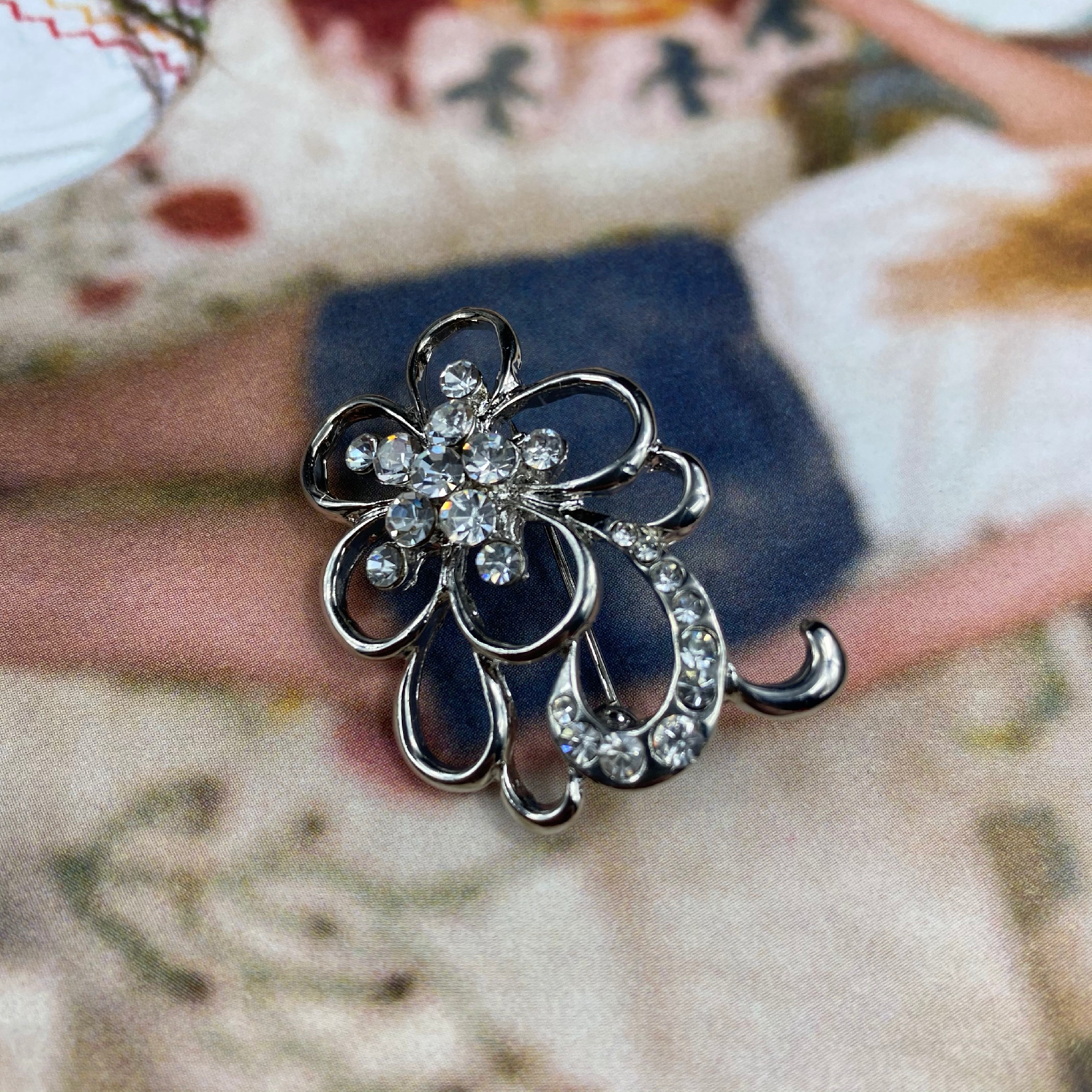 Doplňte svoj outfit s jedinečnou brošňou v striebornej farbe.
