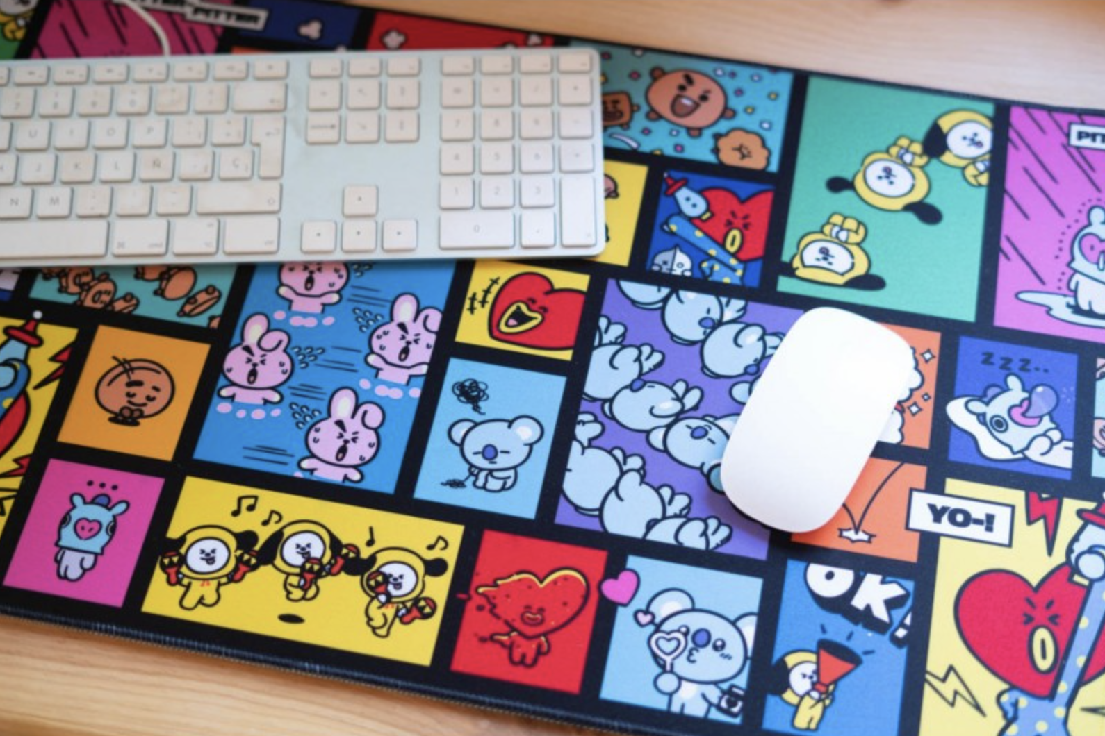 Podložka pod laptop alebo k počítaču s motívom BT21. Podložka je z príjemného vodeodolného materiálu.