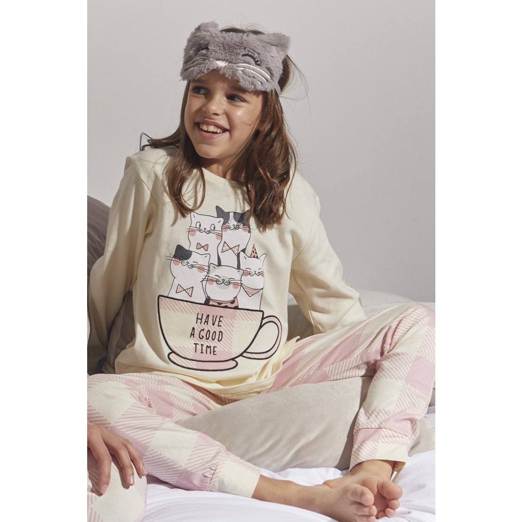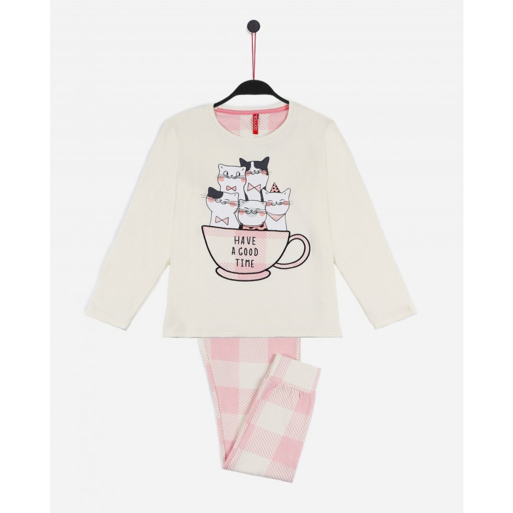 Dievčenské pyžamo s motívom Cats. Nohavice majú patent a v páse gumičku so šnúrkou. Balené v darčekovej krabičke.