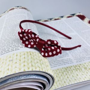 Nádherná čelenka s bodkovanou mašľou v bordovej farbe.