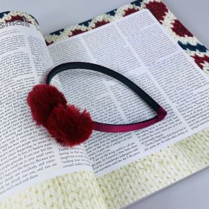 Čelenka s pom pom ozdobami v bordovej farbe.