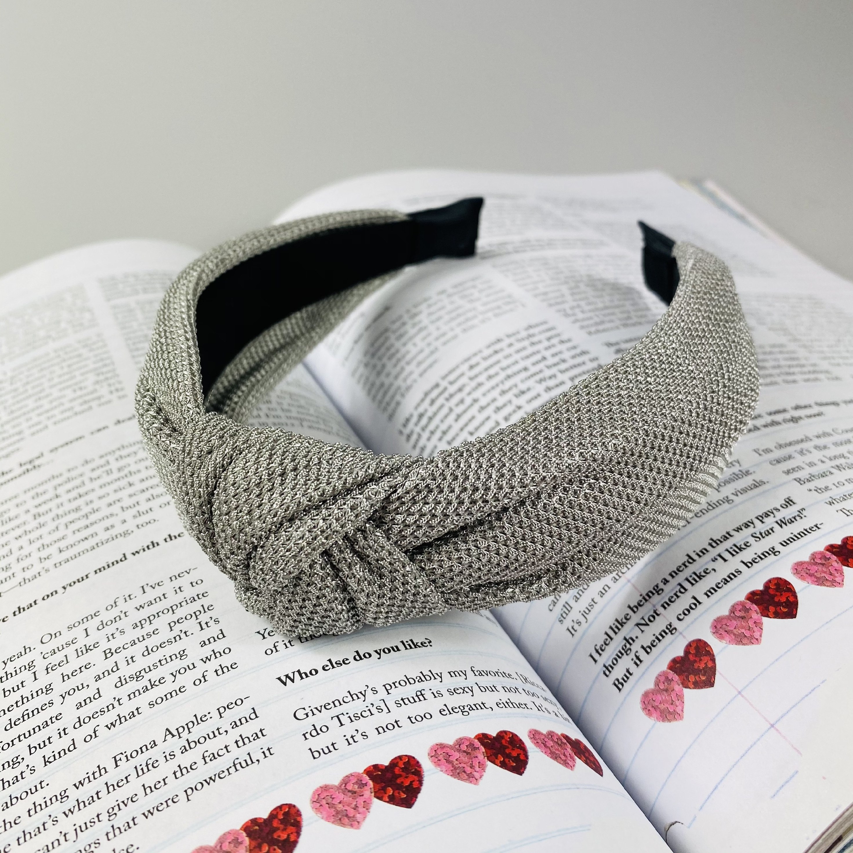 Štýlová čelenka s uzlom v sivej farbe.